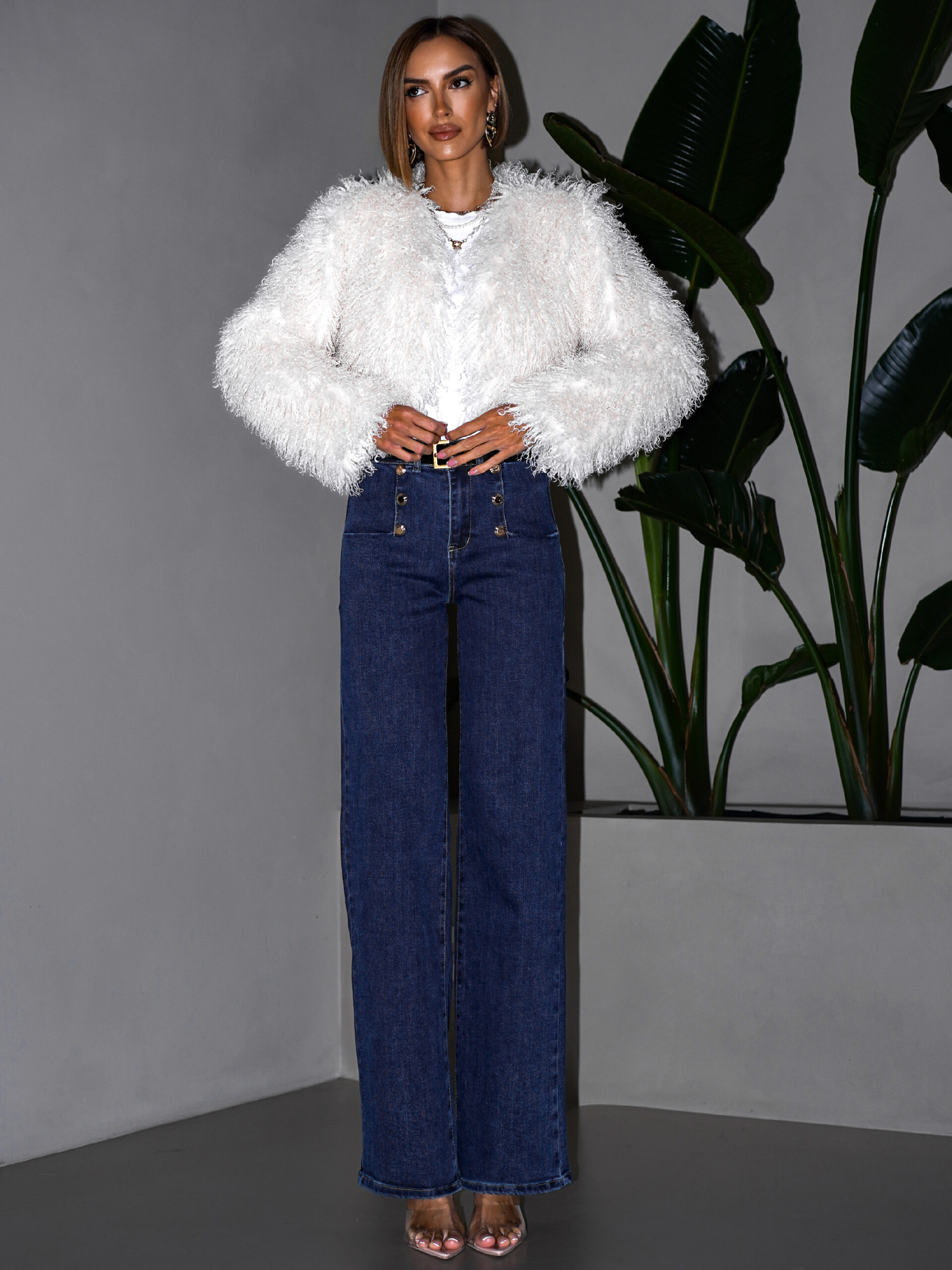 Bílý faux fur kožešinový kabátek TUYEN Velikost: ONESIZE