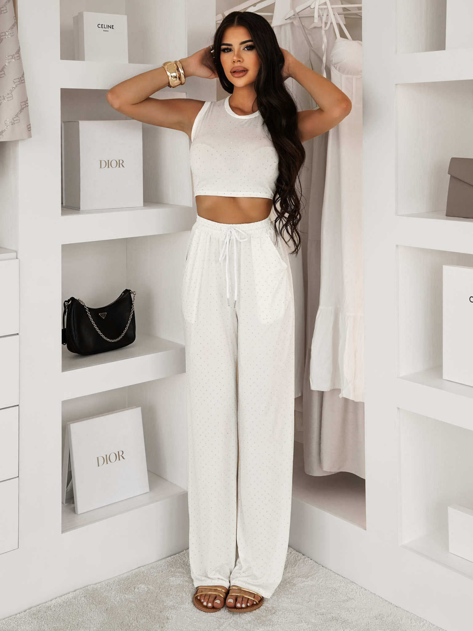 Bílý kalhotový komplet KRAVÉTH s kamínky Velikost: ONESIZE