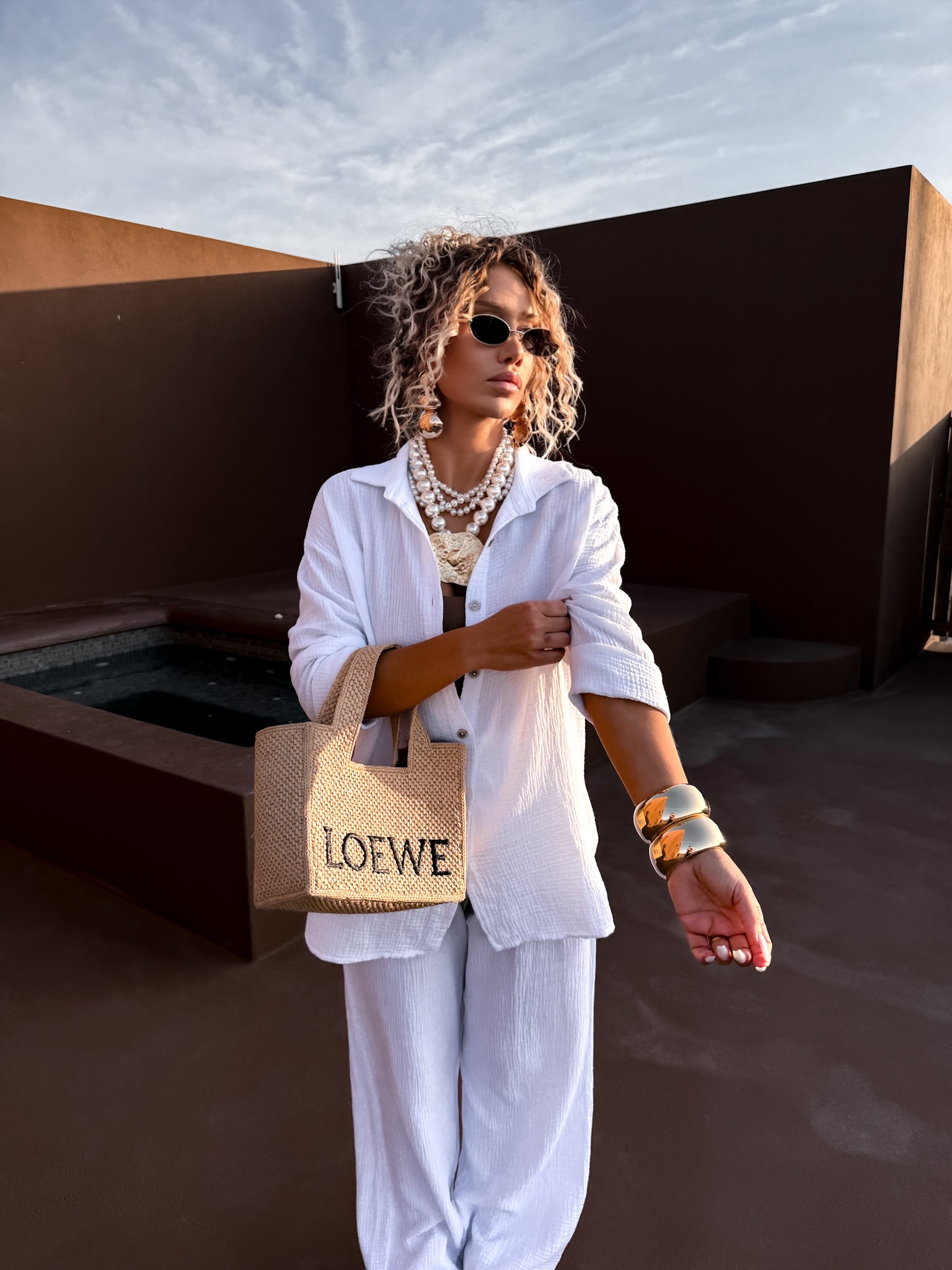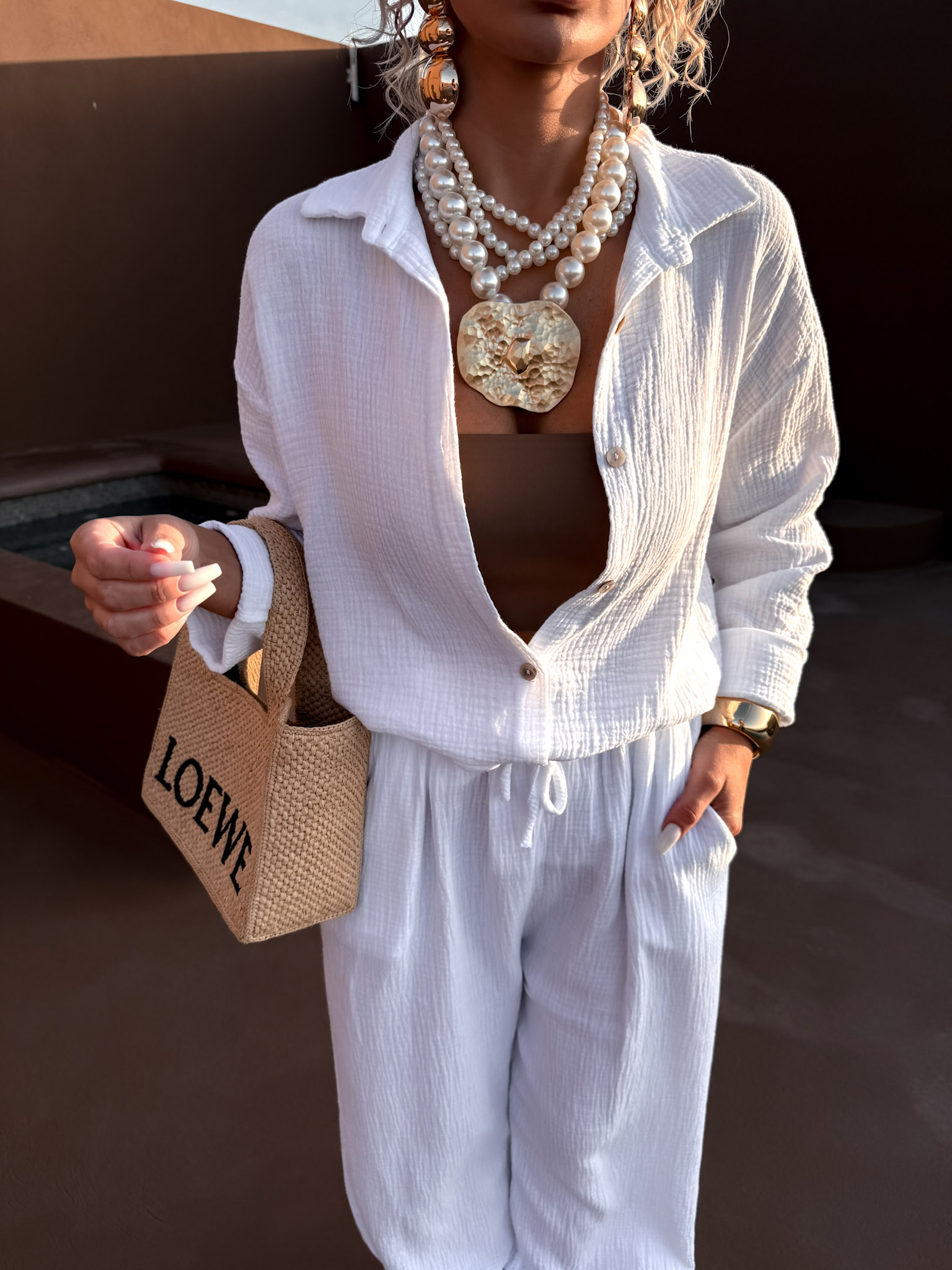 Bílý kalhotový mušelínový komplet THEIA s košilí Velikost: ONESIZE