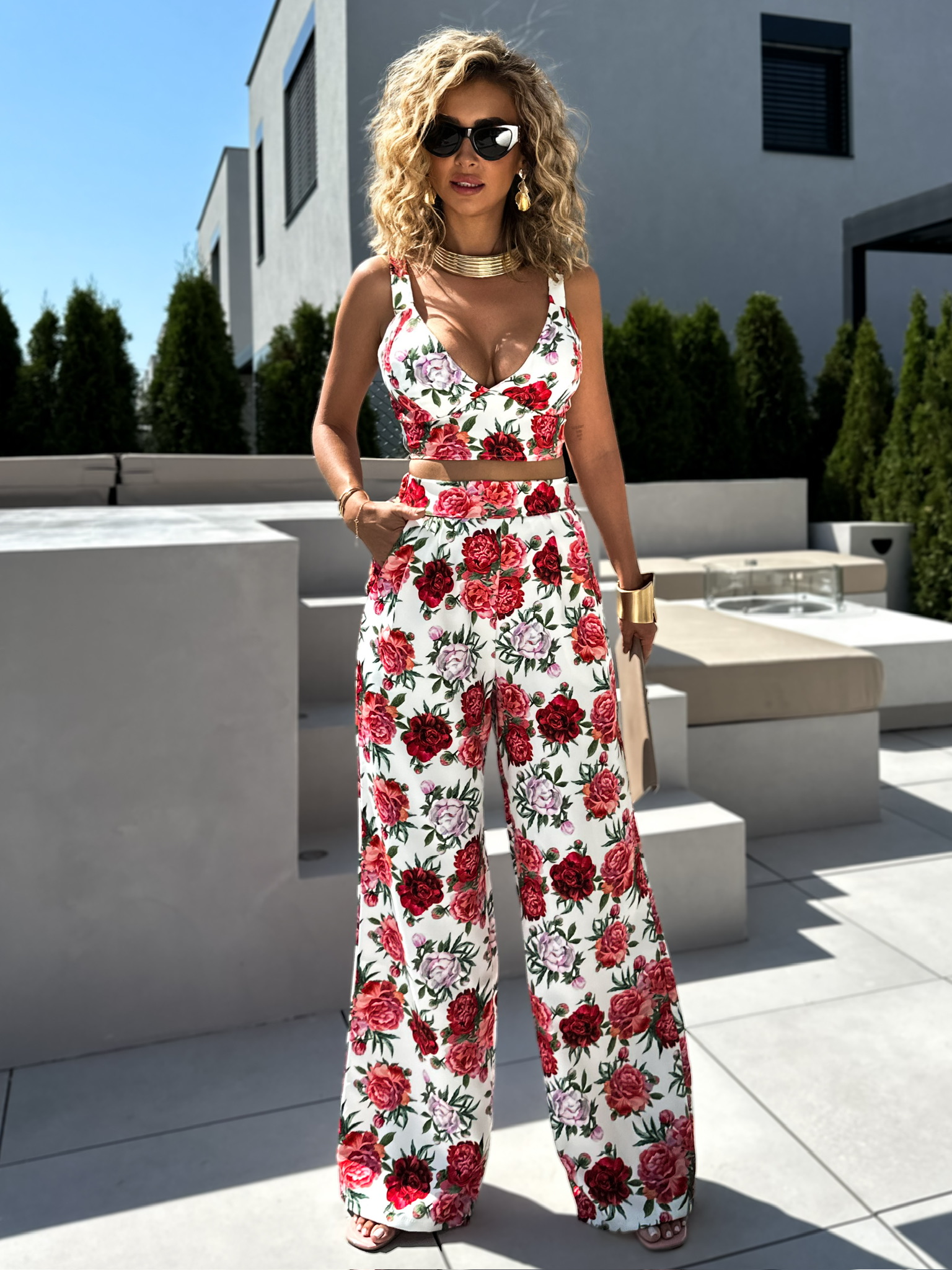 Bílý květovaný kalhotový komplet KARYL s topem Velikost: ONESIZE