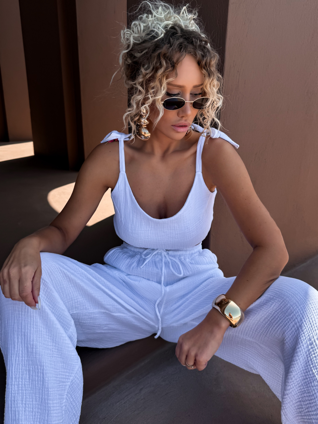 Bílý mušelínový top KOROTA na ramínka Velikost: ONESIZE