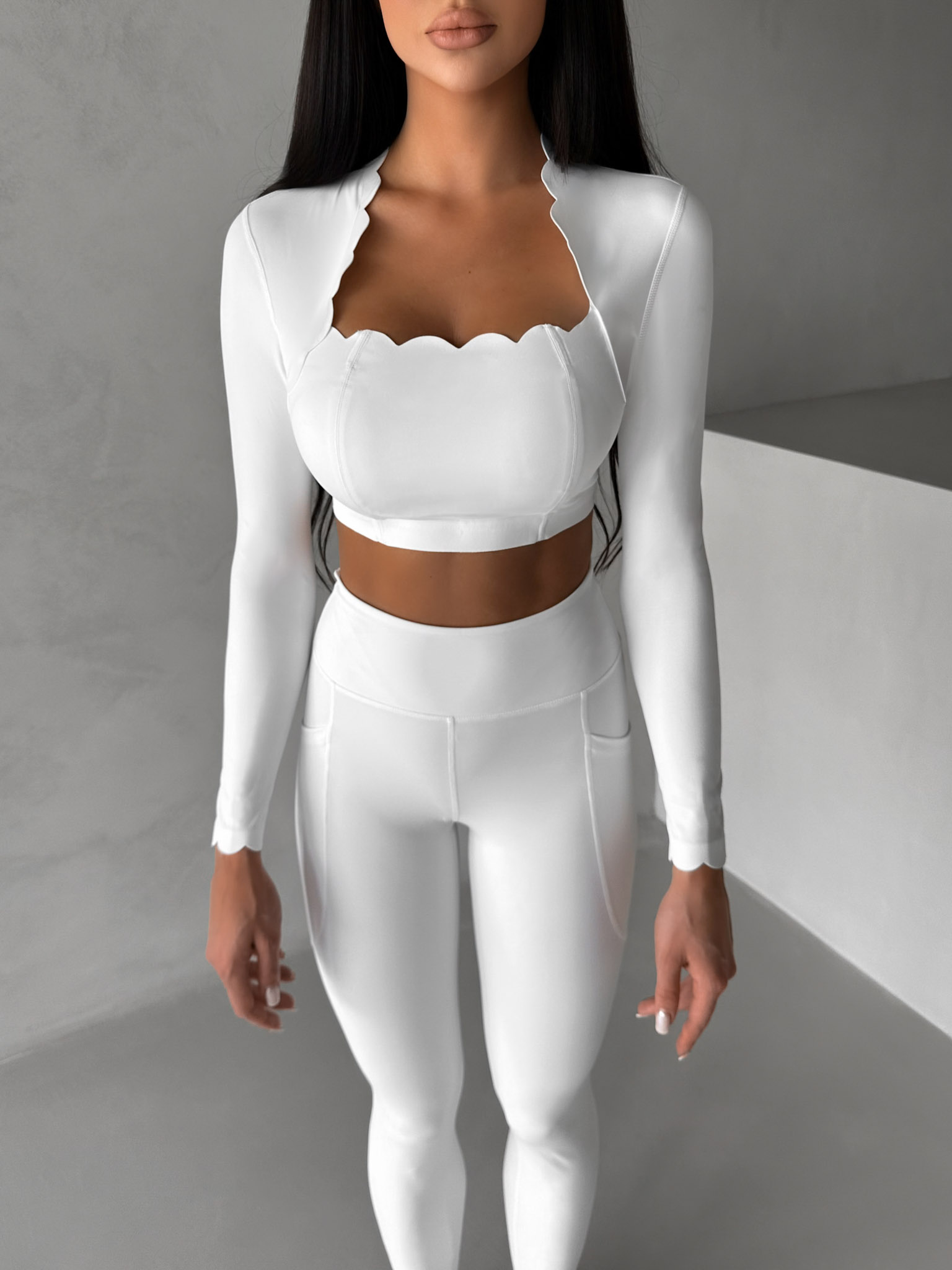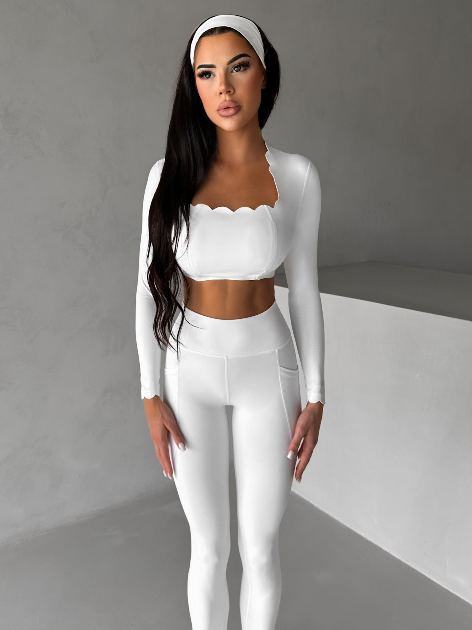 Bílý sportovní pilates top LUNIRA s dlouhým rukávem Velikost: L