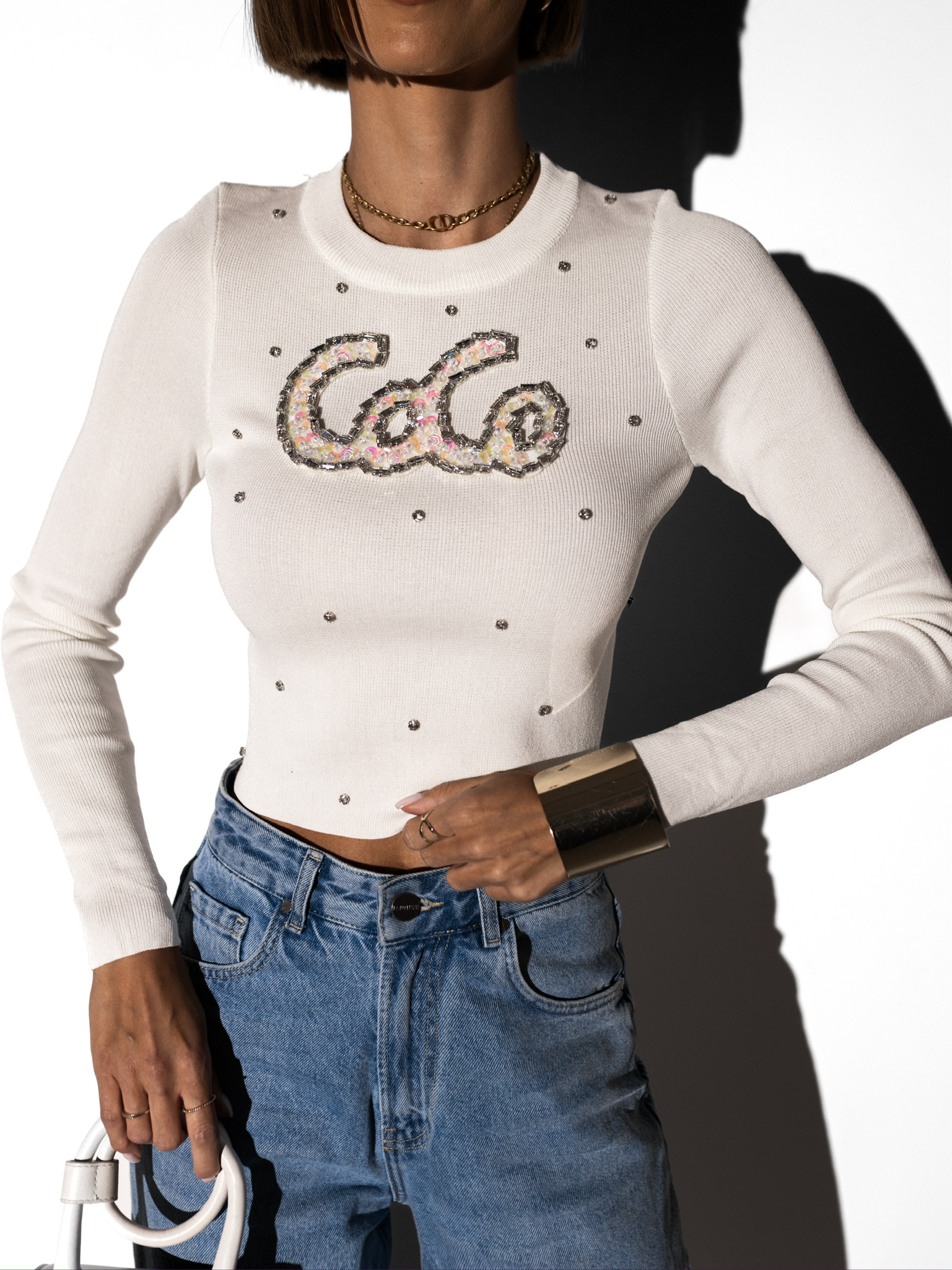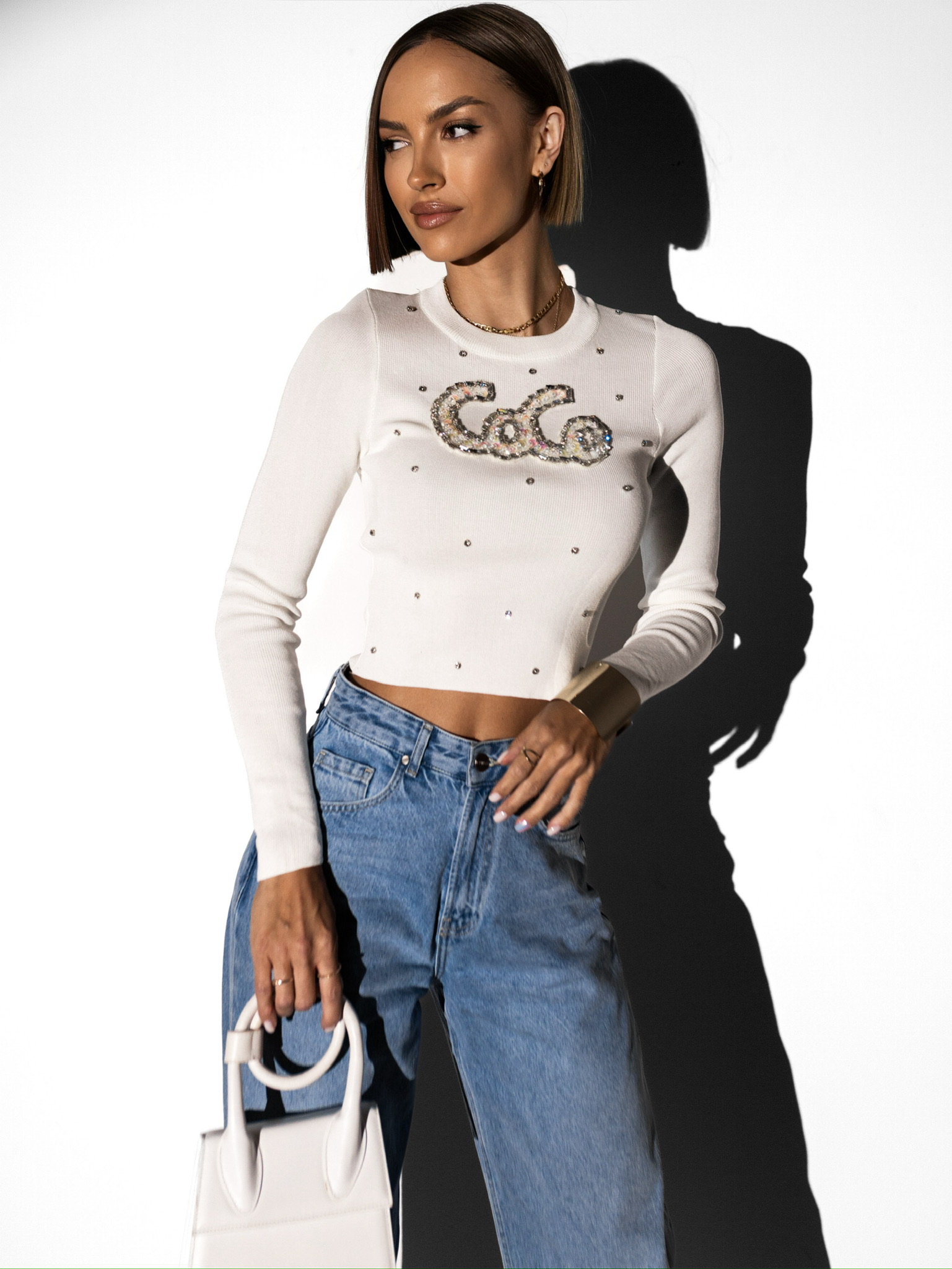 Bílý svetřík AKMAL se zdobením Velikost: M/L