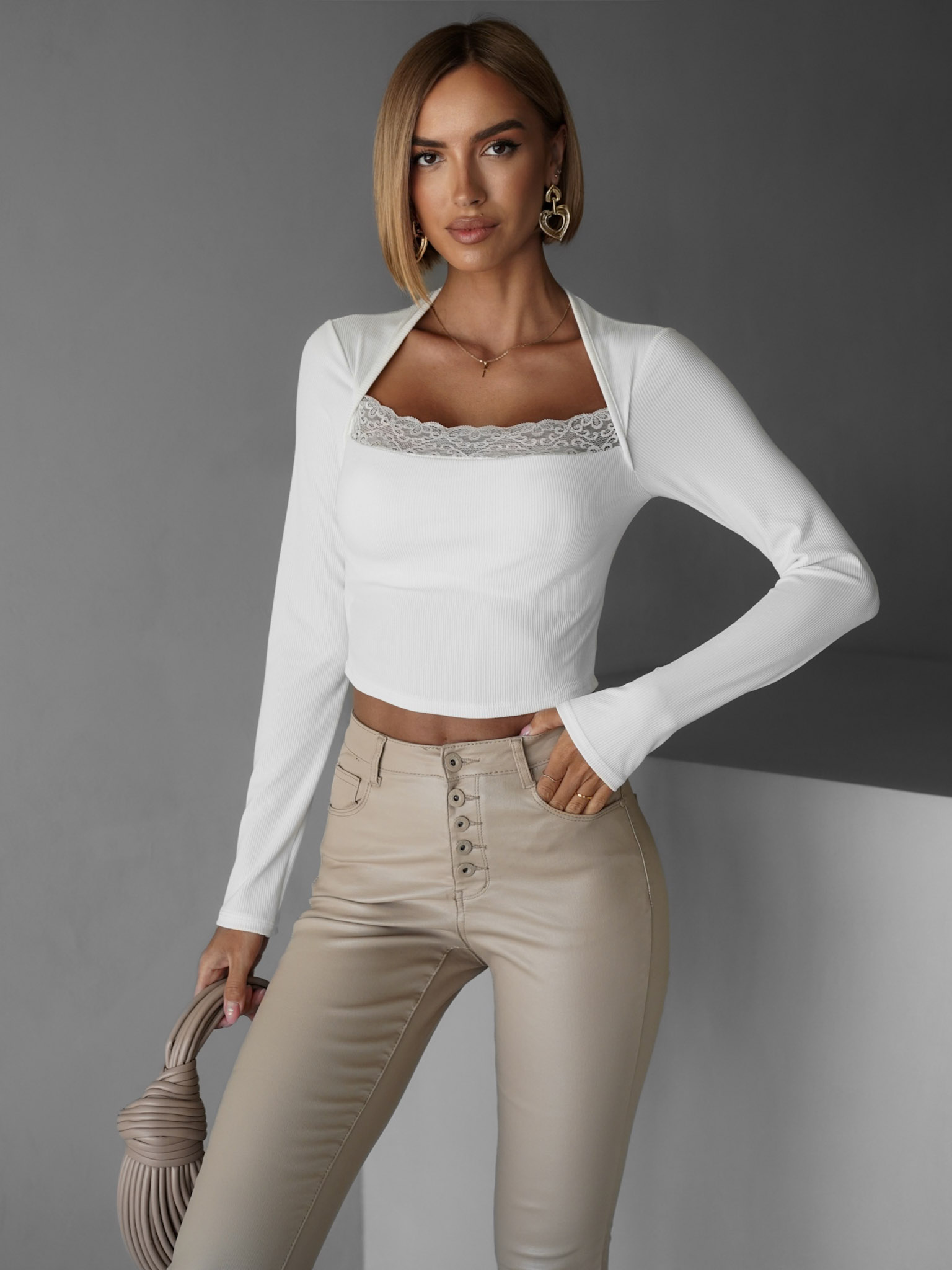 Bílý žebrovaný top VELIBOR Velikost: ONESIZE