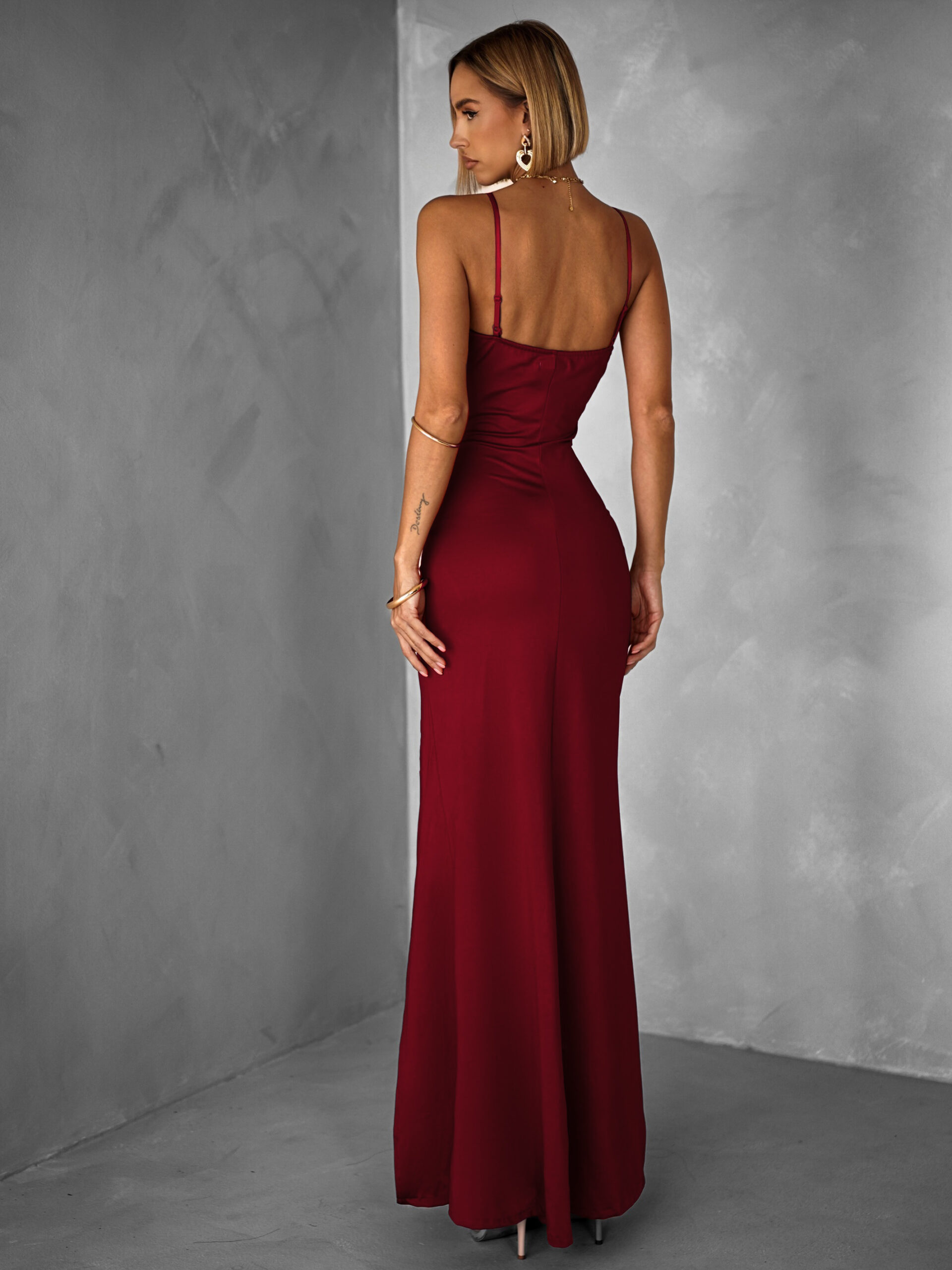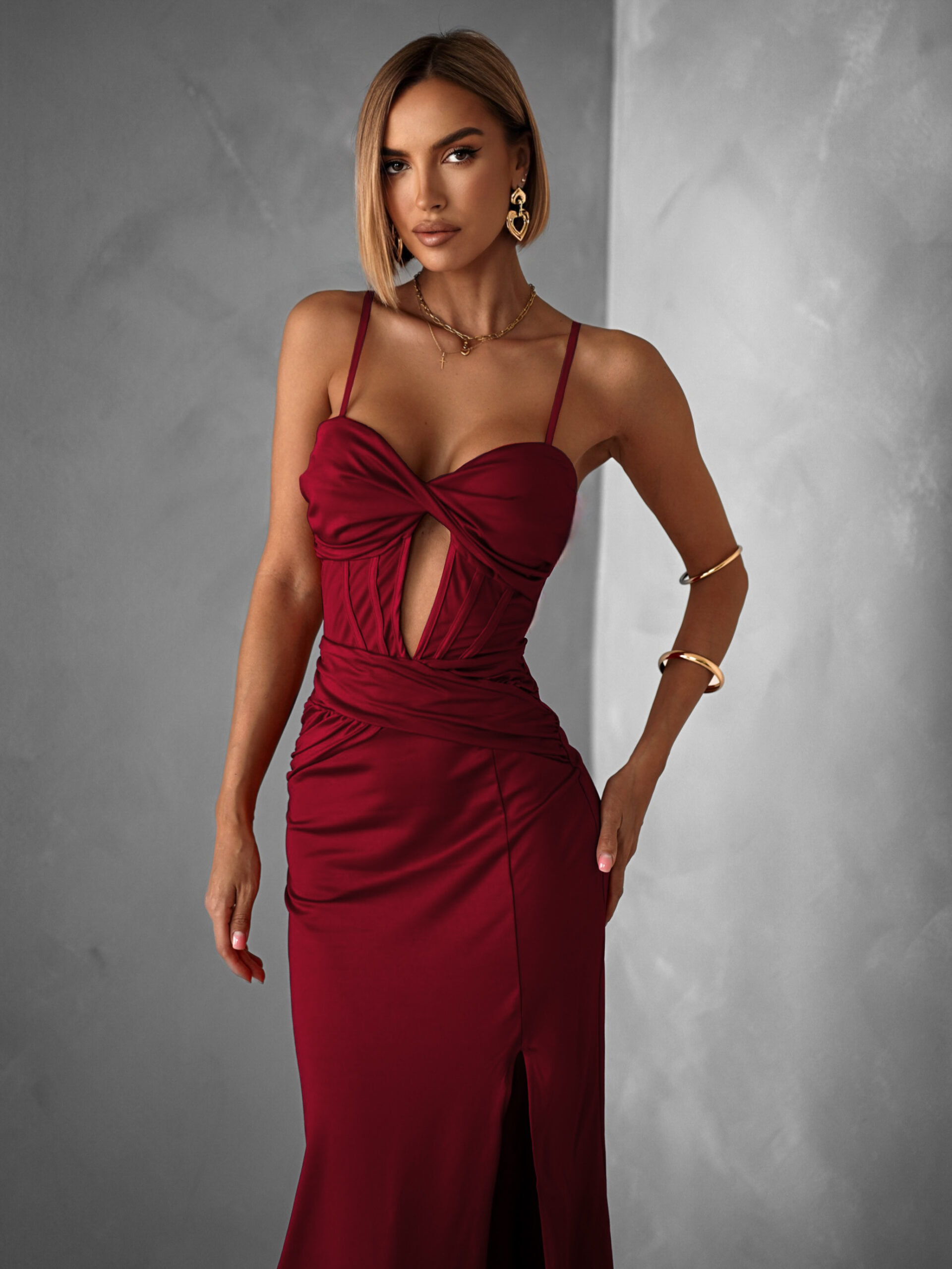 Bordó dlouhé společenské šaty LIMONA s průstřihy Velikost: ONESIZE