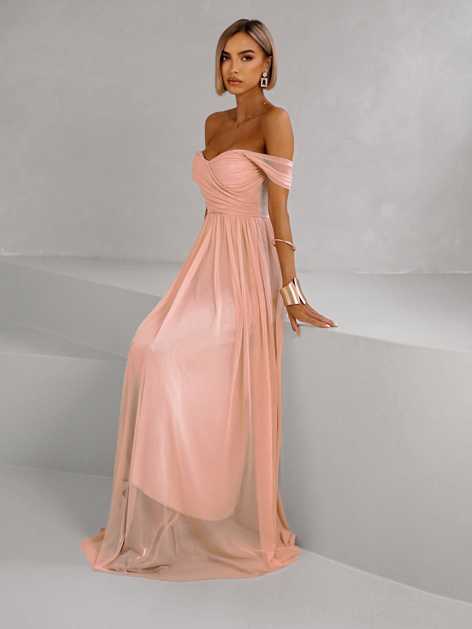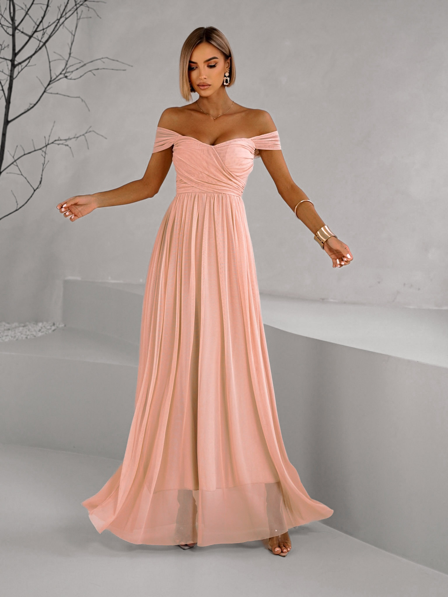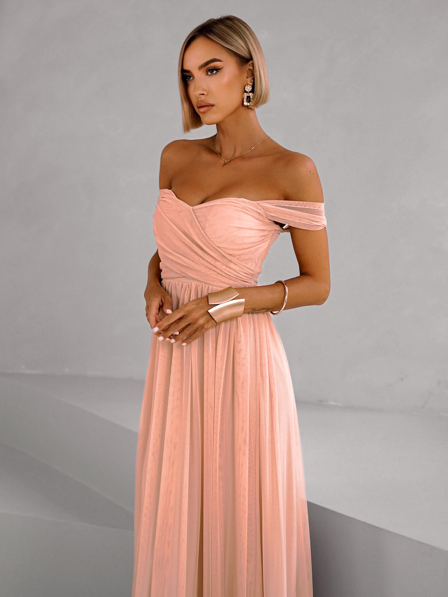Broskvové společenské tylové plesové šaty BOSCO Velikost: ONESIZE