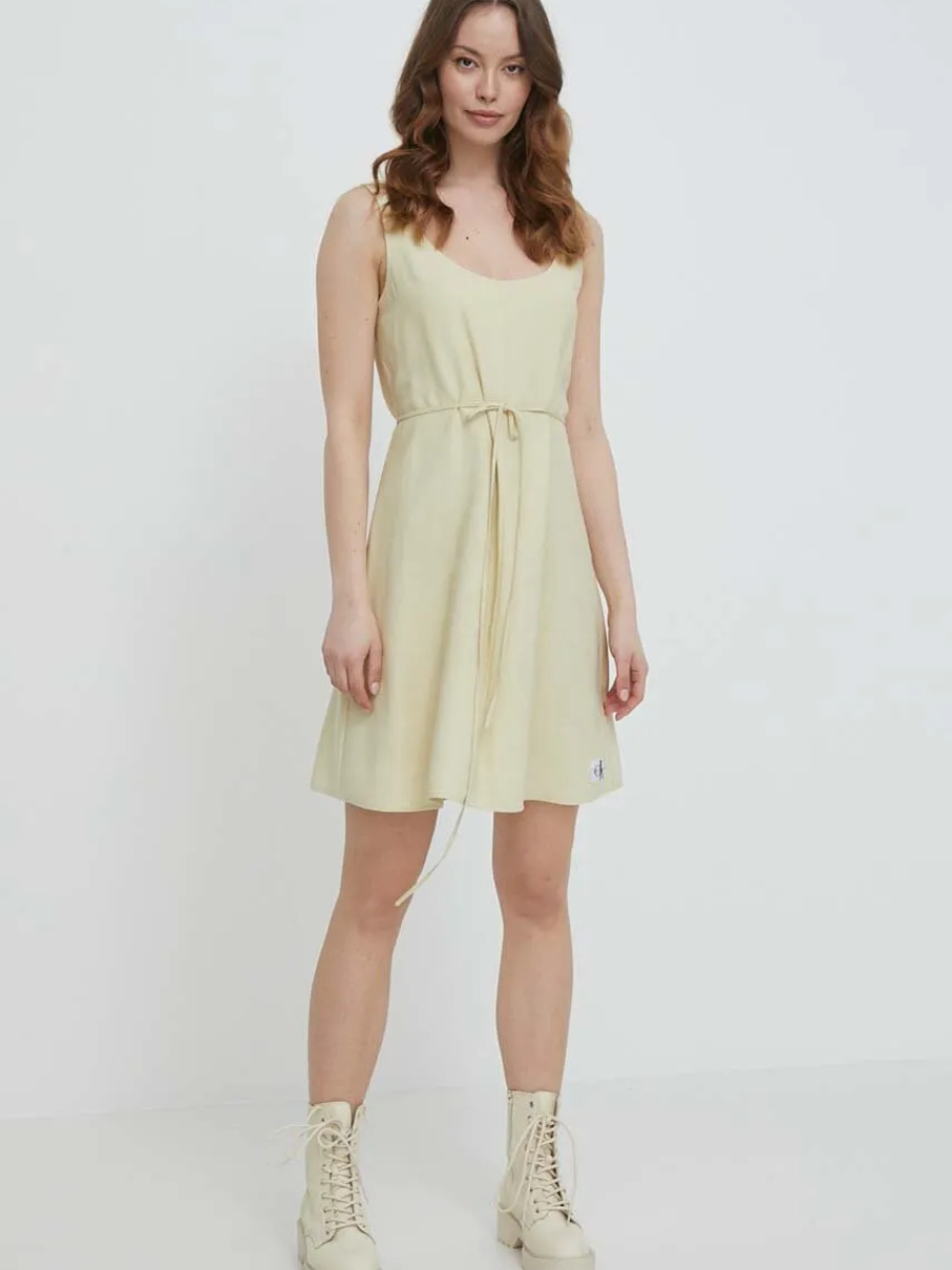 Dámské béžové šaty Calvin Klein.- v pase sňůrka na stažení.- tenká, méně elastická látka.Materiál:93% viskóza7% polyesterStřih:Regular Fit