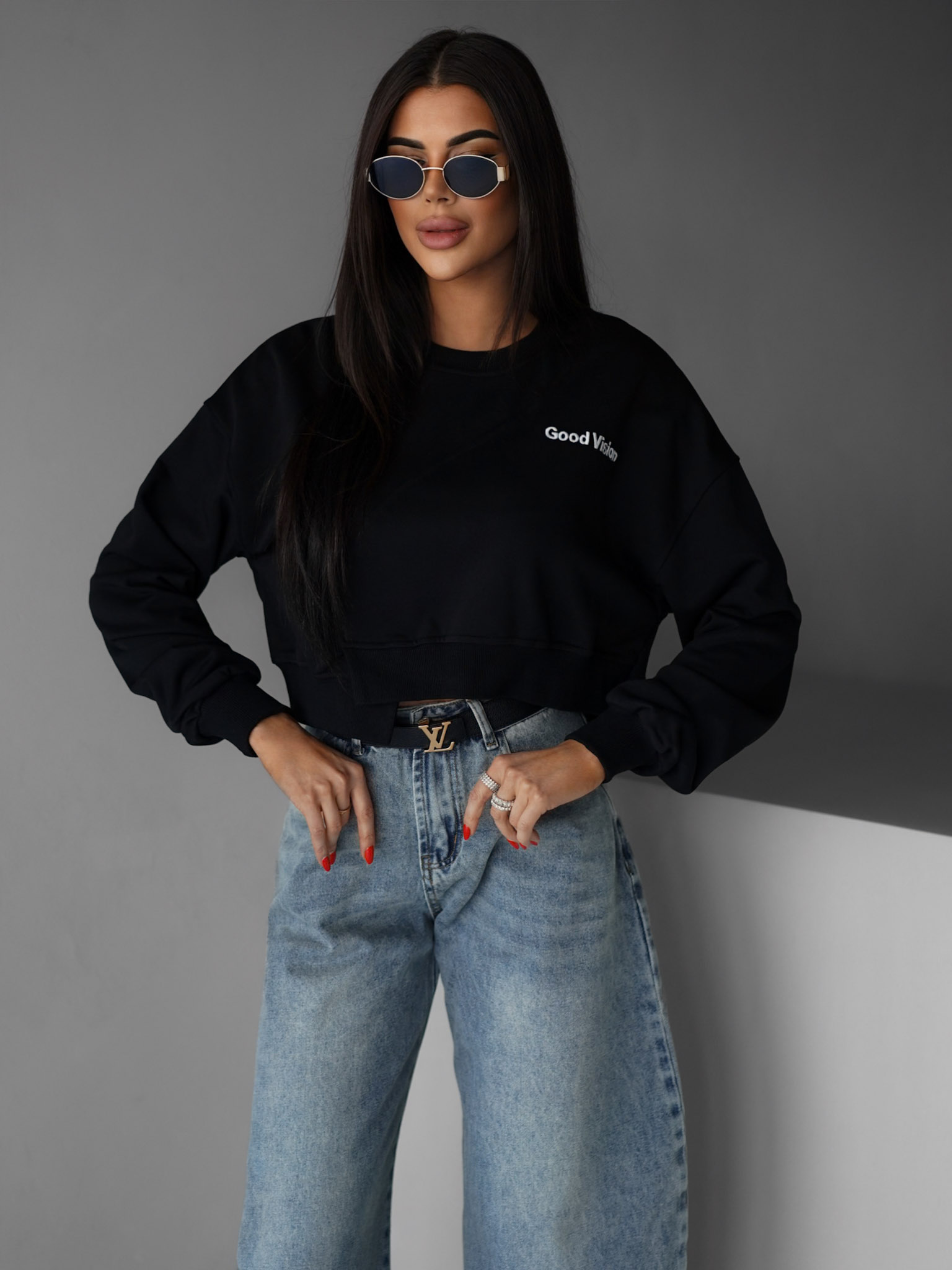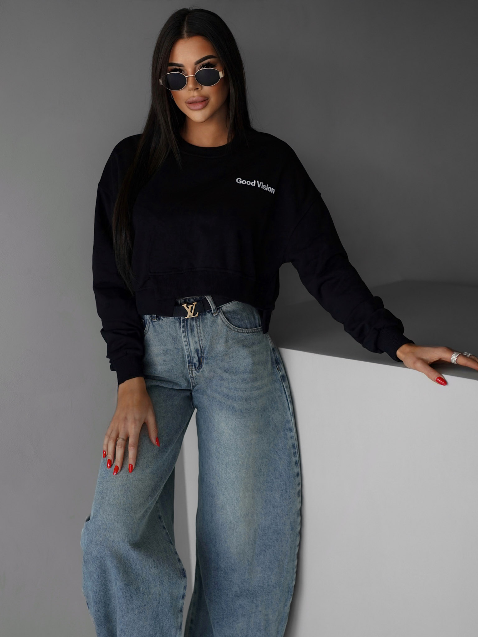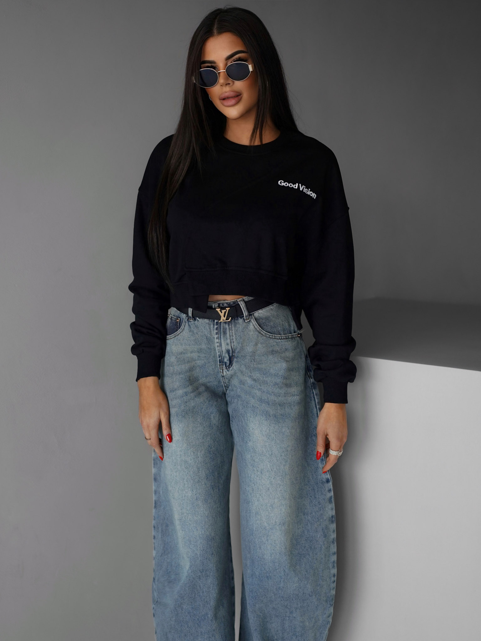Černá bavlněná crop mikina WADIE Velikost: ONESIZE