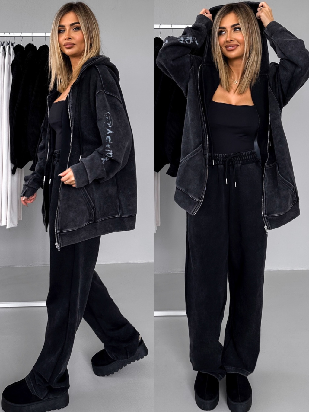 Černá bavlněná washed teplákovka JACGUEL Velikost: ONESIZE