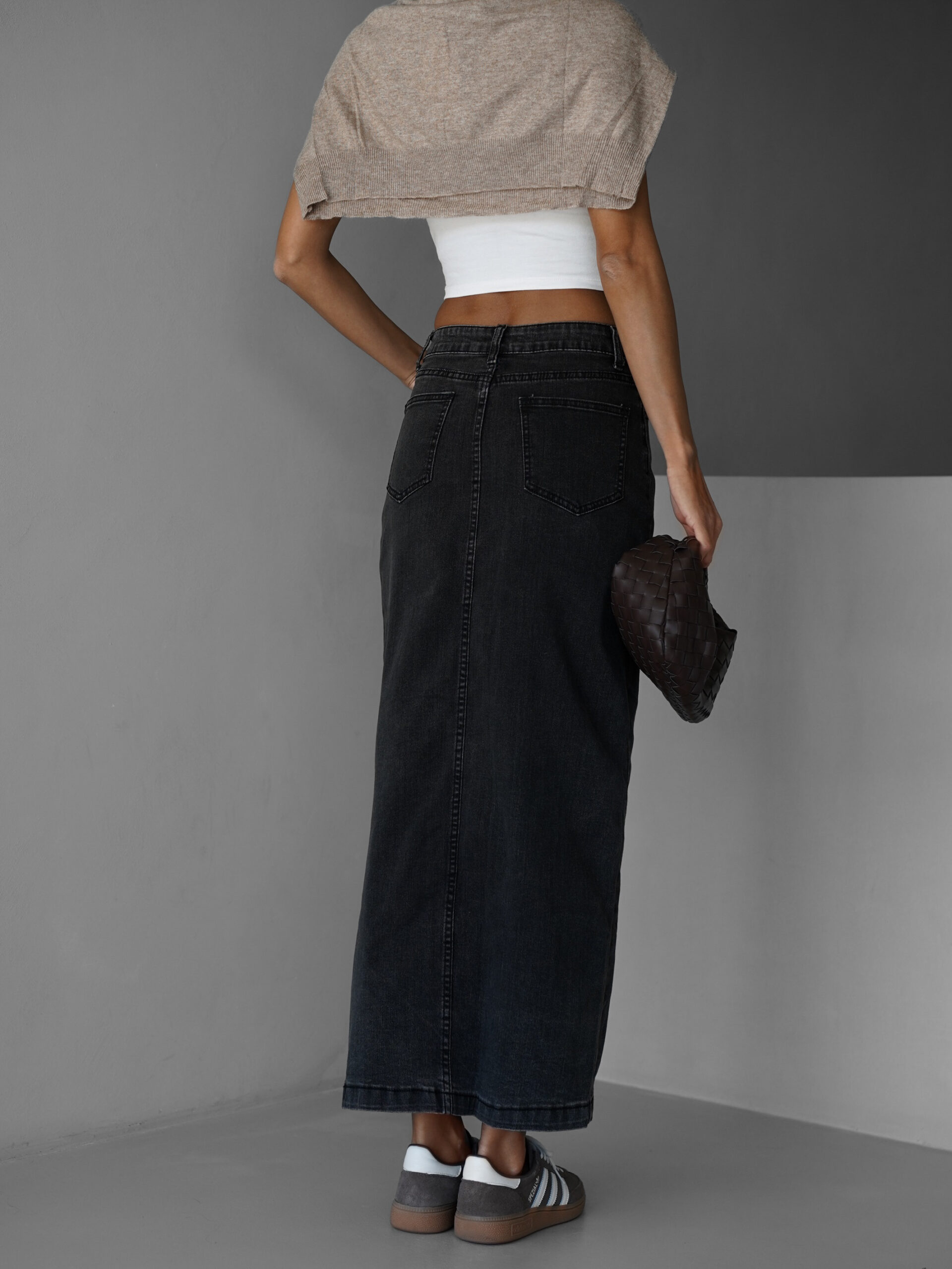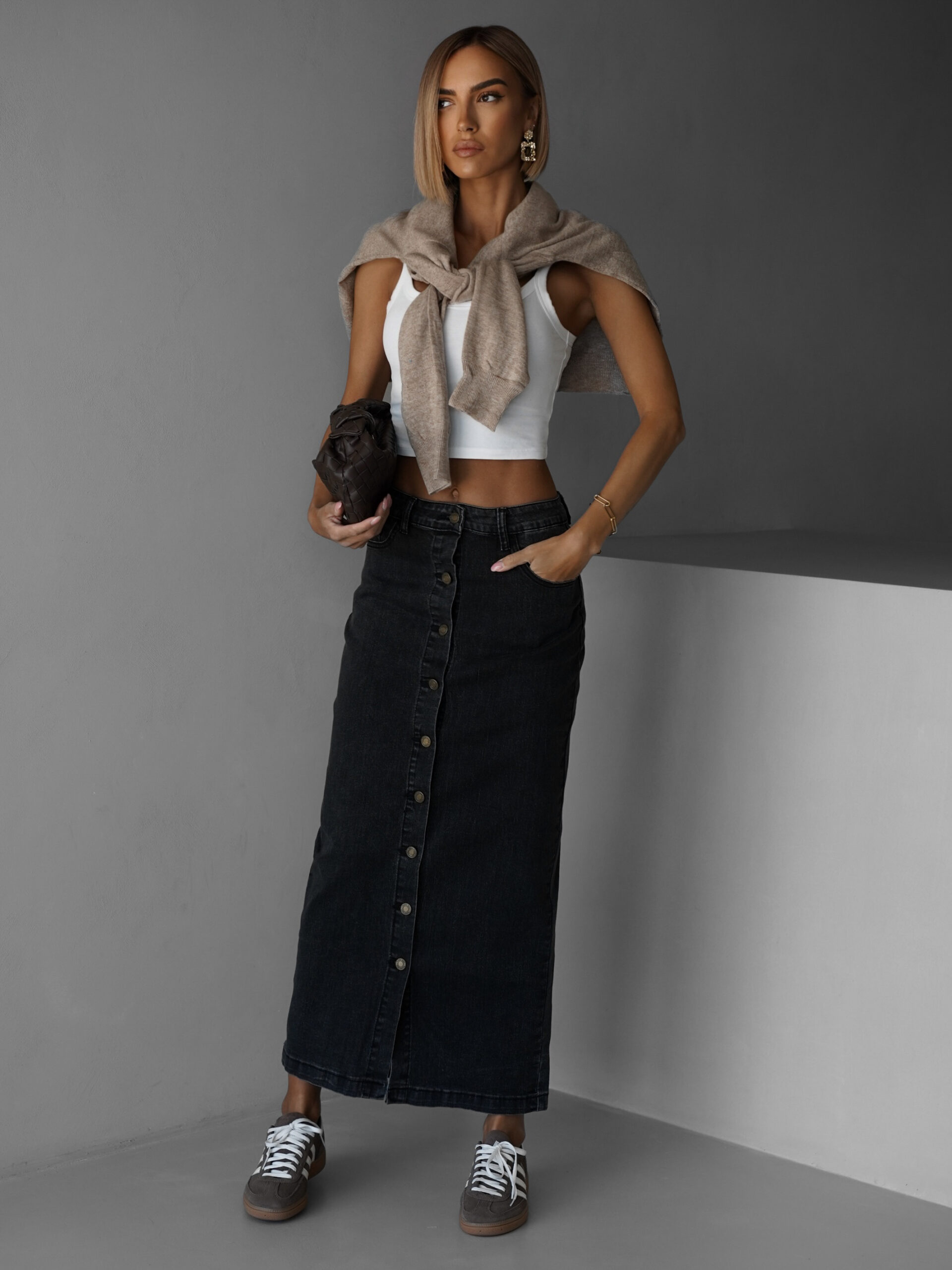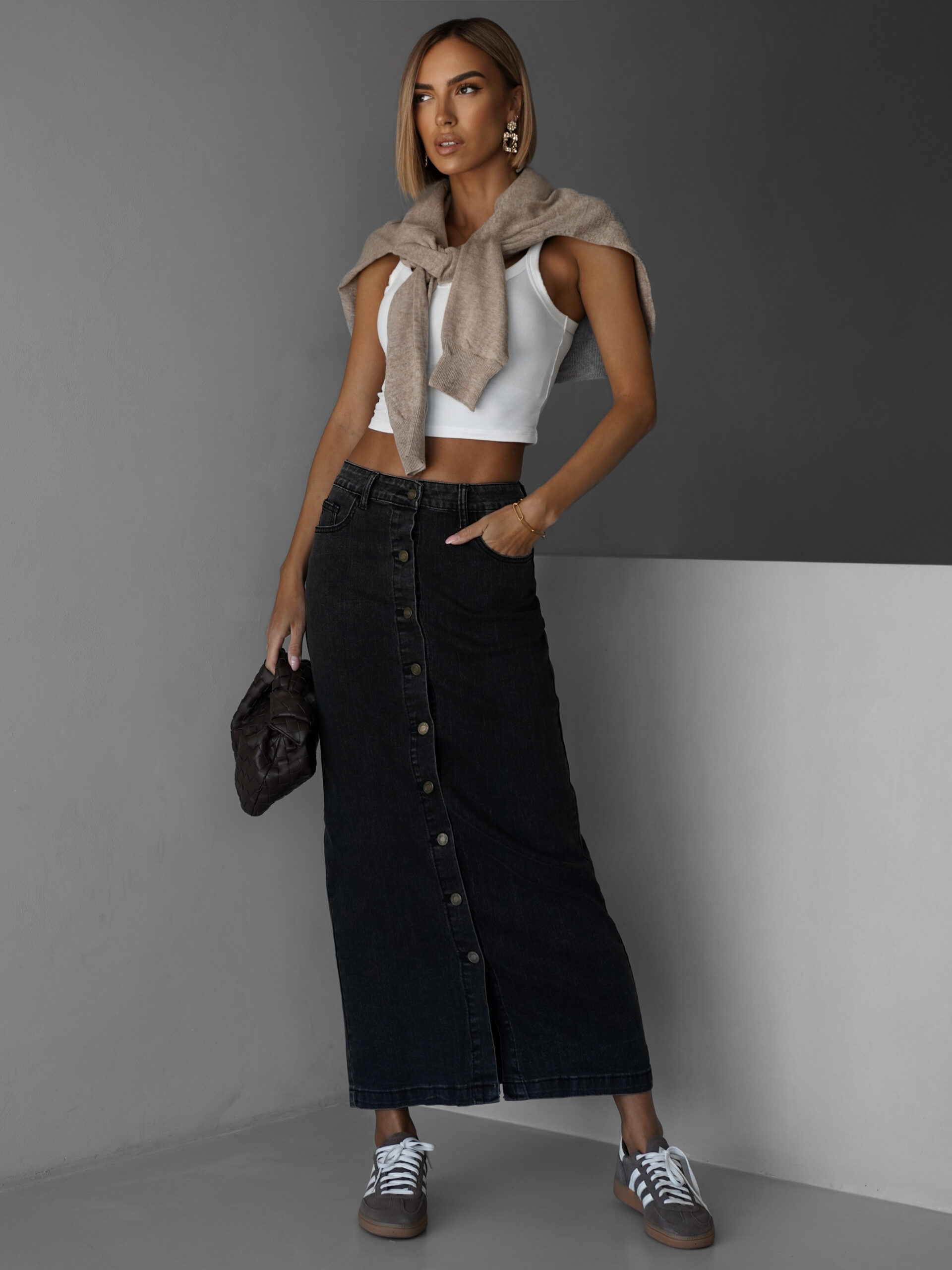 Černá dlouhá džínová maxi sukně AUGUSTYN s knoflíky Velikost: S