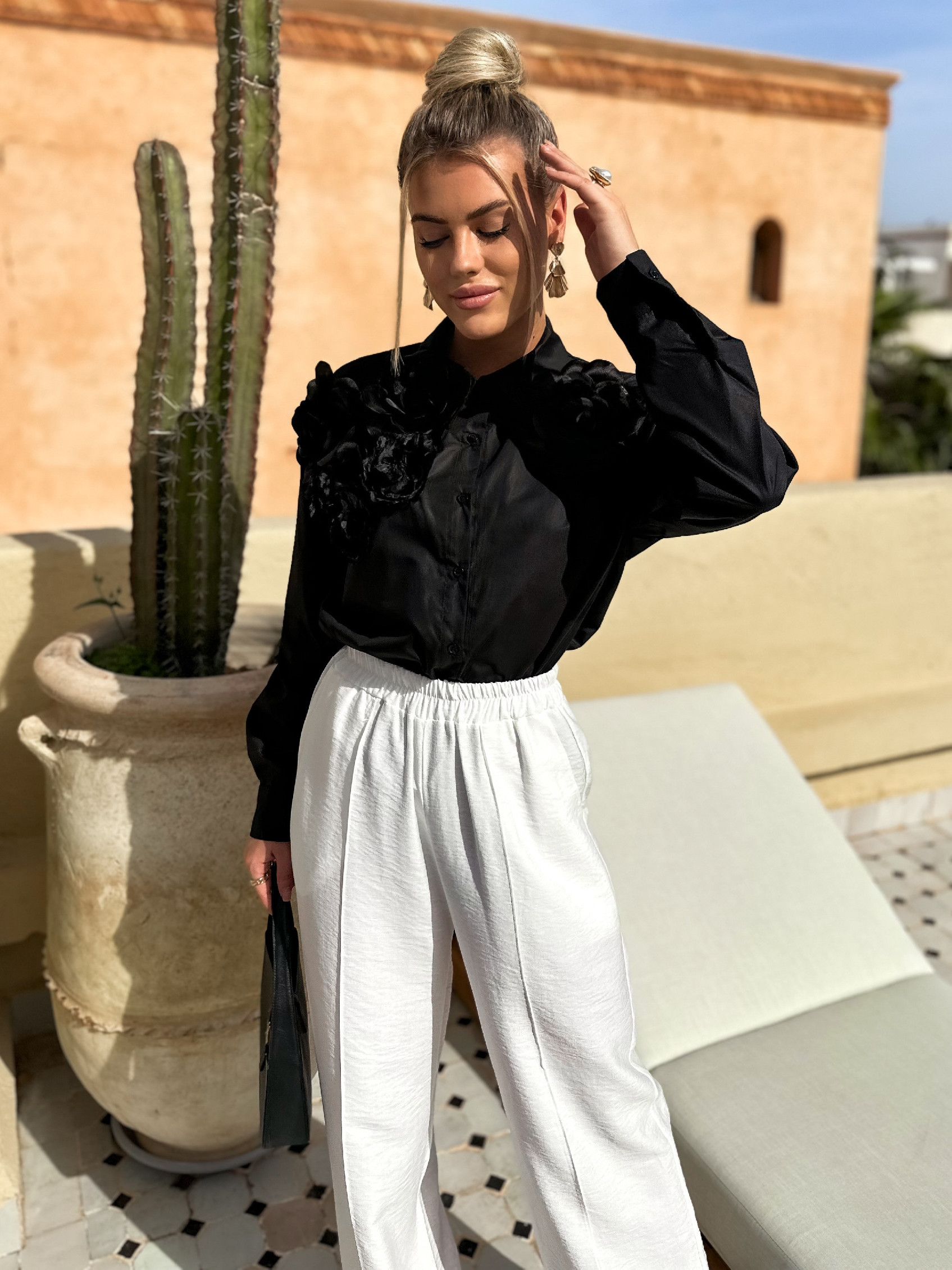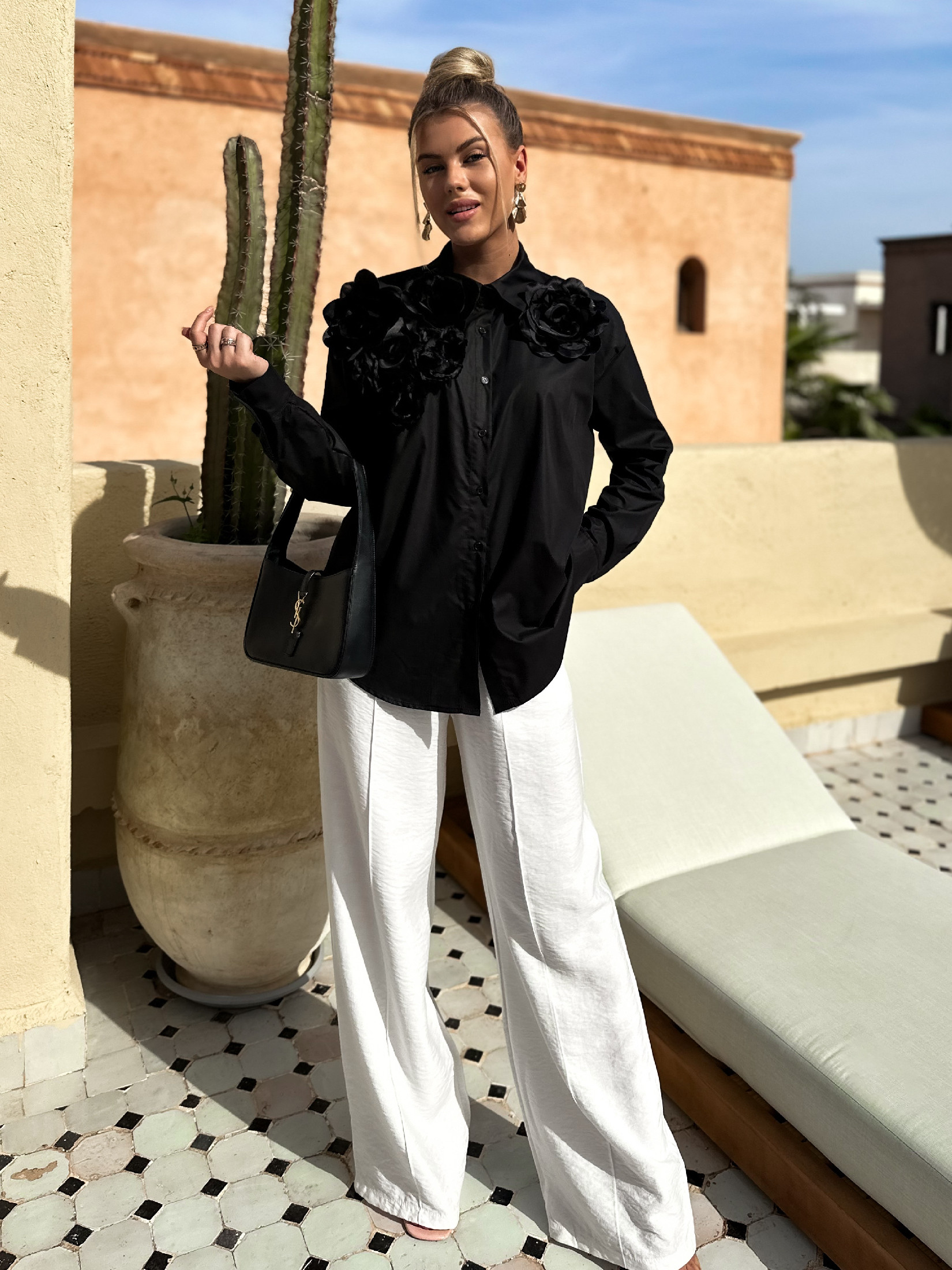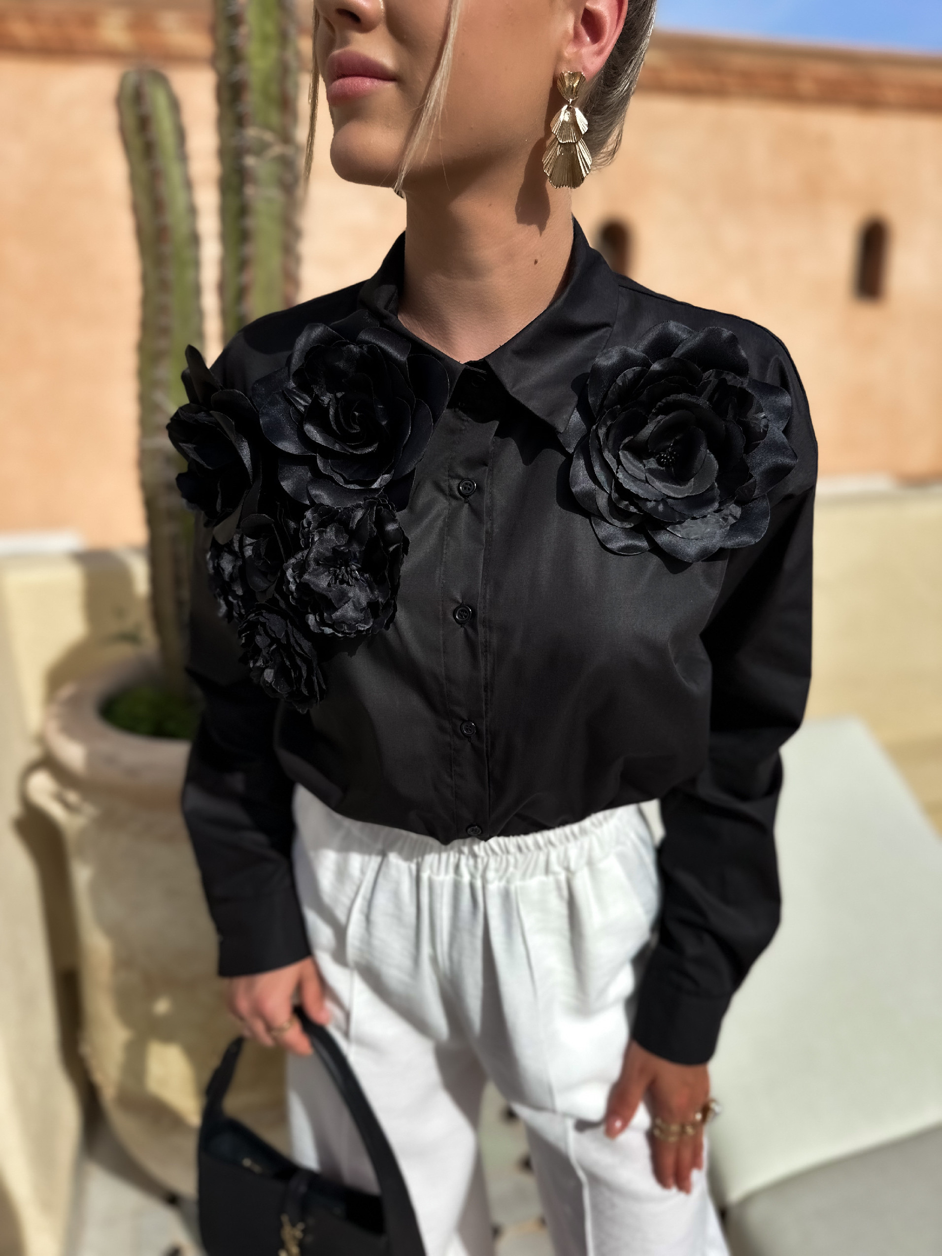 Černá dlouhá košile s 3D květinami XATEL Velikost: M/L