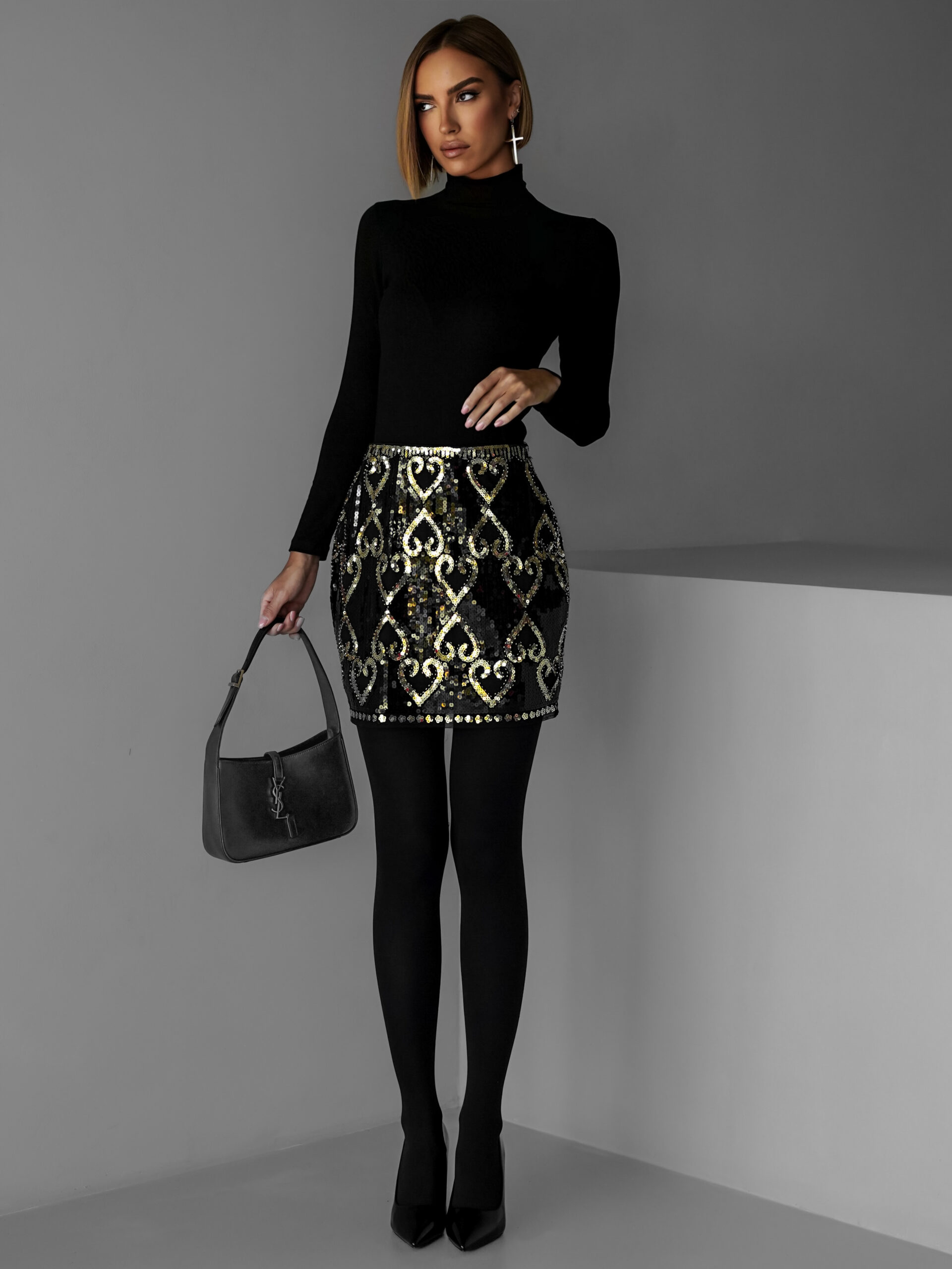 Černá flitrovaná mini sukně FELICIA Velikost: S/M