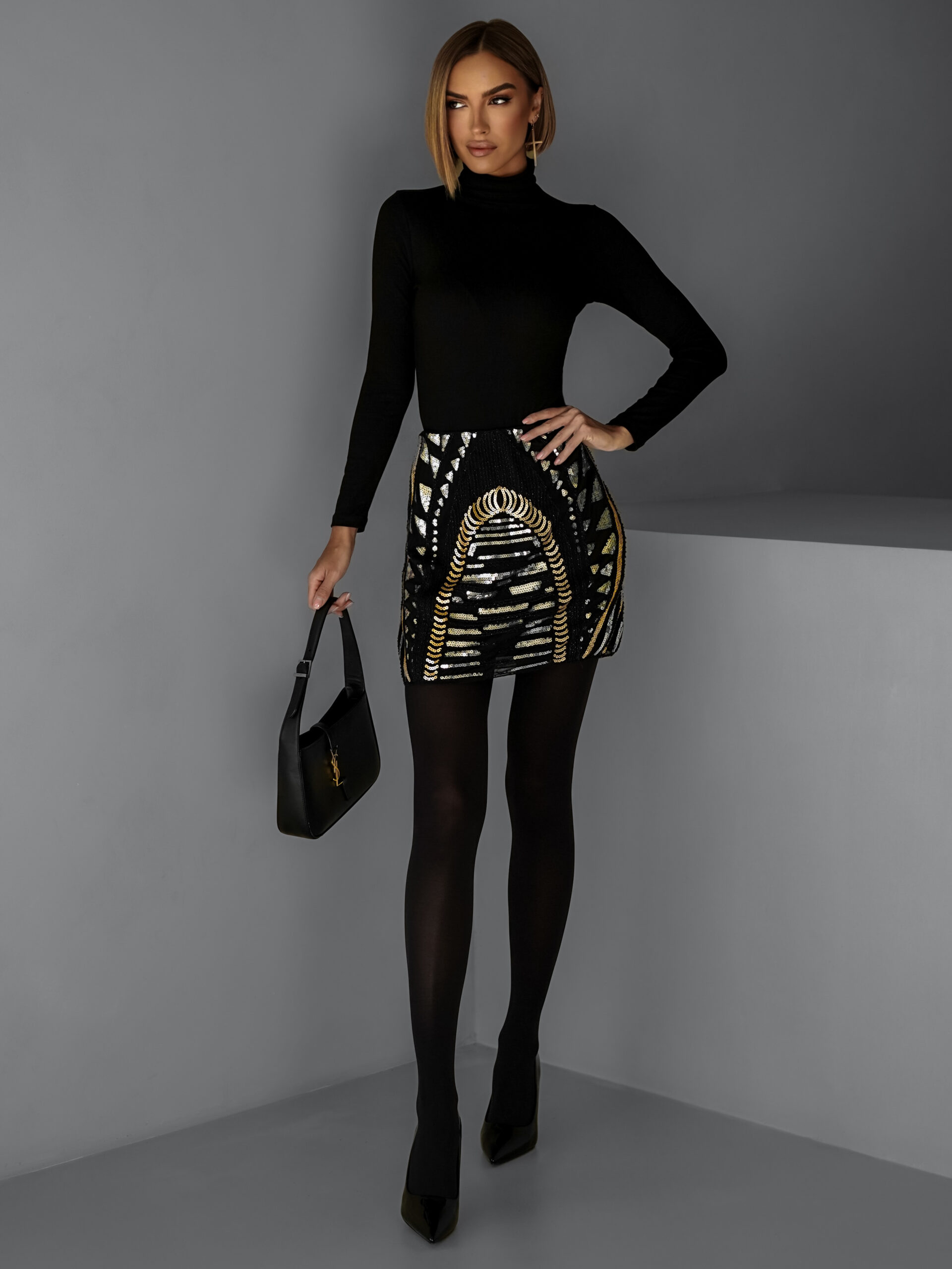 Černá flitrovaná mini sukně LENNART Velikost: ONESIZE