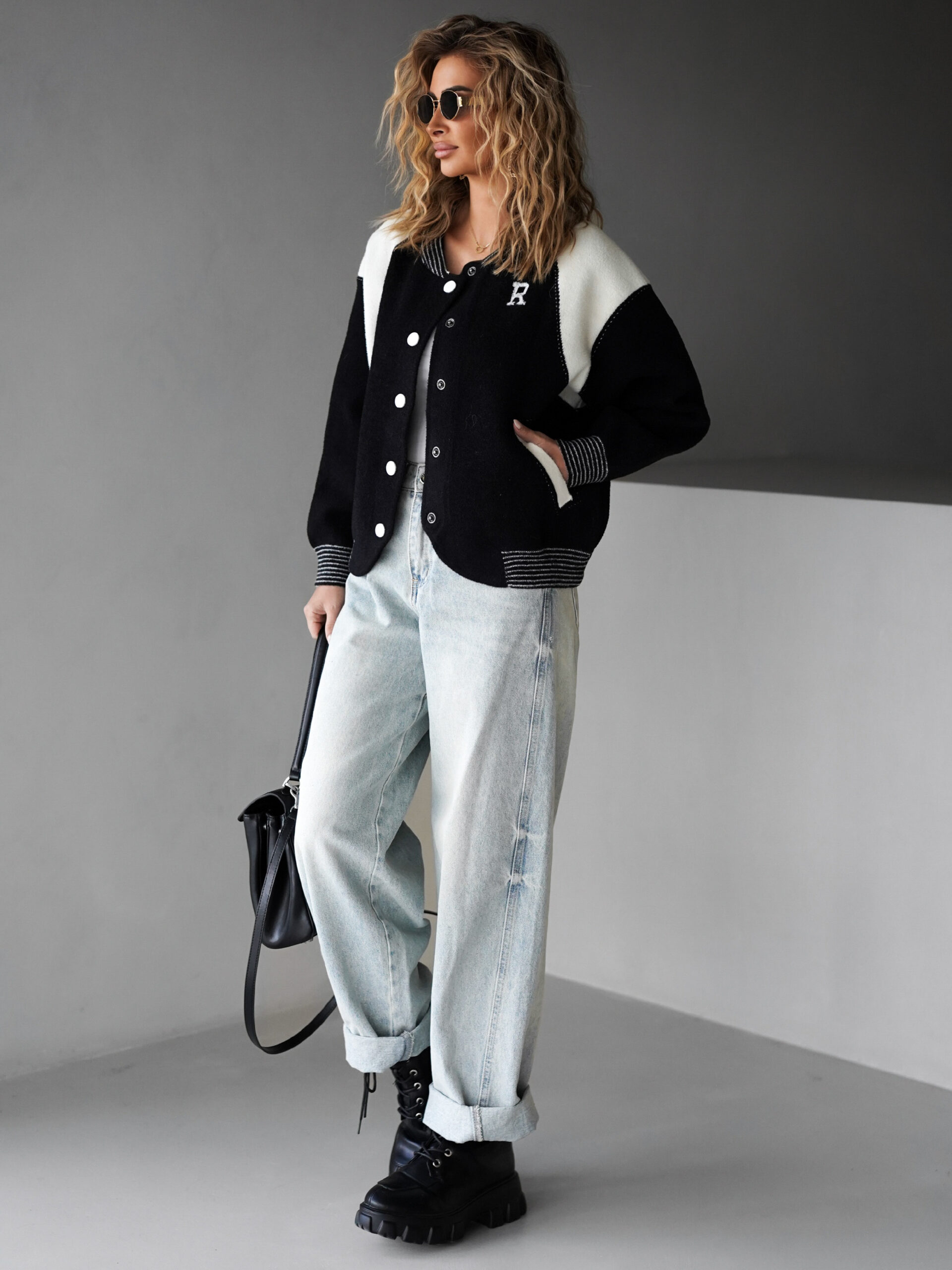Černá mikinová baseball bundička GUSTINA Velikost: ONESIZE
