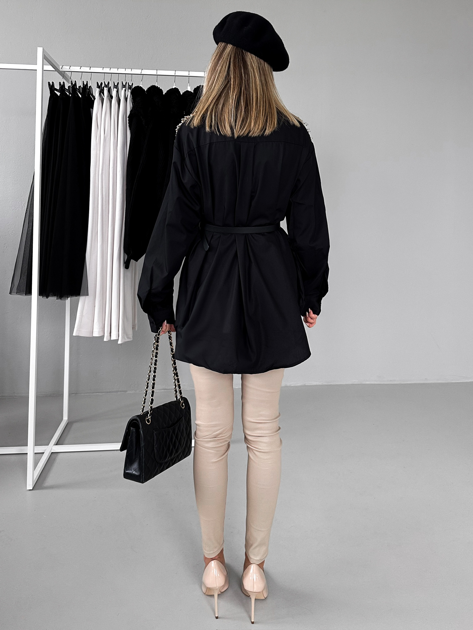 Černá stylová košile LUPITA s aplikací Velikost: L/XL