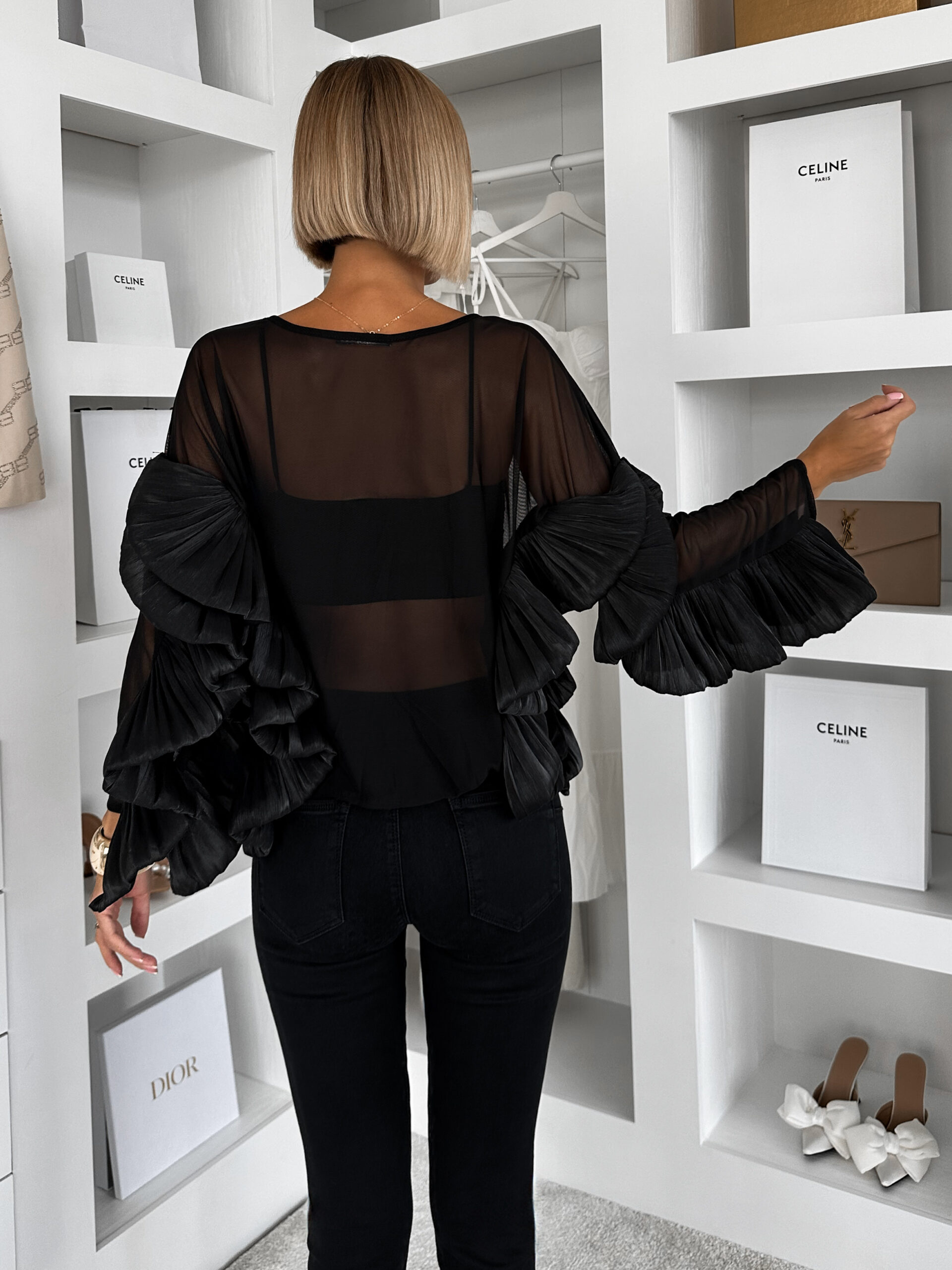 Černá volánková transparentní halenka LIORA Velikost: M/L