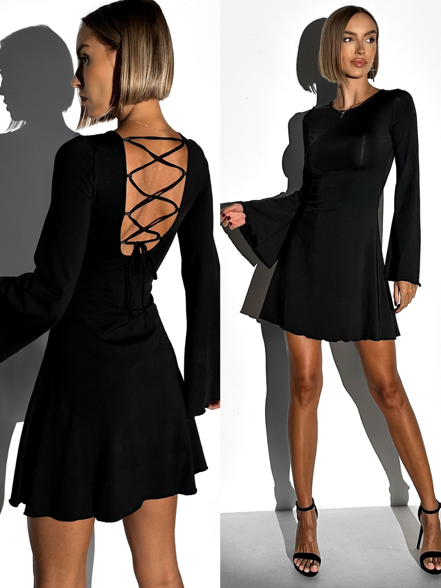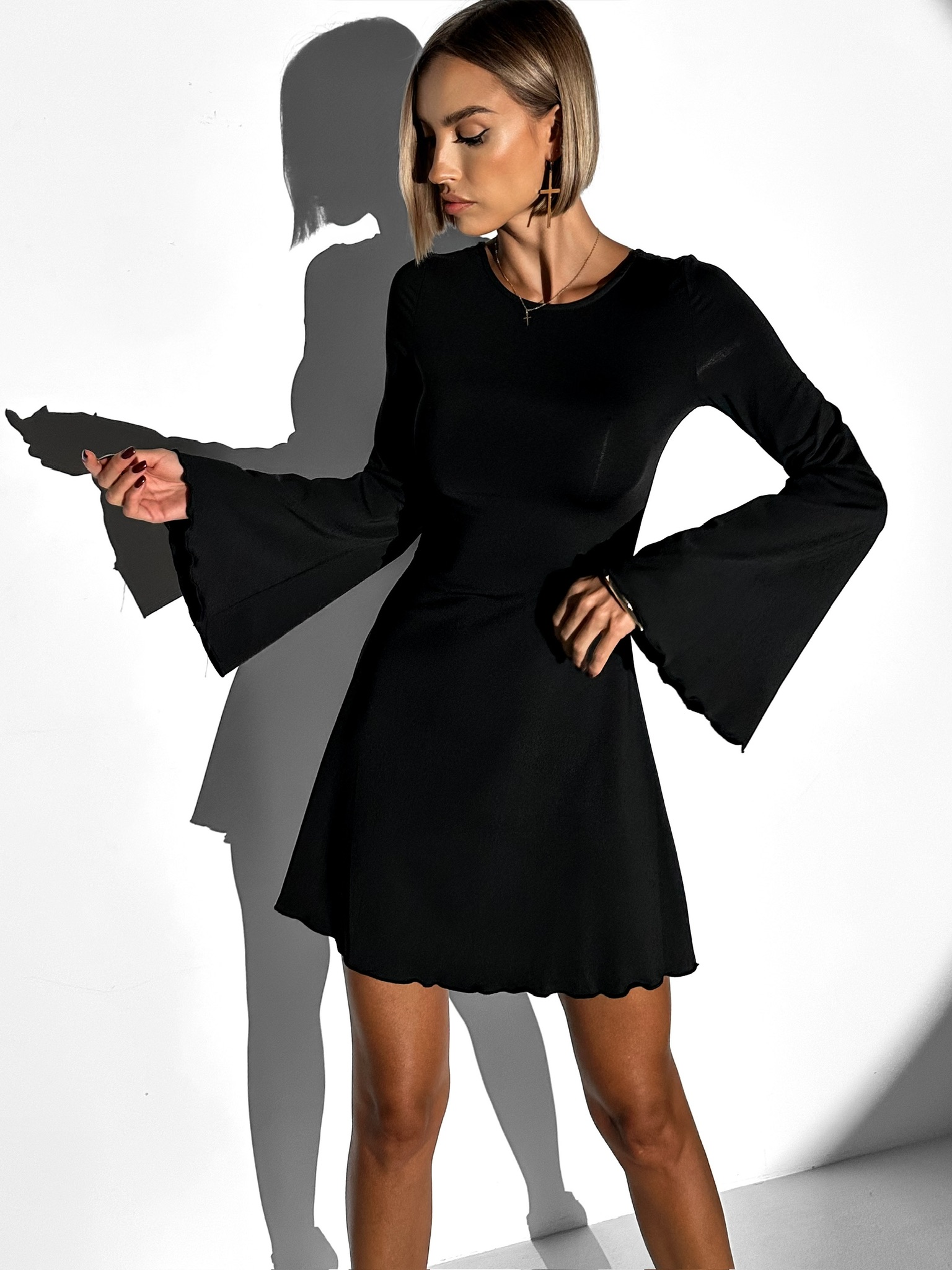 Černé áčkové šaty AGNETA s dlouhým rukávem Velikost: S/M