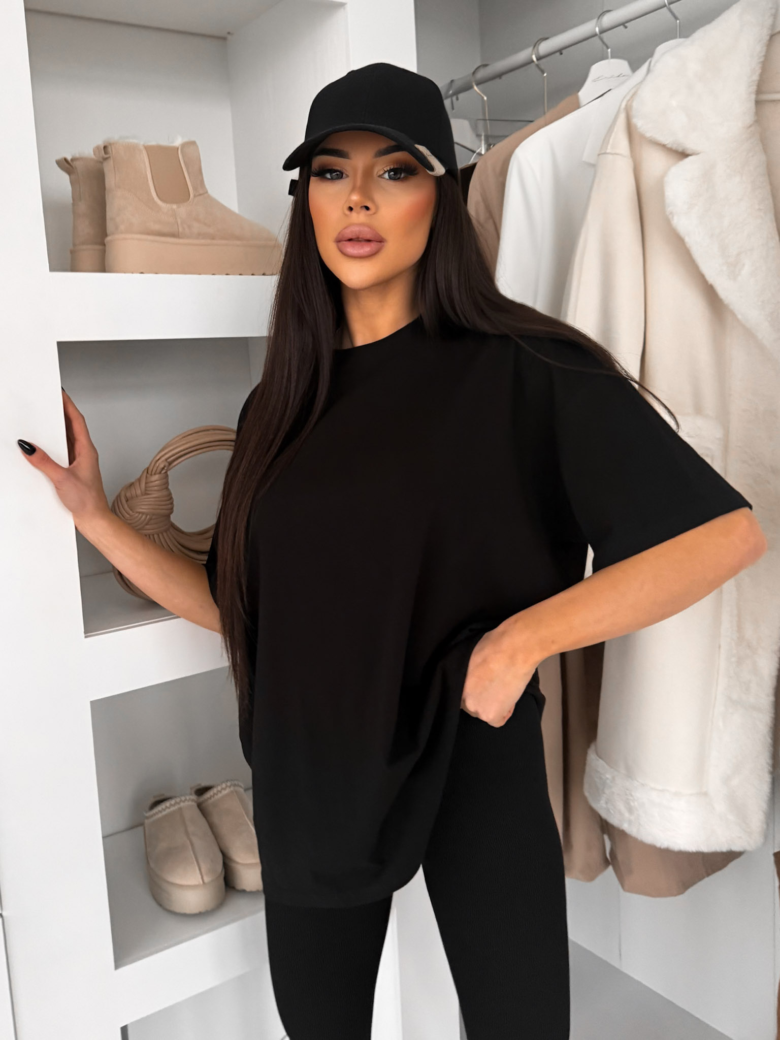 Černé bavlněné basic tričko LOVETE s krátkým rukávem Velikost: ONESIZE