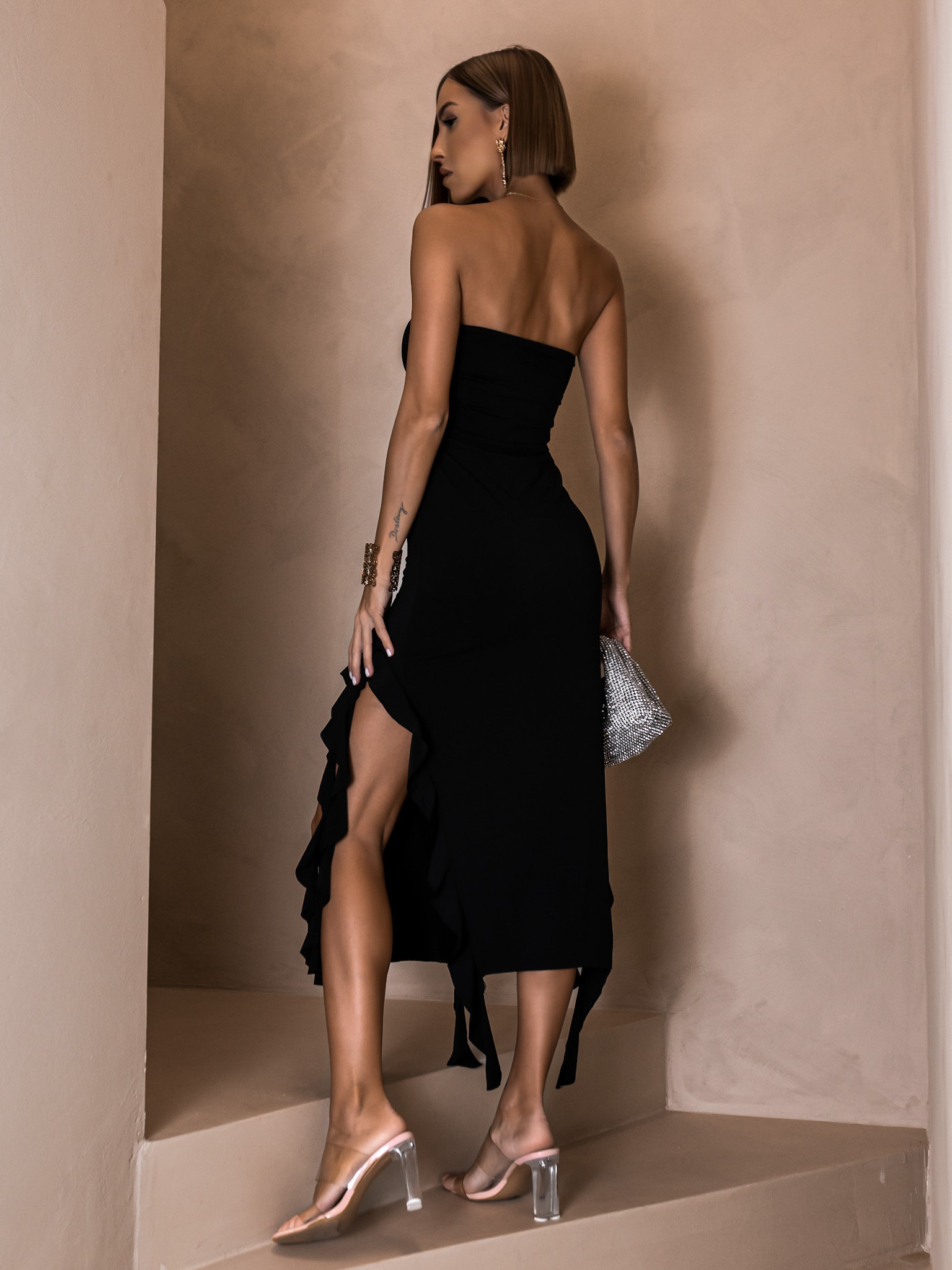 Černé dlouhé elegantní šaty RAJNERY s volány Velikost: M/L