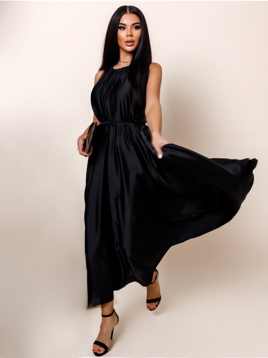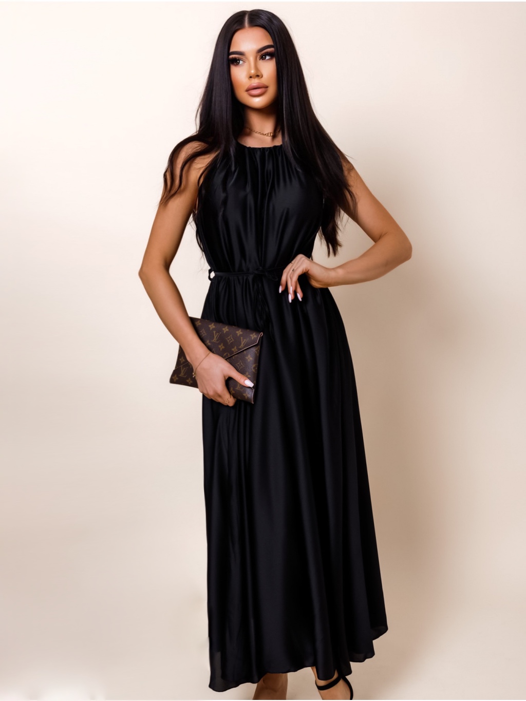 Černé dlouhé lesklé elegantní šaty MADES se zavazováním Velikost: ONESIZE