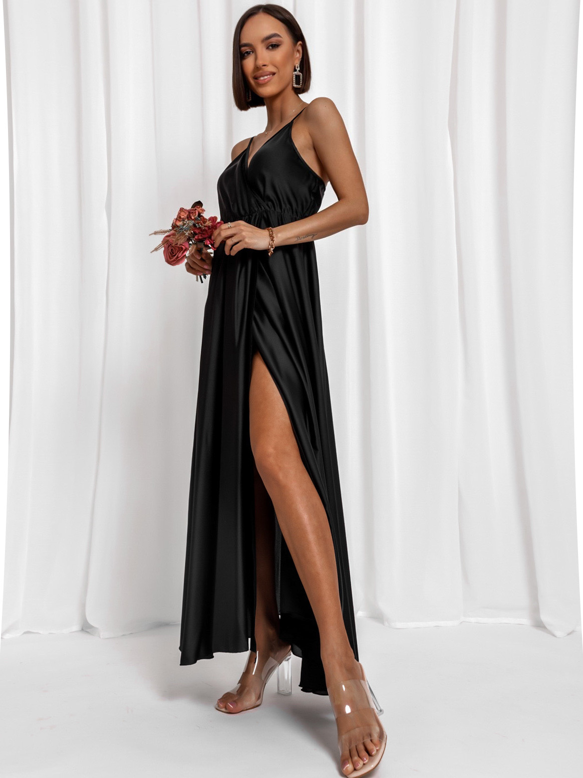 Černé dlouhé lesklé šaty PERFECTLY - Obrázek 3