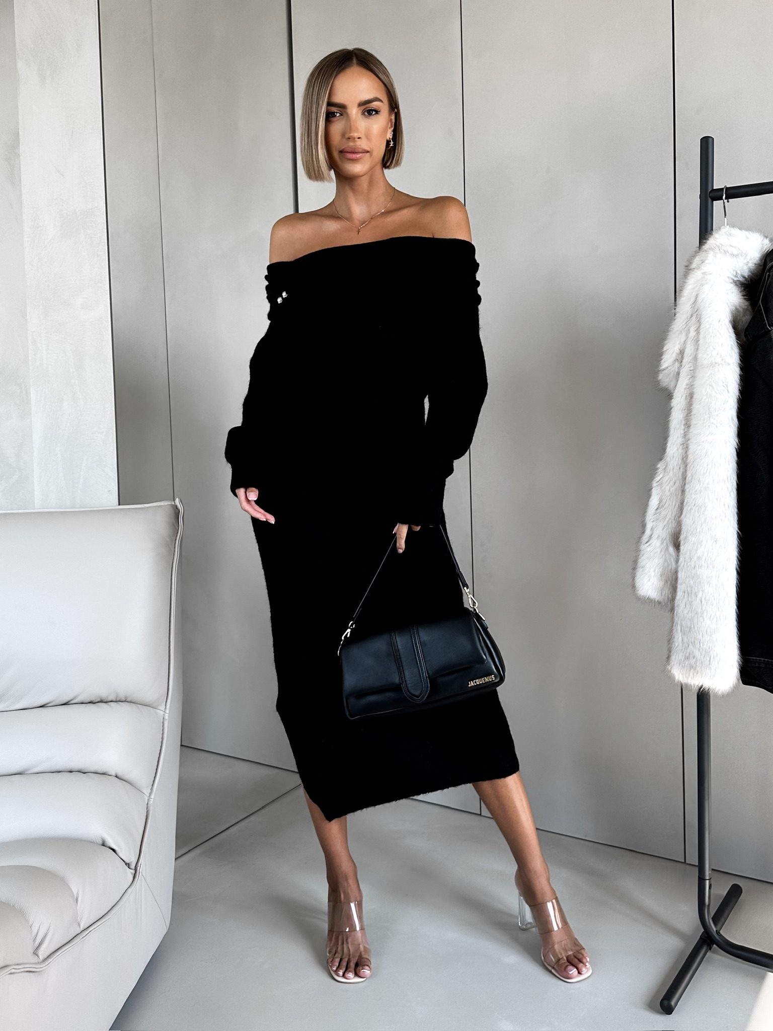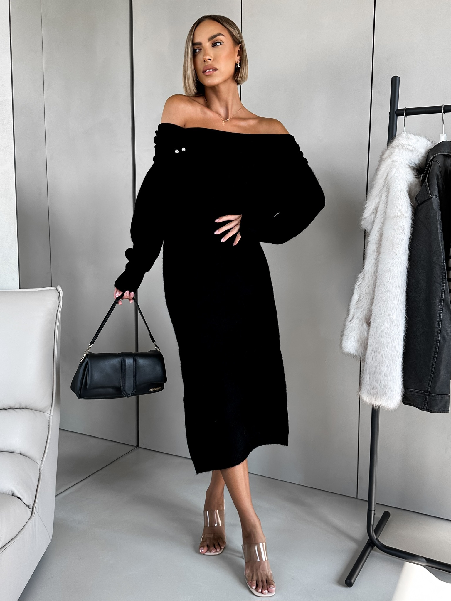 Černé dlouhé svetrové šaty MANEL Velikost: ONESIZE