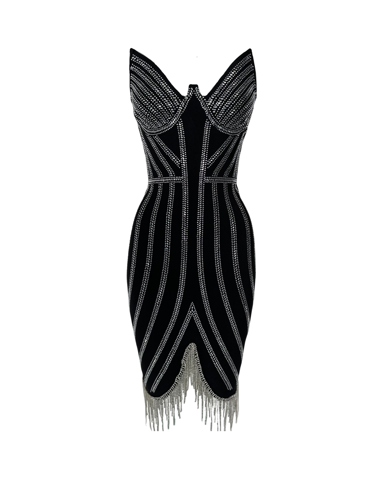 Černé koktejlové šaty KARANY s kamínky Velikost: L