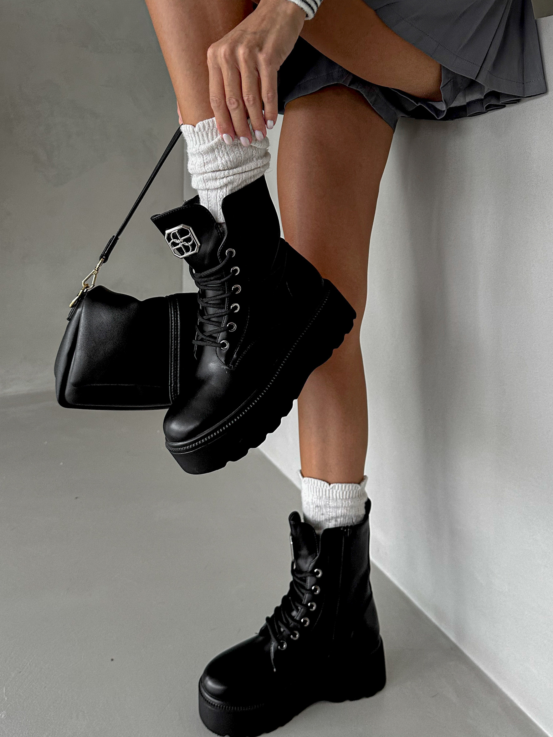 Černé kotníkové kozačky BASIDO na zavazování Velikost: 36
