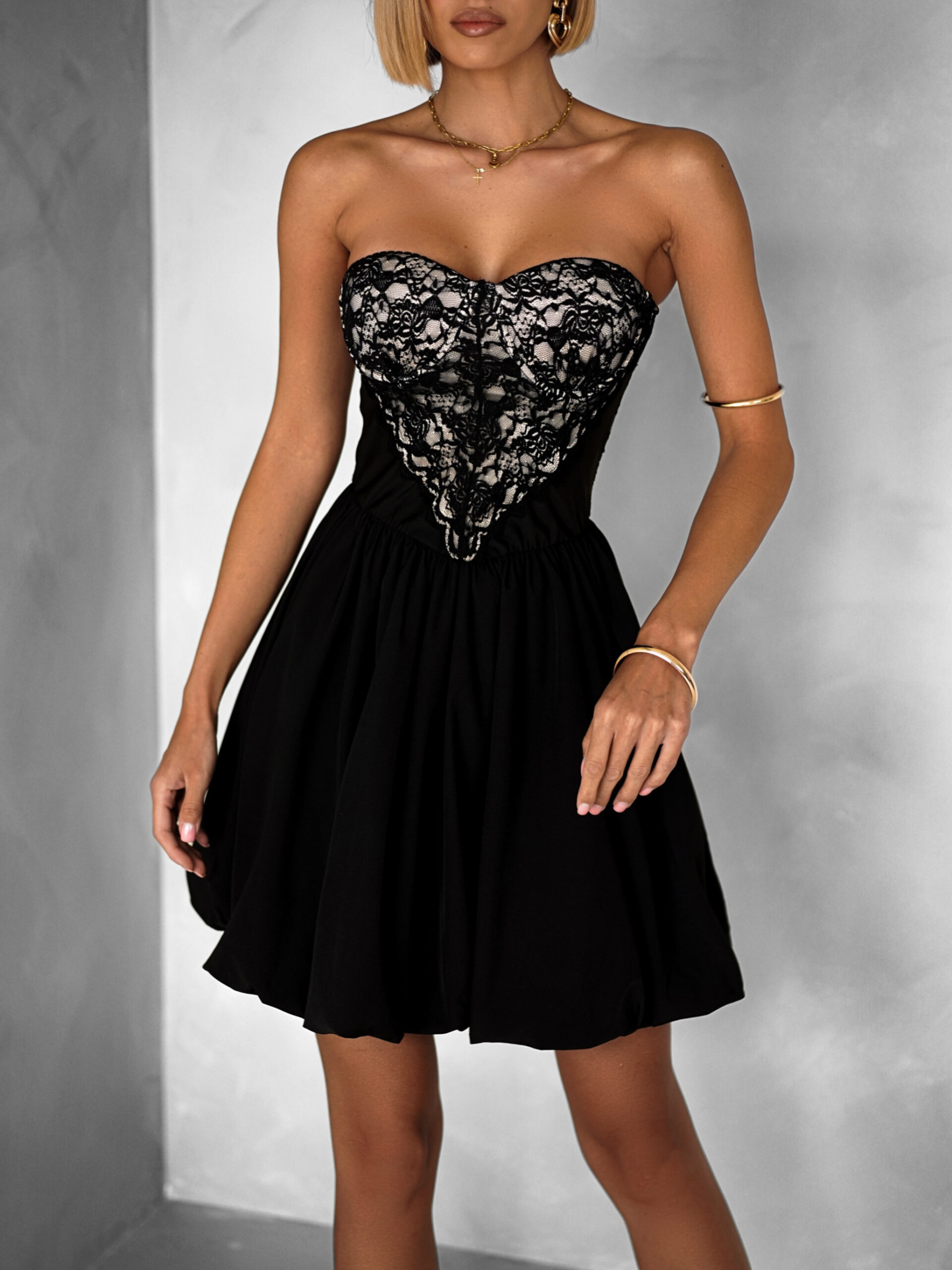 Černé krátké šaty NAMSOSE s áčkovou sukní Velikost: S/M
