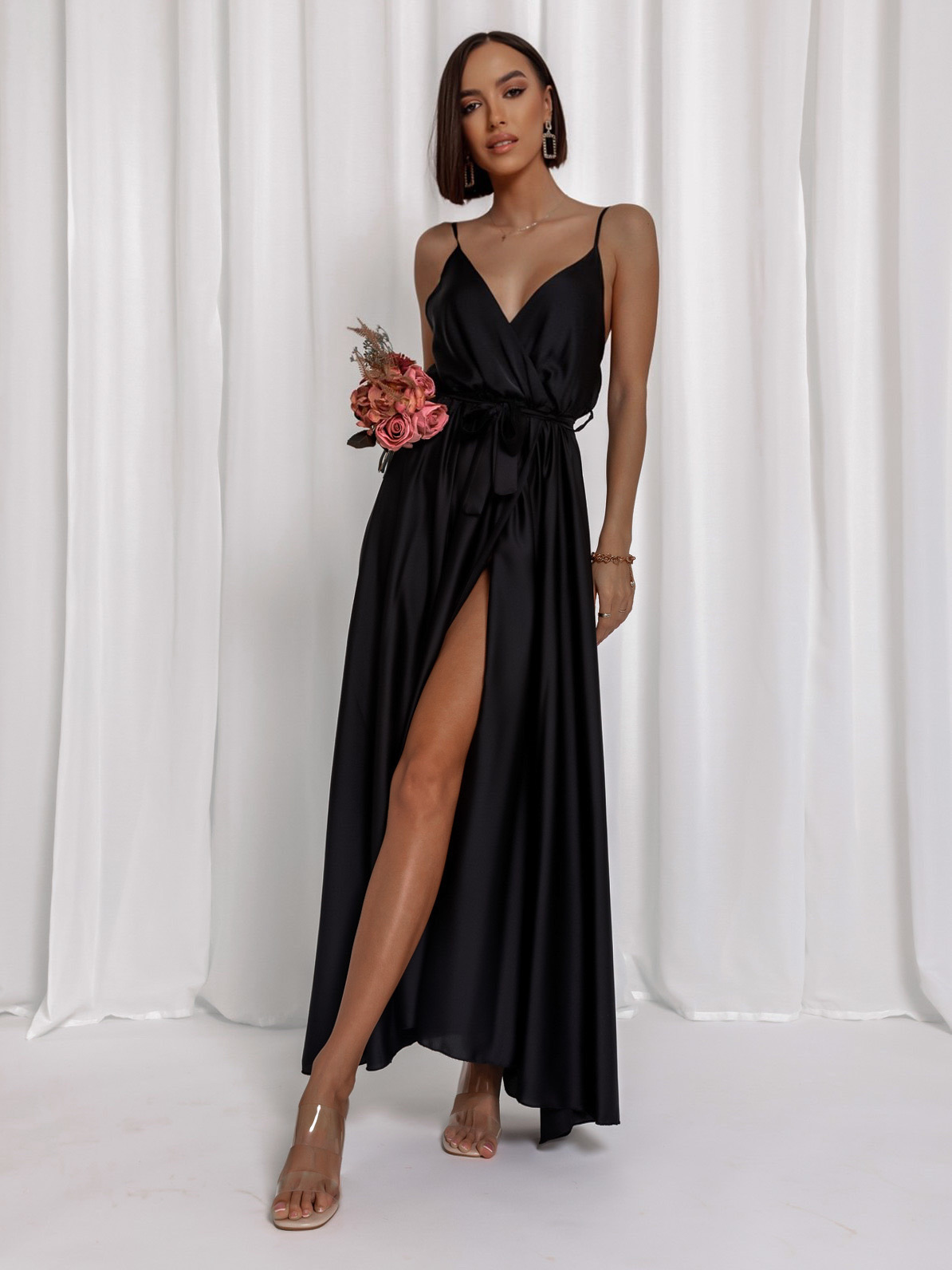 Černé lesklé dlouhé plesové šaty FAIRYTALE pro družičky