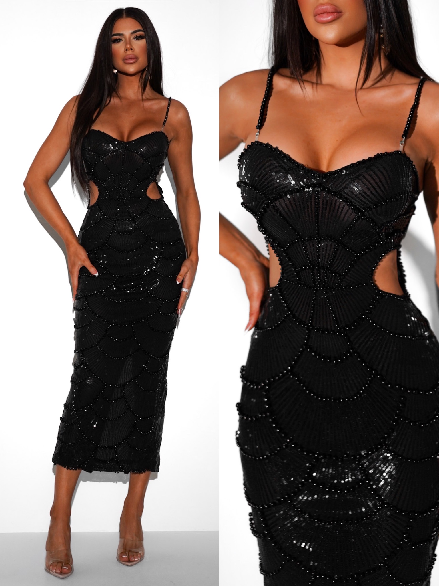 Černé luxusní třpytivé šaty LUMPUR Velikost: L