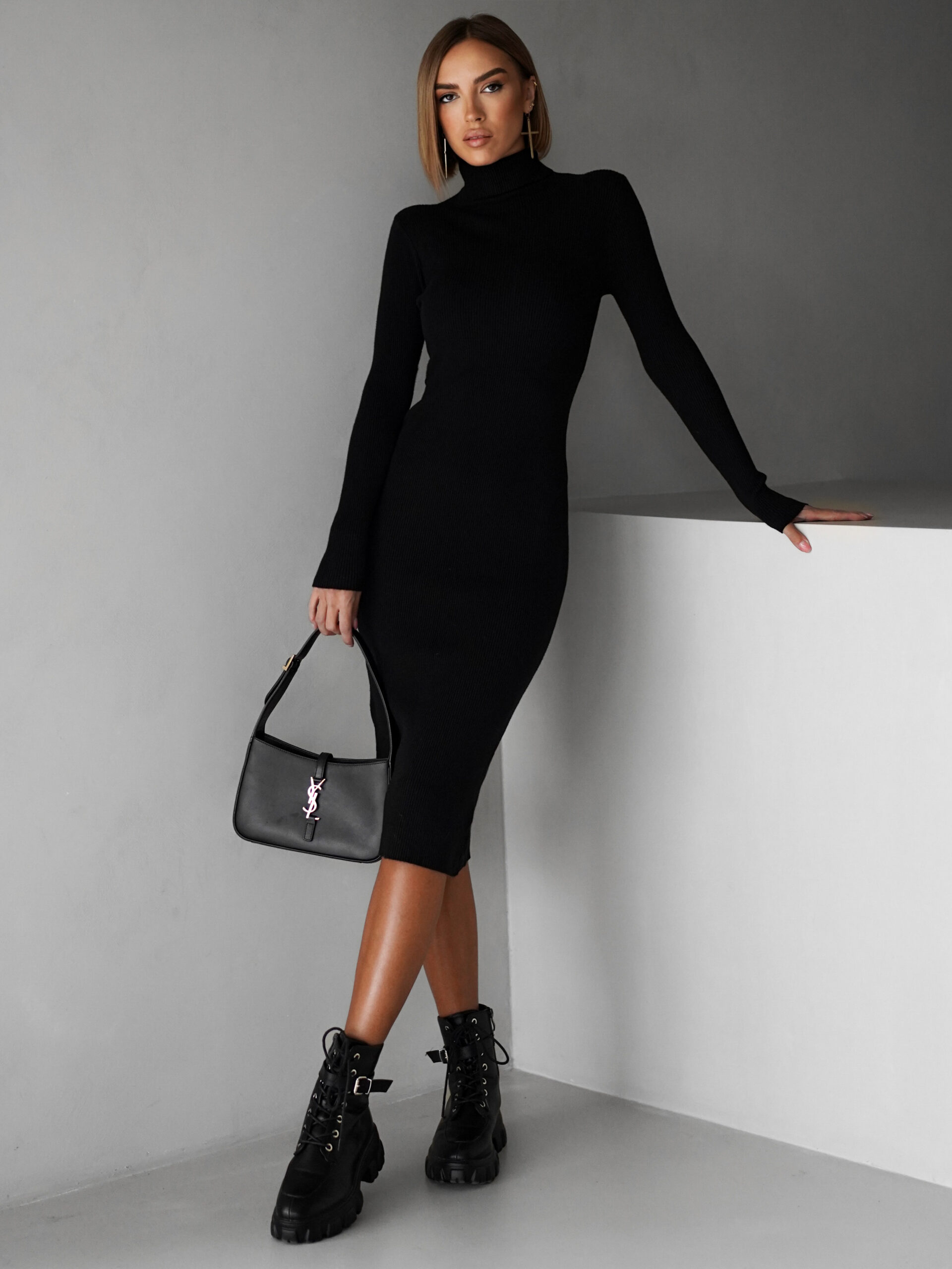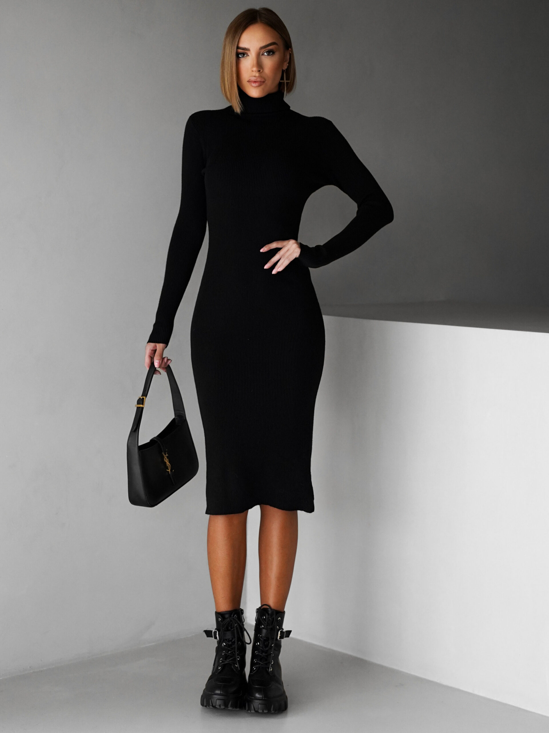 Černé maxi svetrové šaty OKAROT s rolákem Velikost: ONESIZE