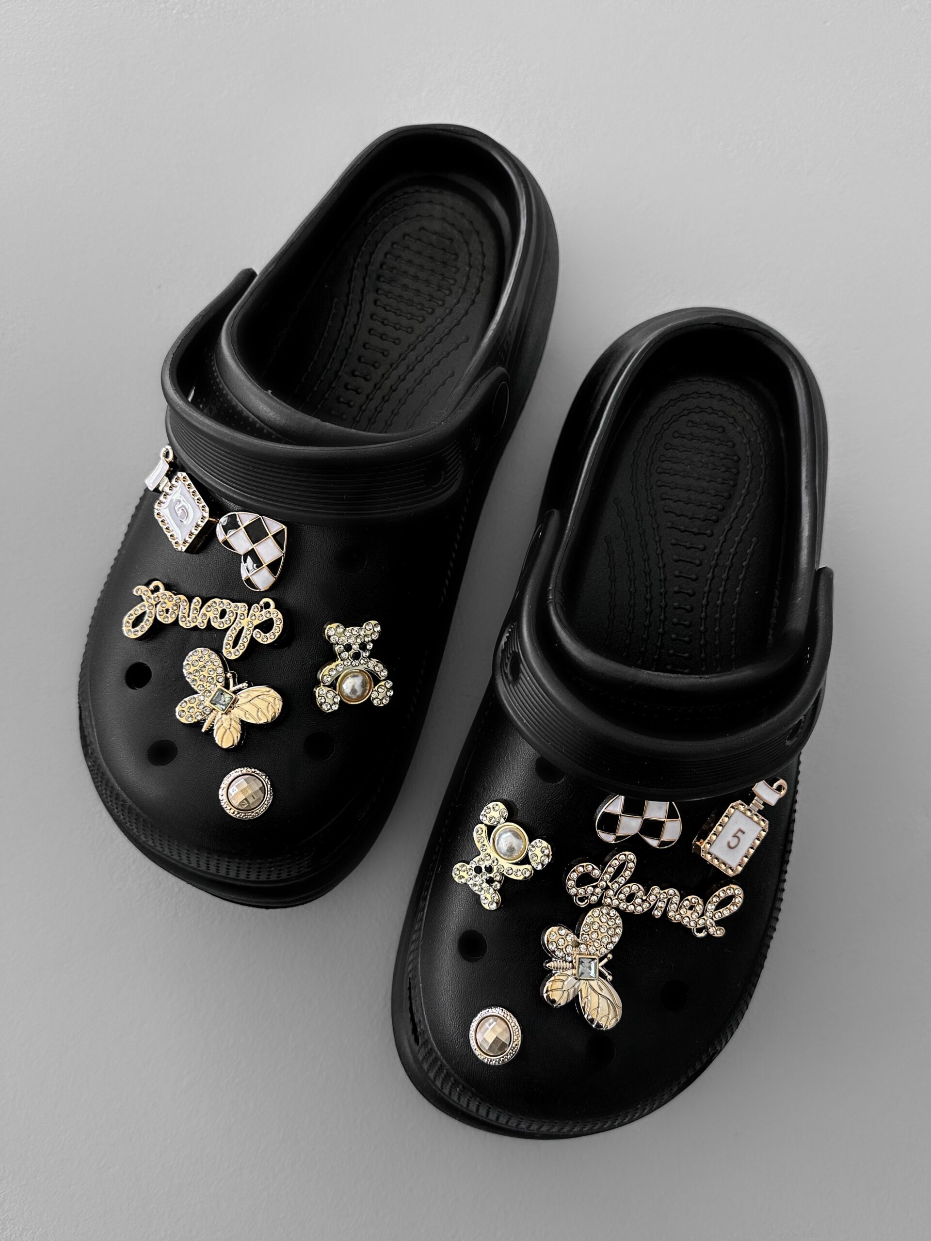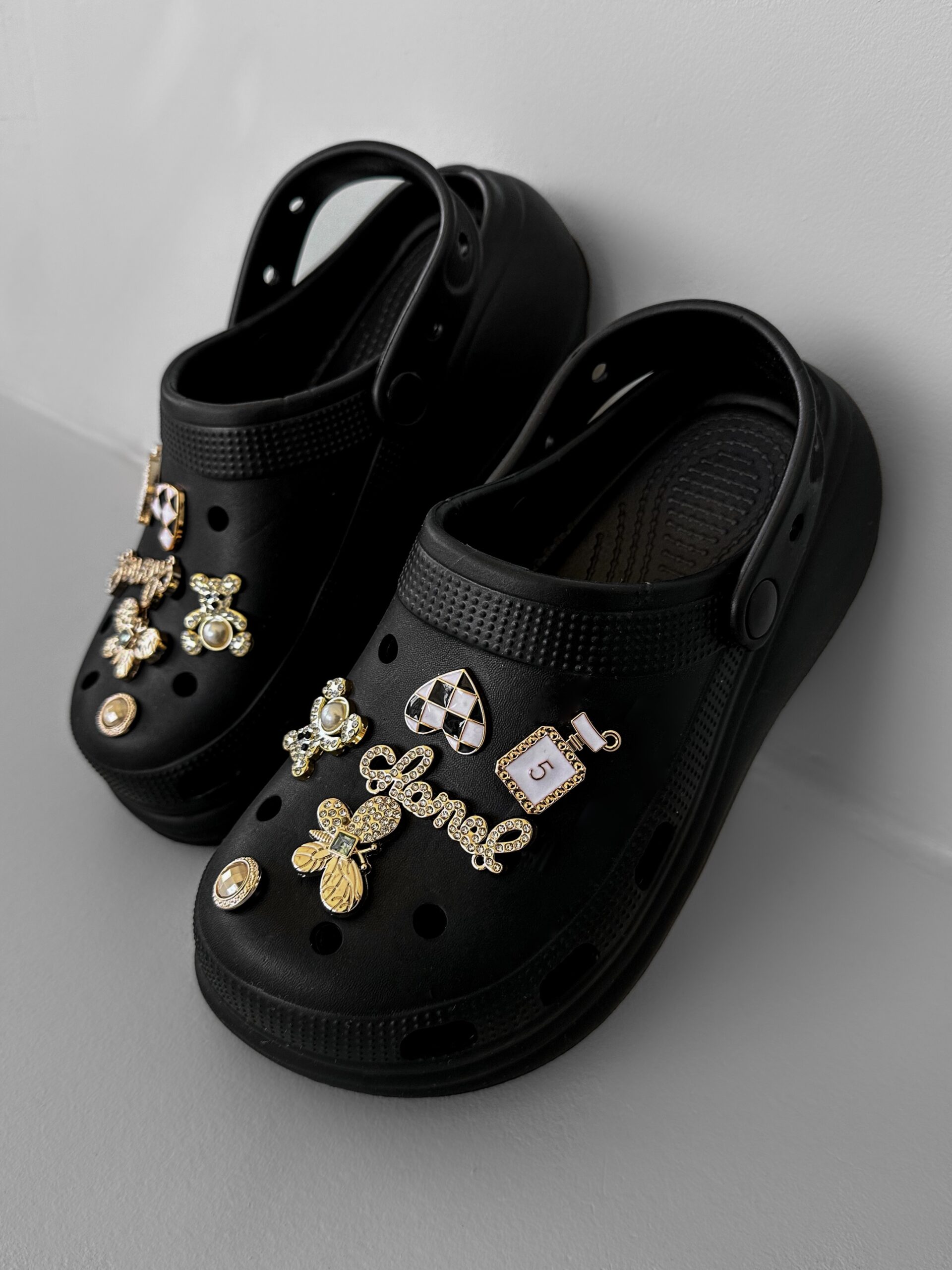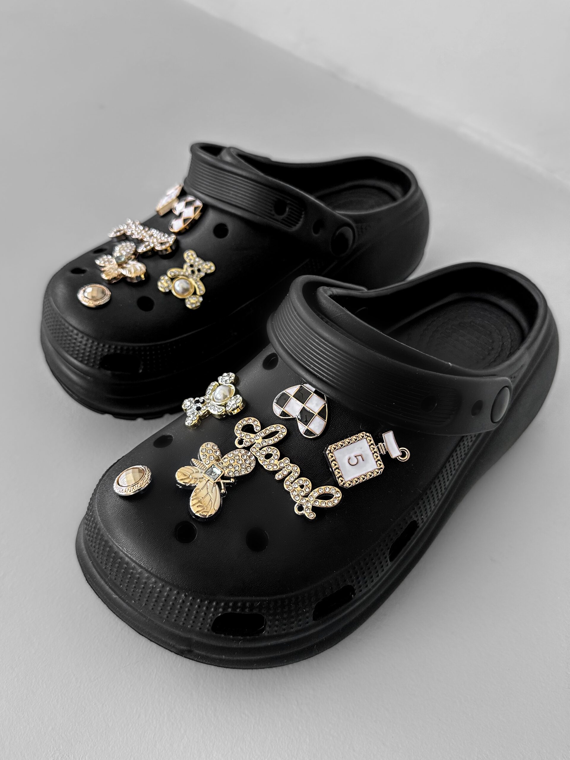 Černé nazouváky SUSIE s ozdobami ve stylu crocs Velikost: 40-41