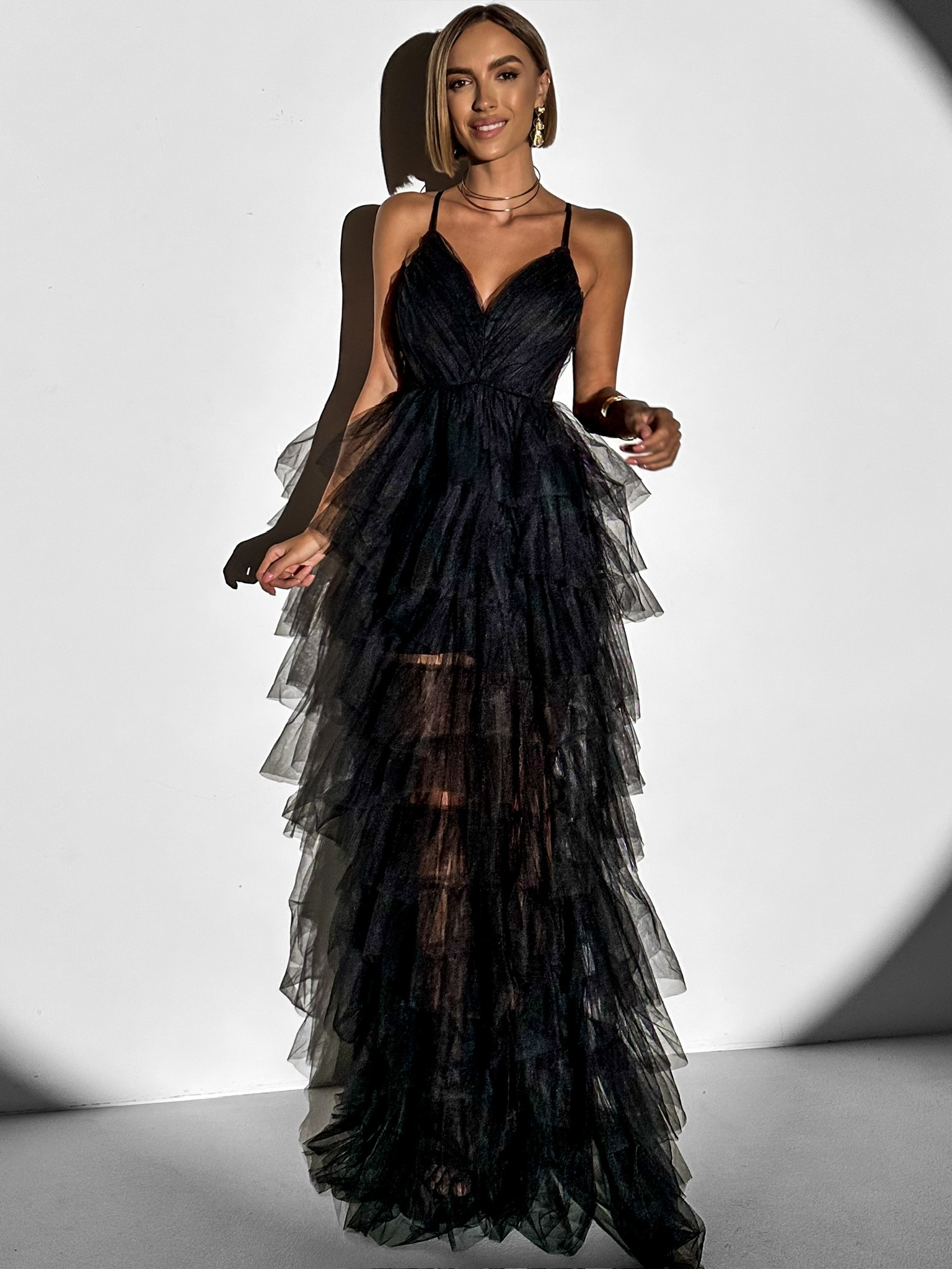 Černé plesové dlouhé šaty AVERKI s tylovou sukní Velikost: M