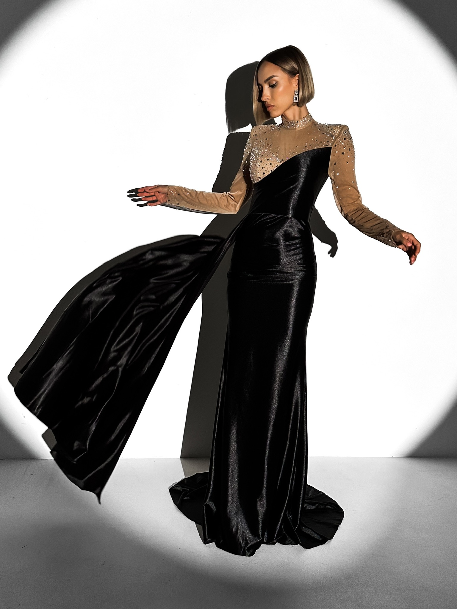 Černé saténové dlouhé večerní šaty BIRGA Velikost: M