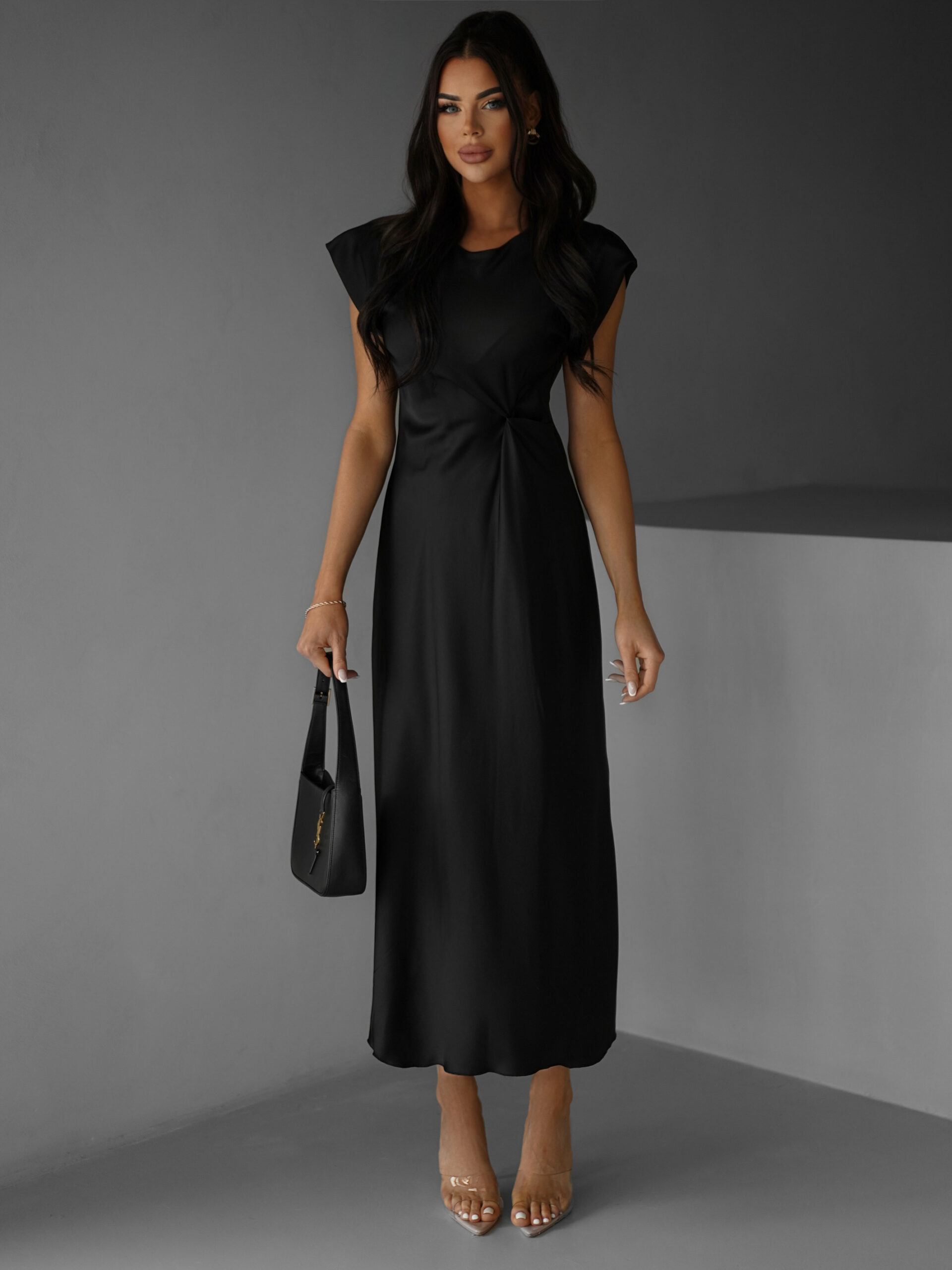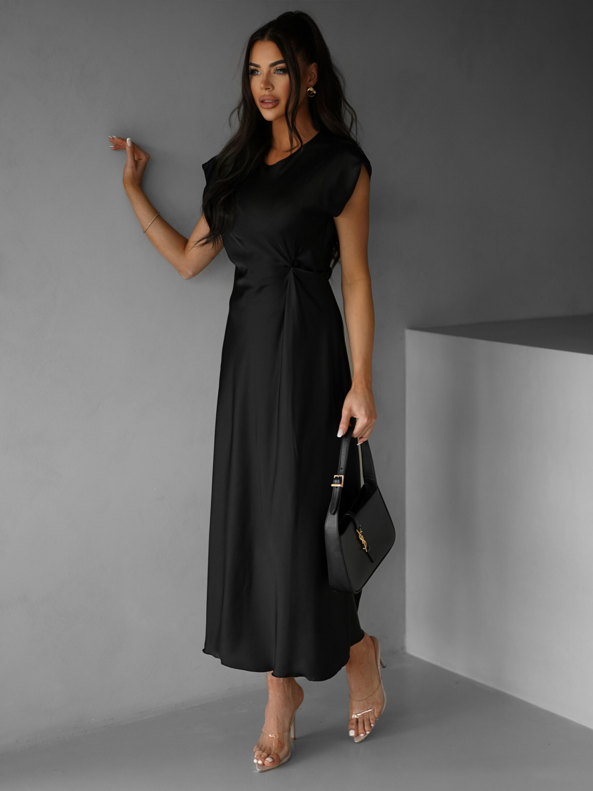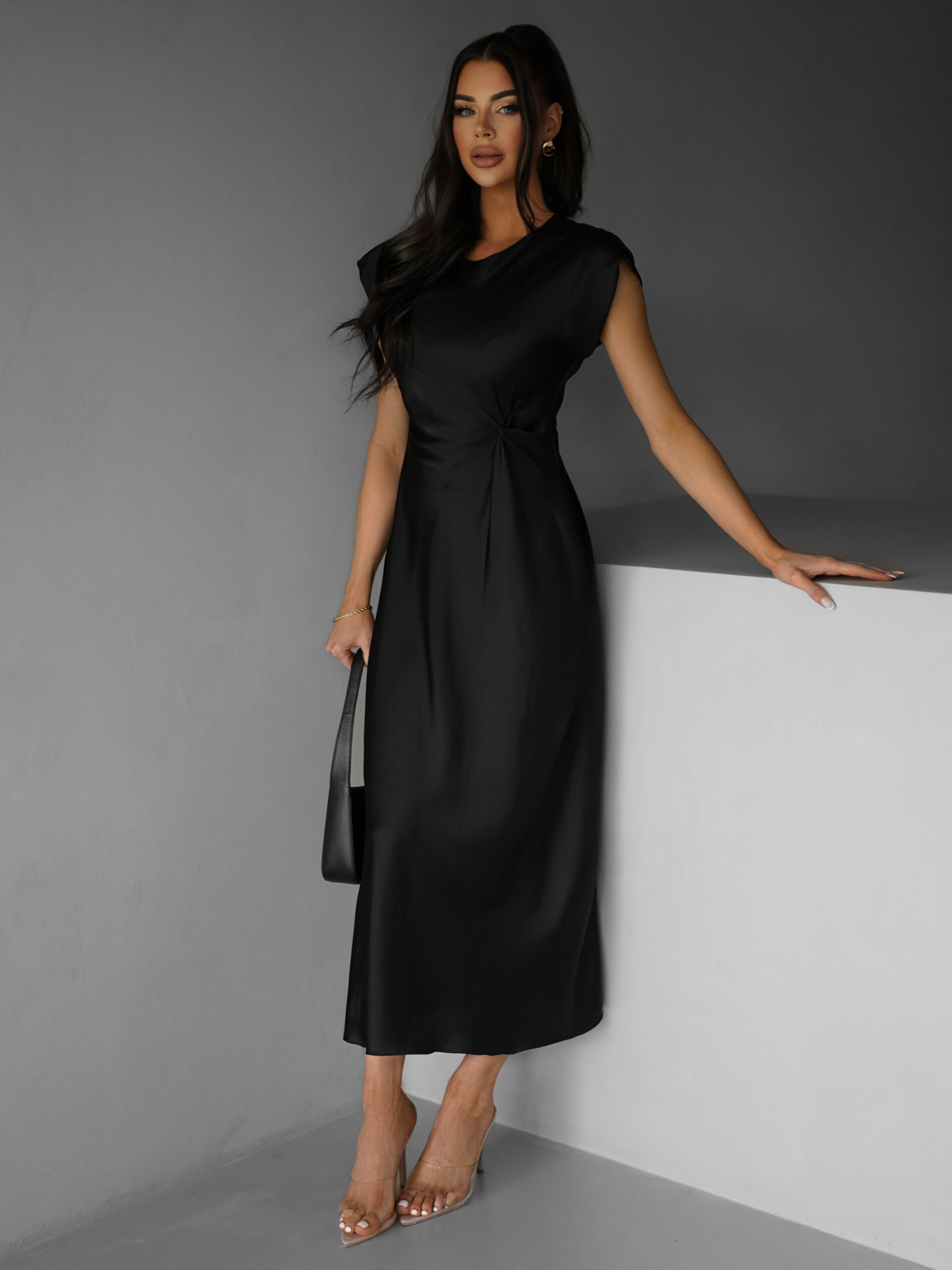 Černé saténové midi šaty SIMONO Velikost: ONESIZE