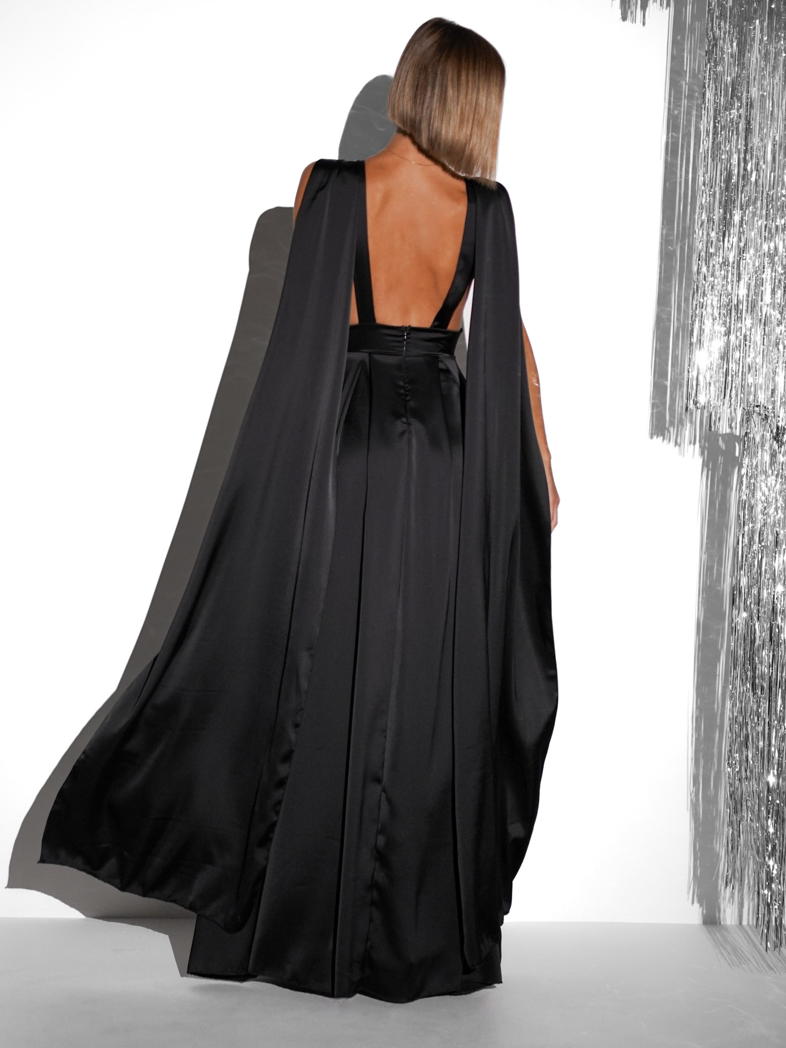 Černé saténové plesové šaty ARMYTE Velikost: ONESIZE