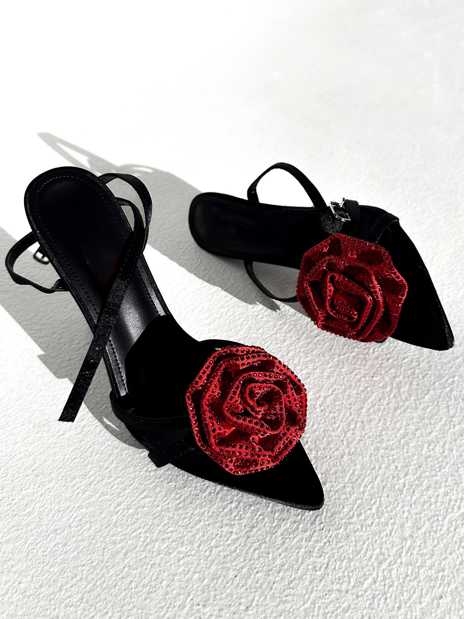 Černé společenské boty na podpatku AETOS s červenou růží Velikost: 38