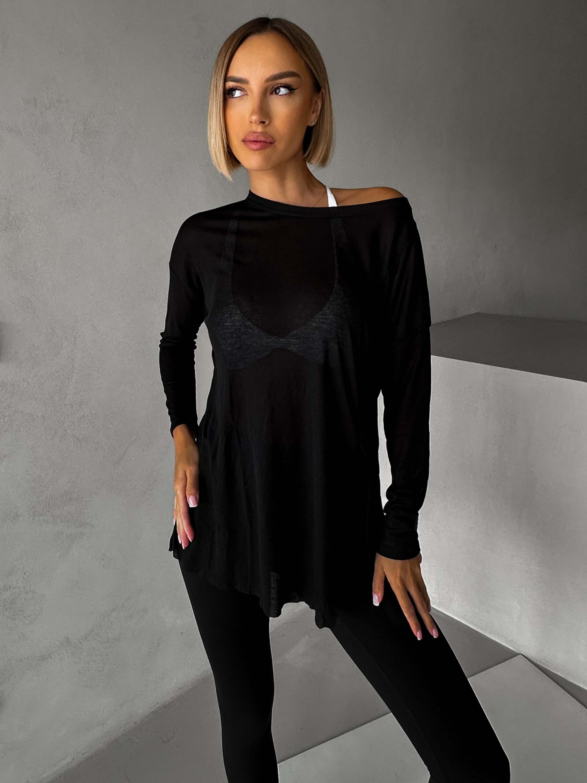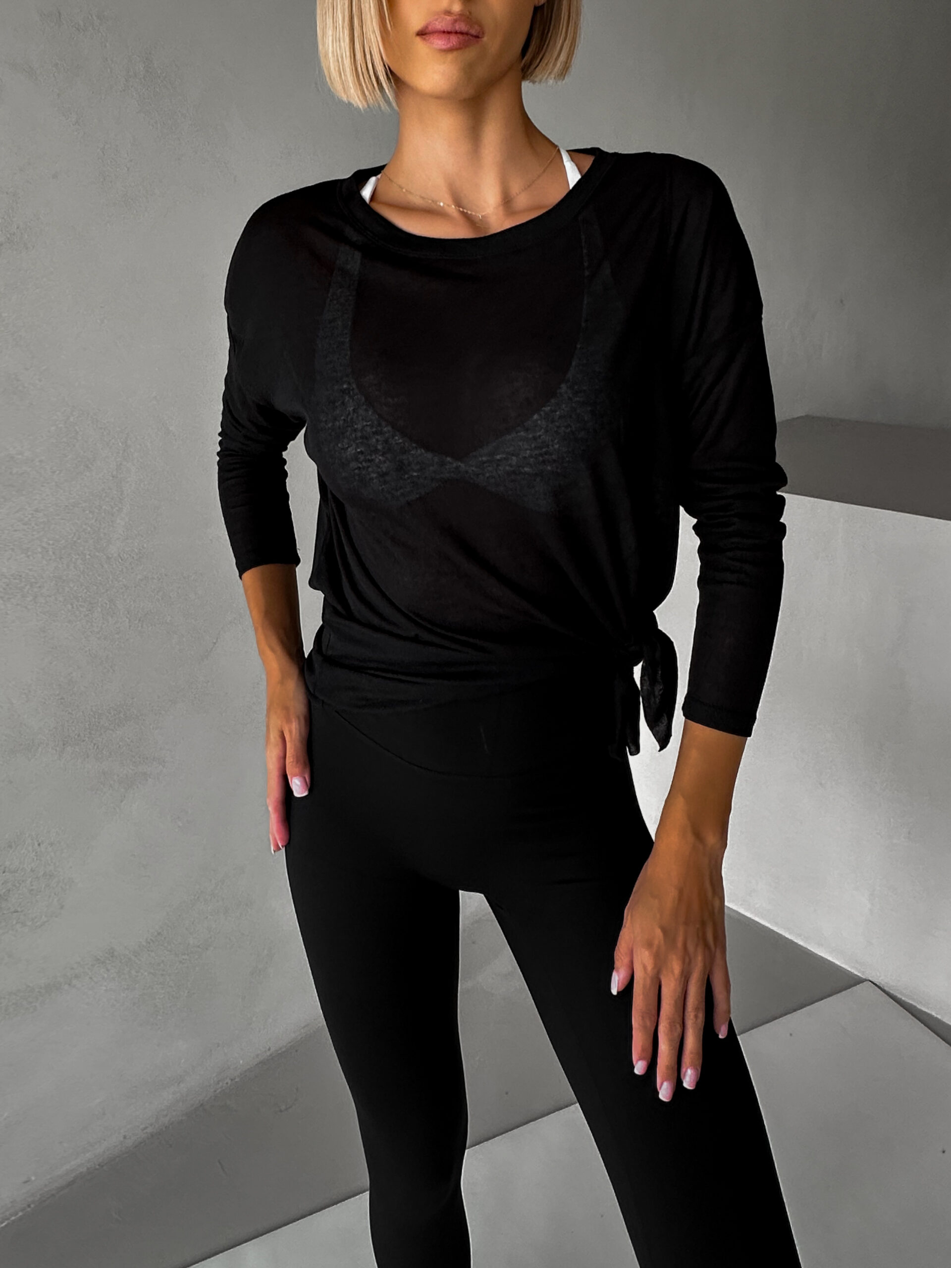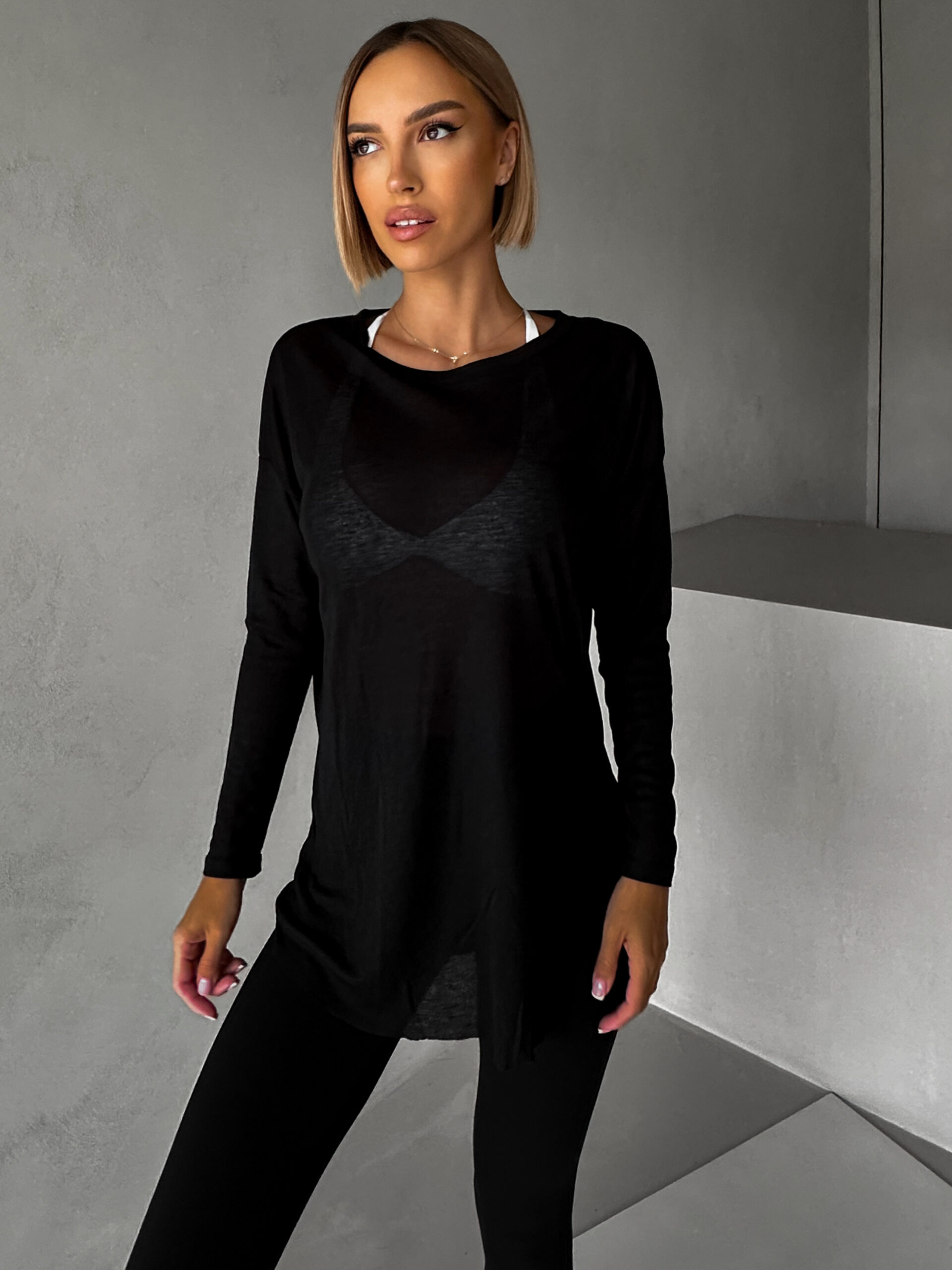 Černé sportovní jóga tričko NAVIERA s rozparkem Velikost: S