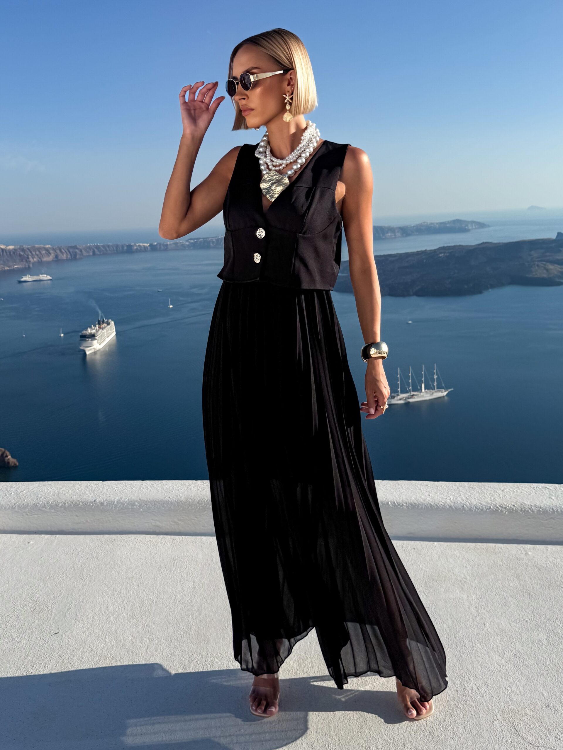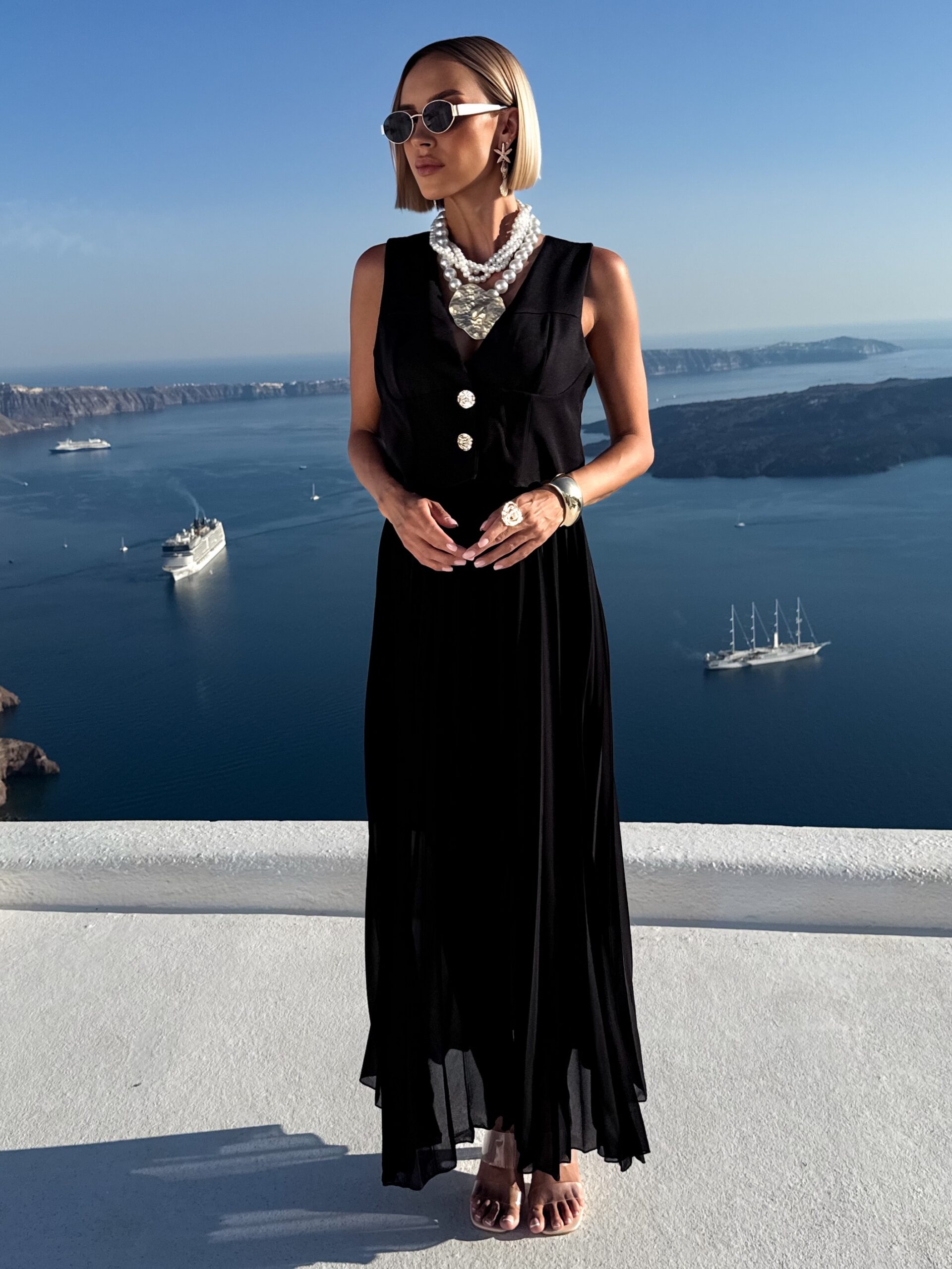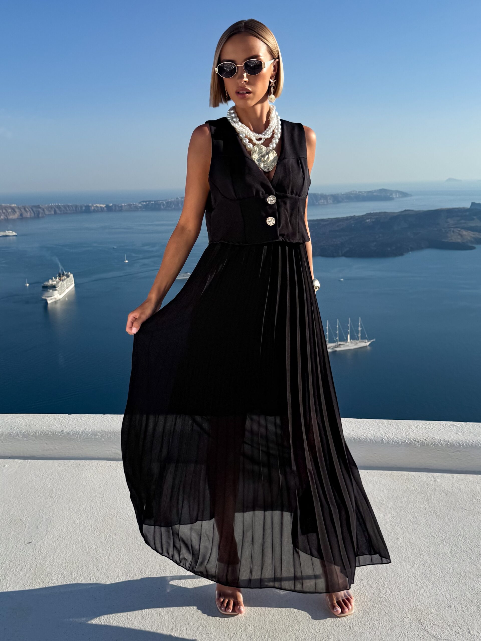 Černé stylové dlouhé šaty FAENA s plisovanou sukní Velikost: ONESIZE