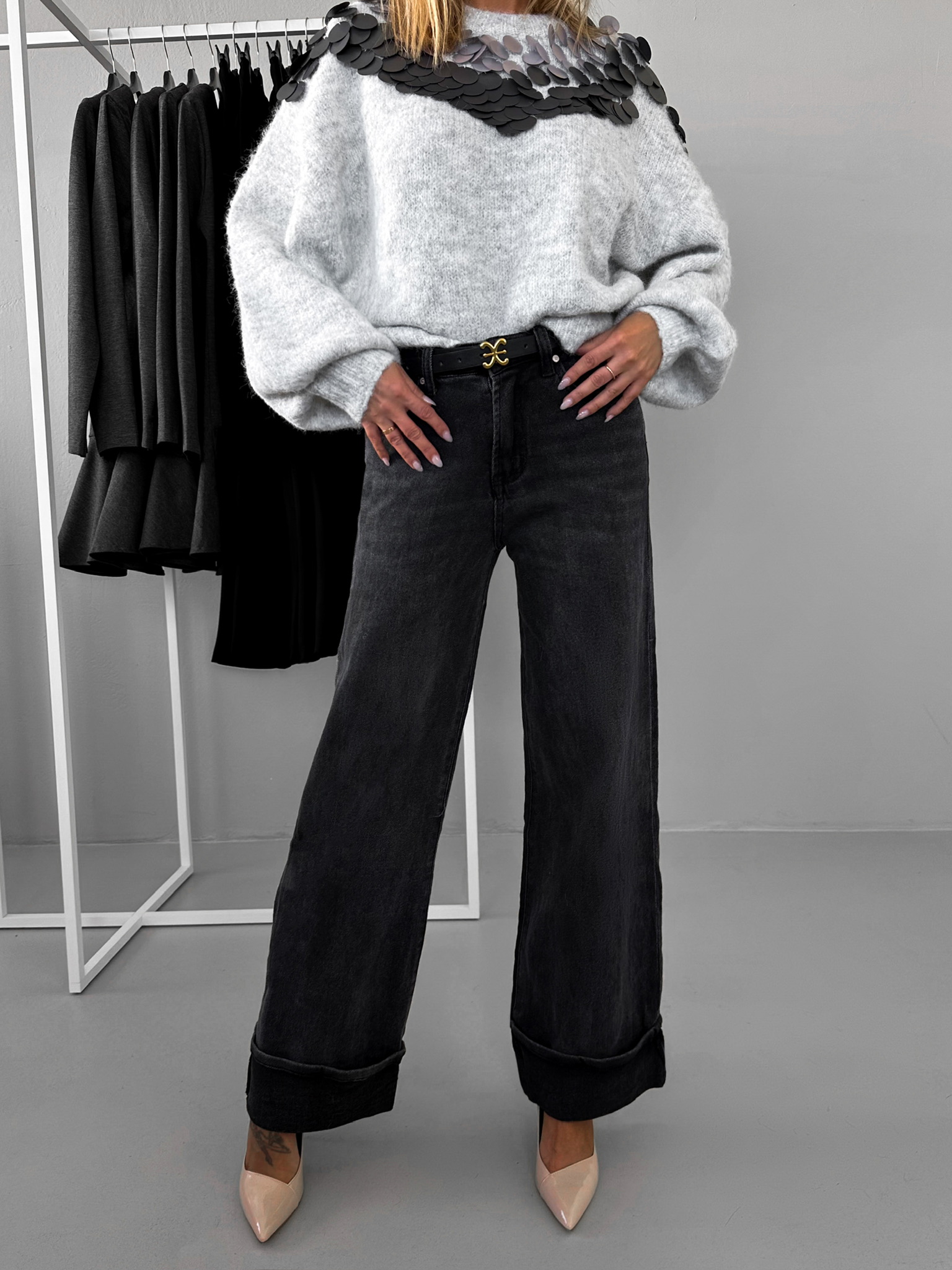 Černé stylové široké wide leg džíny OHALON Velikost: M