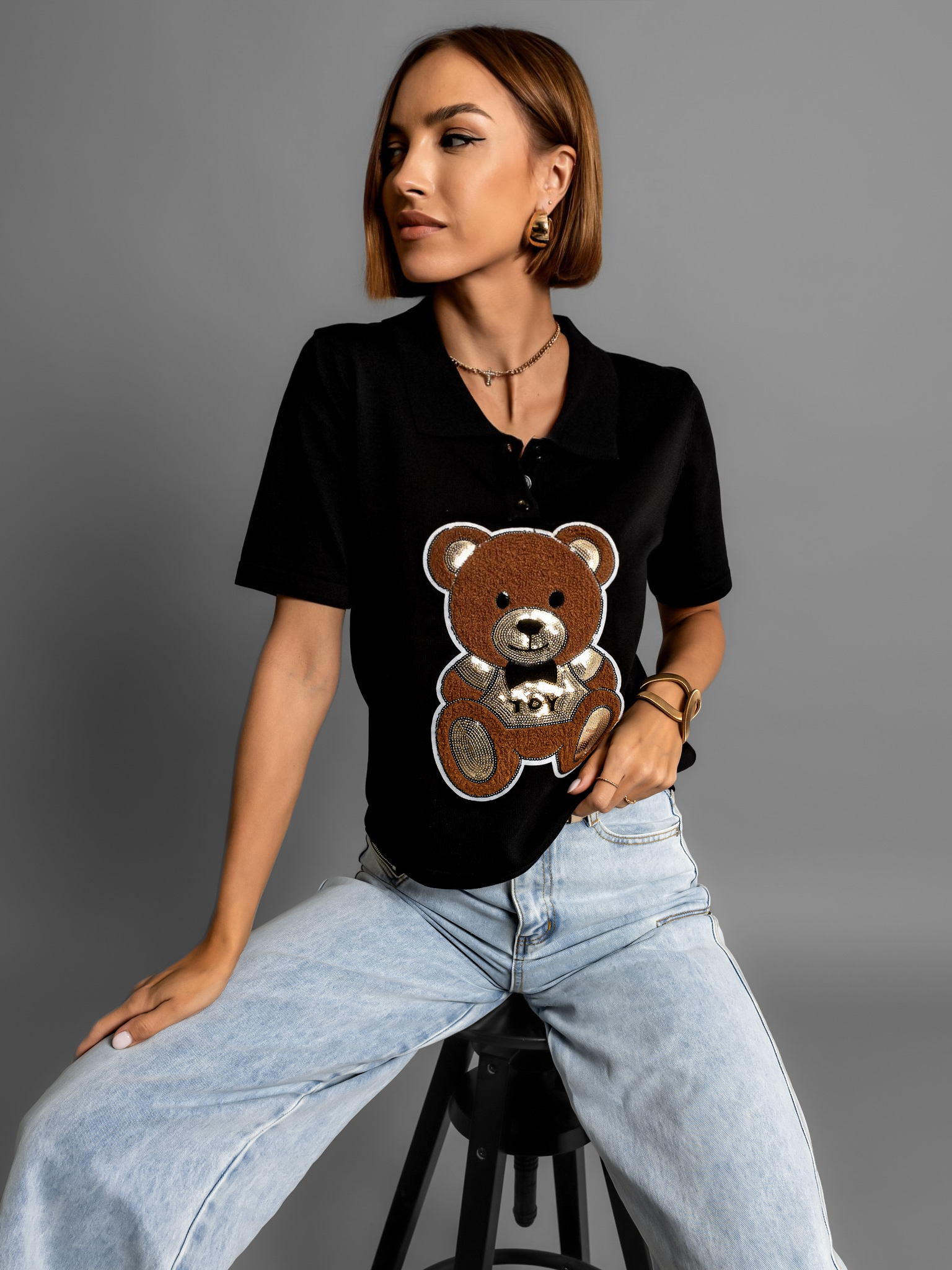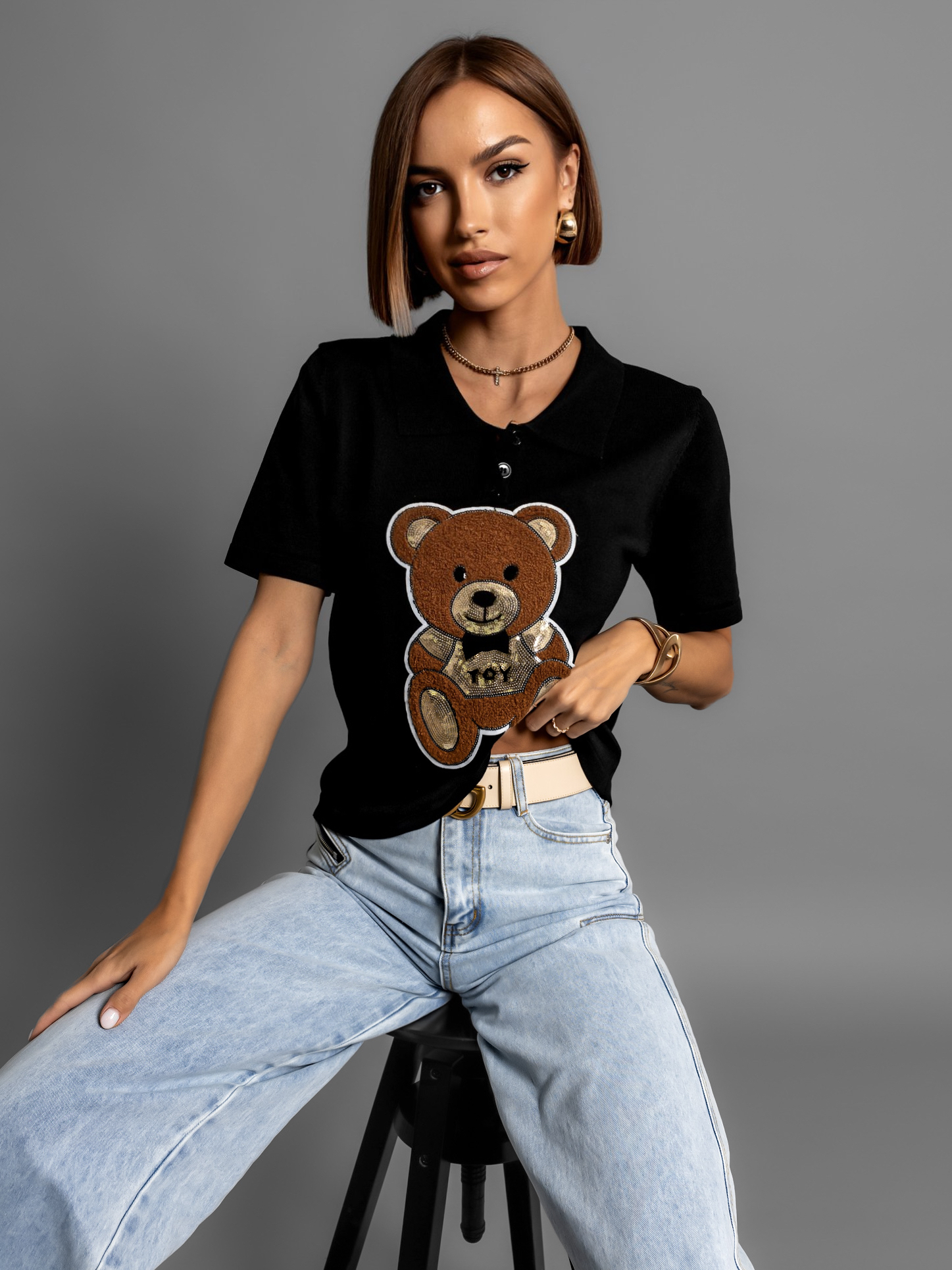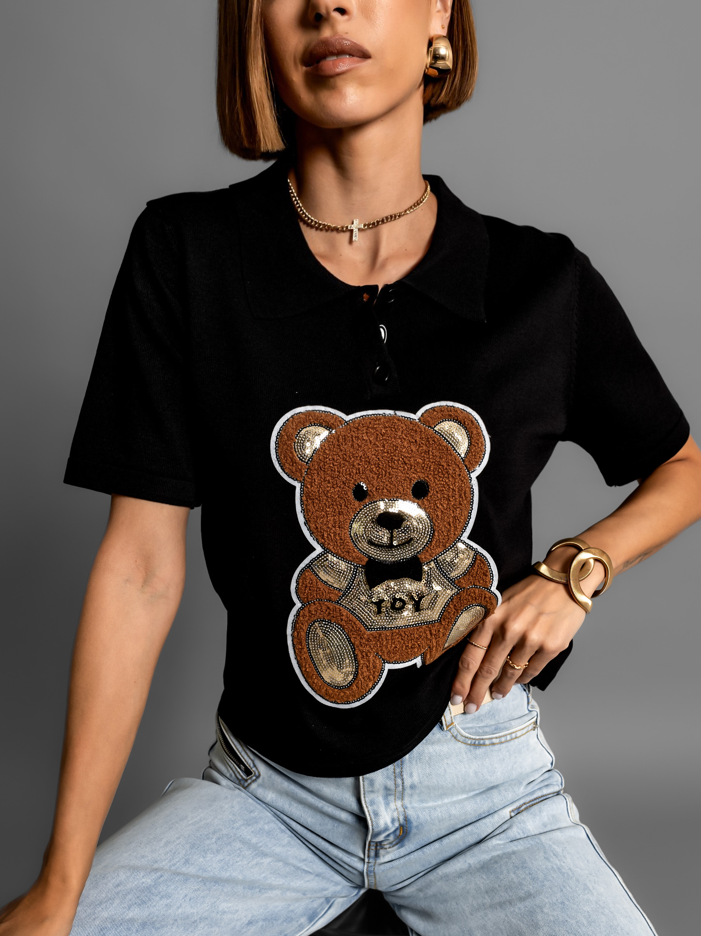 Černé tričko s medvídkem MARUT Velikost: ONESIZE