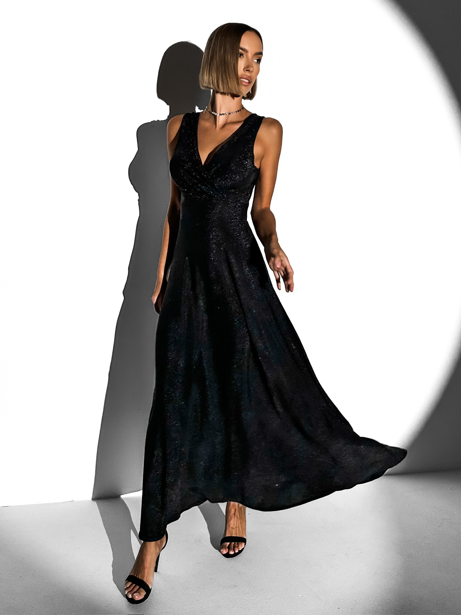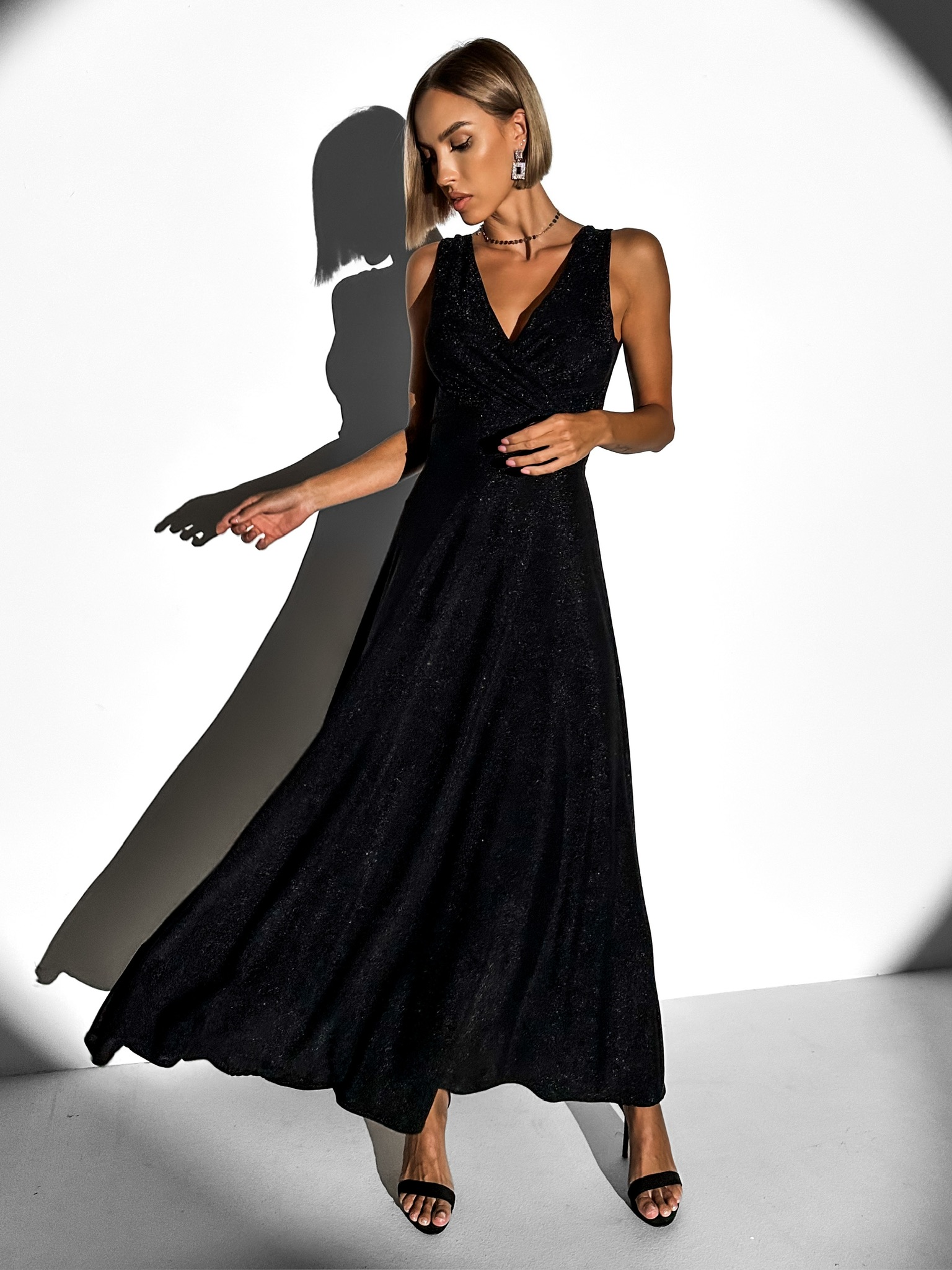 Černé třpytivé dlouhé elegantní šaty DUNJA Velikost: ONESIZE