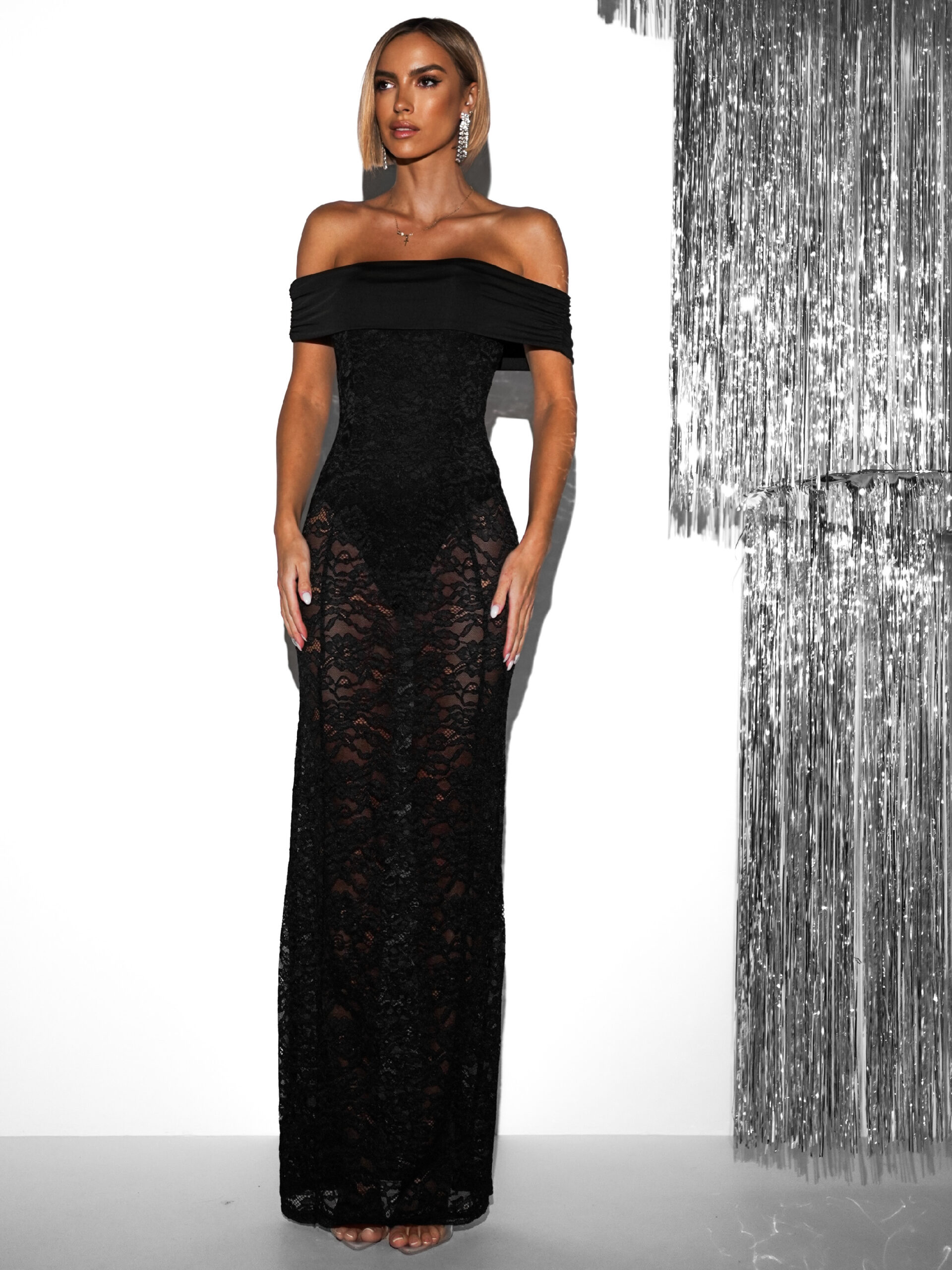 Černé večerní krajkované šaty KARASA Velikost: M/L
