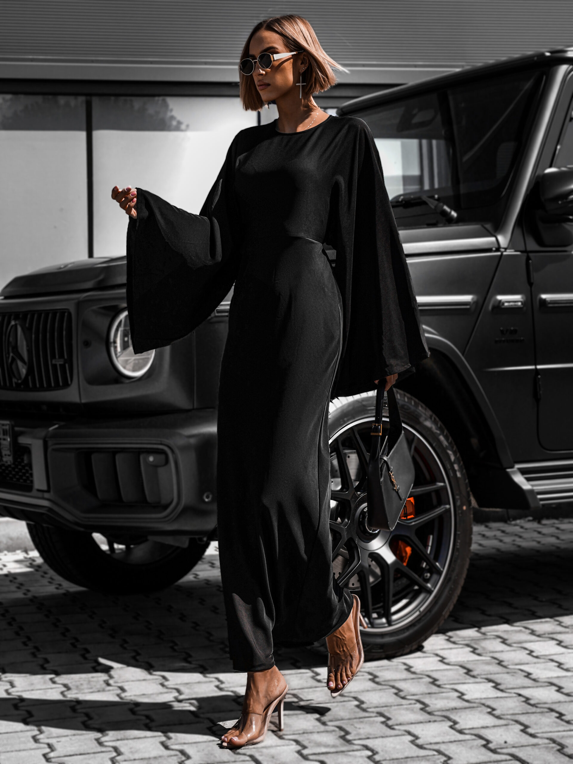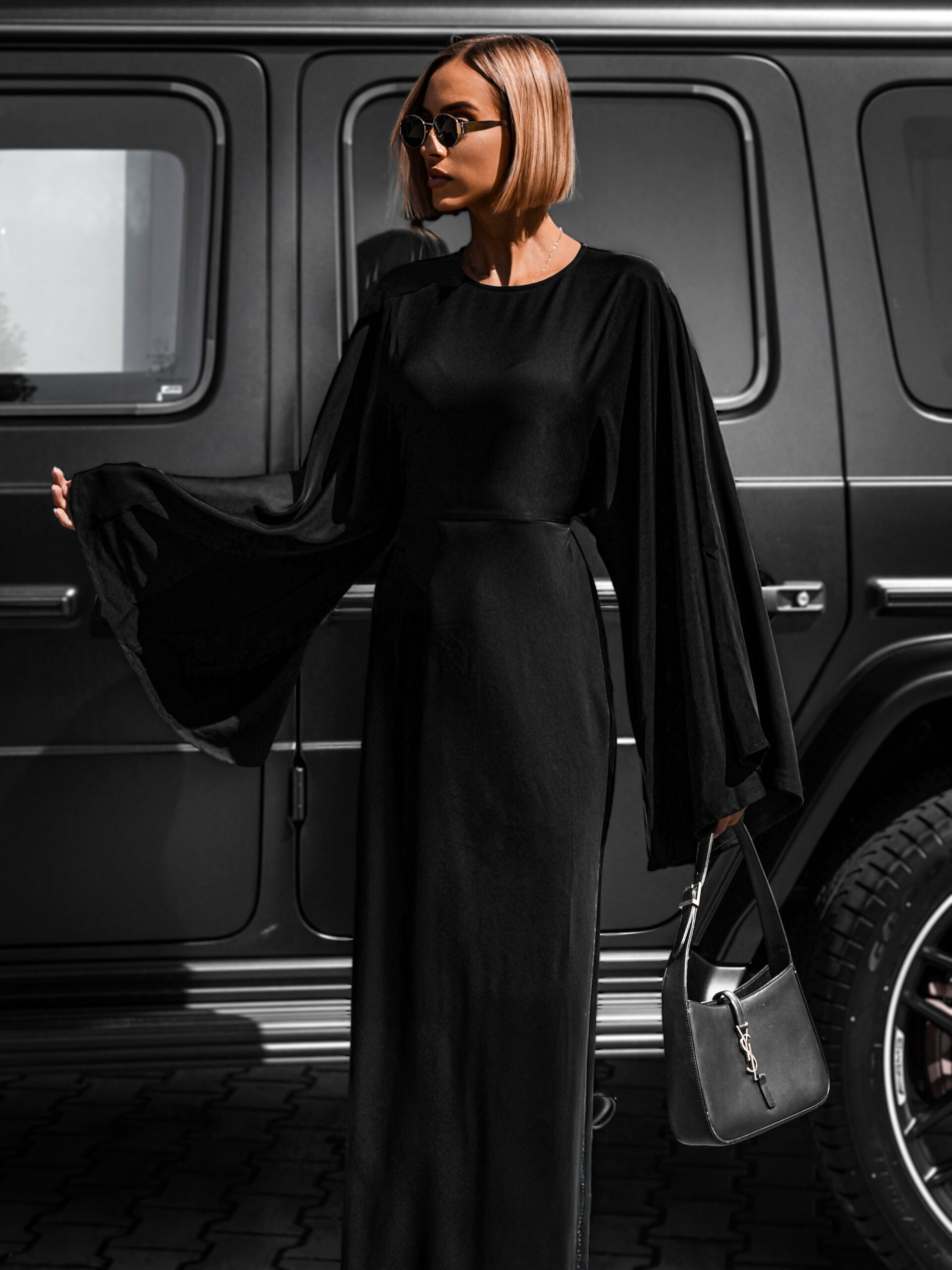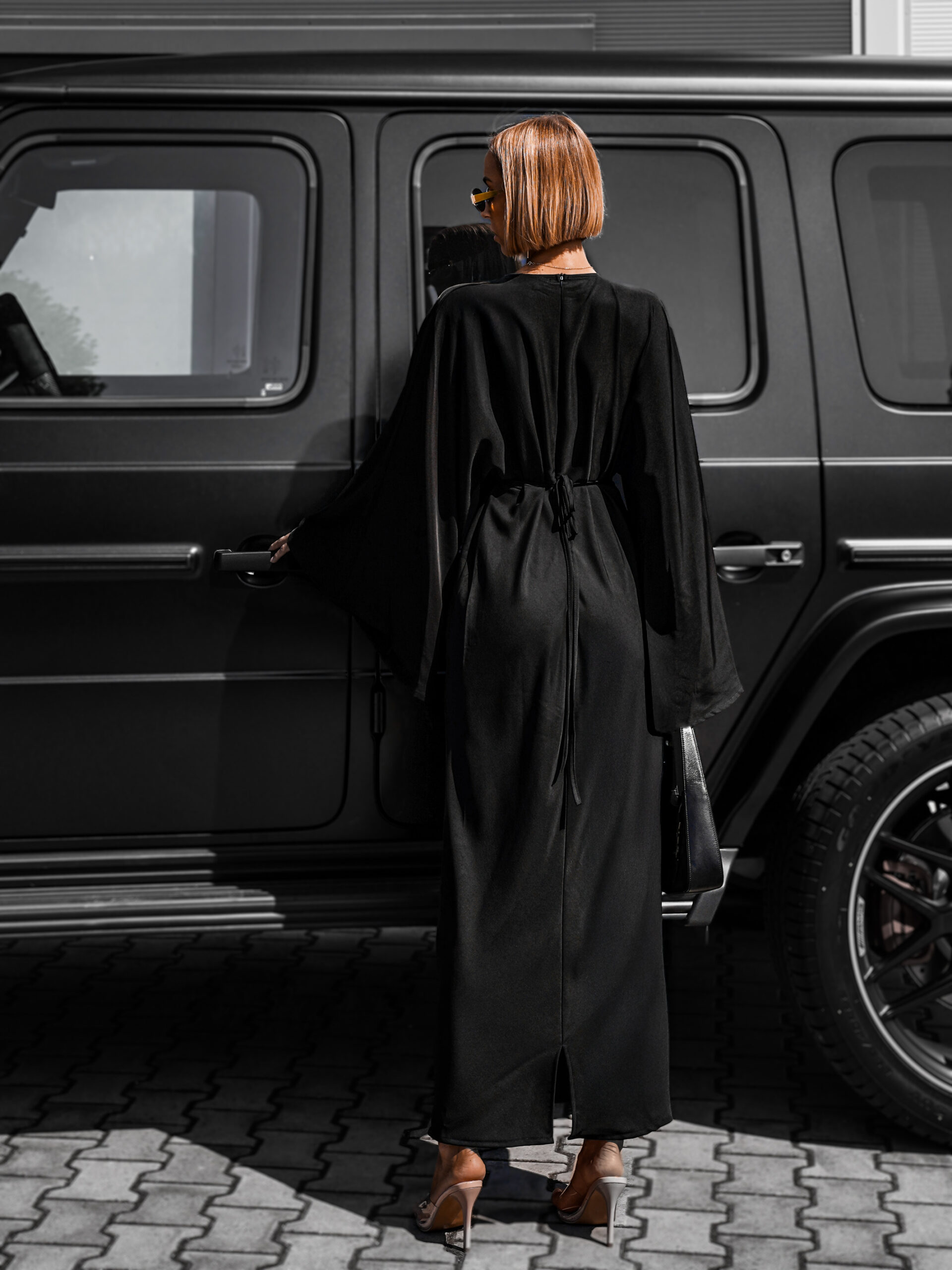 Černé zeštíhlující dlouhé šaty AVAN s vázáním Velikost: S