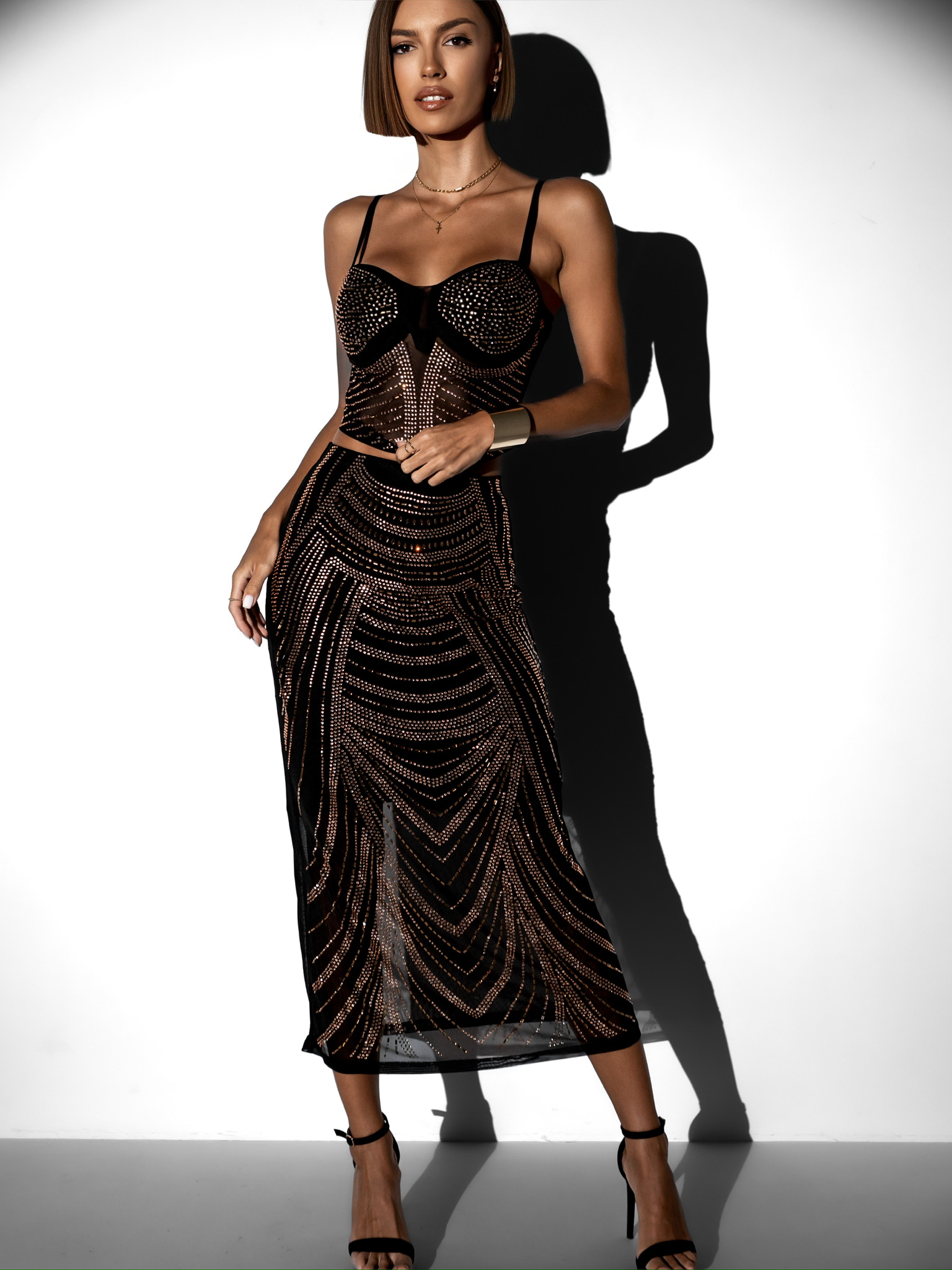 Černo-zlatý dvojdílný komplet RIO s flitry Velikost: M/L