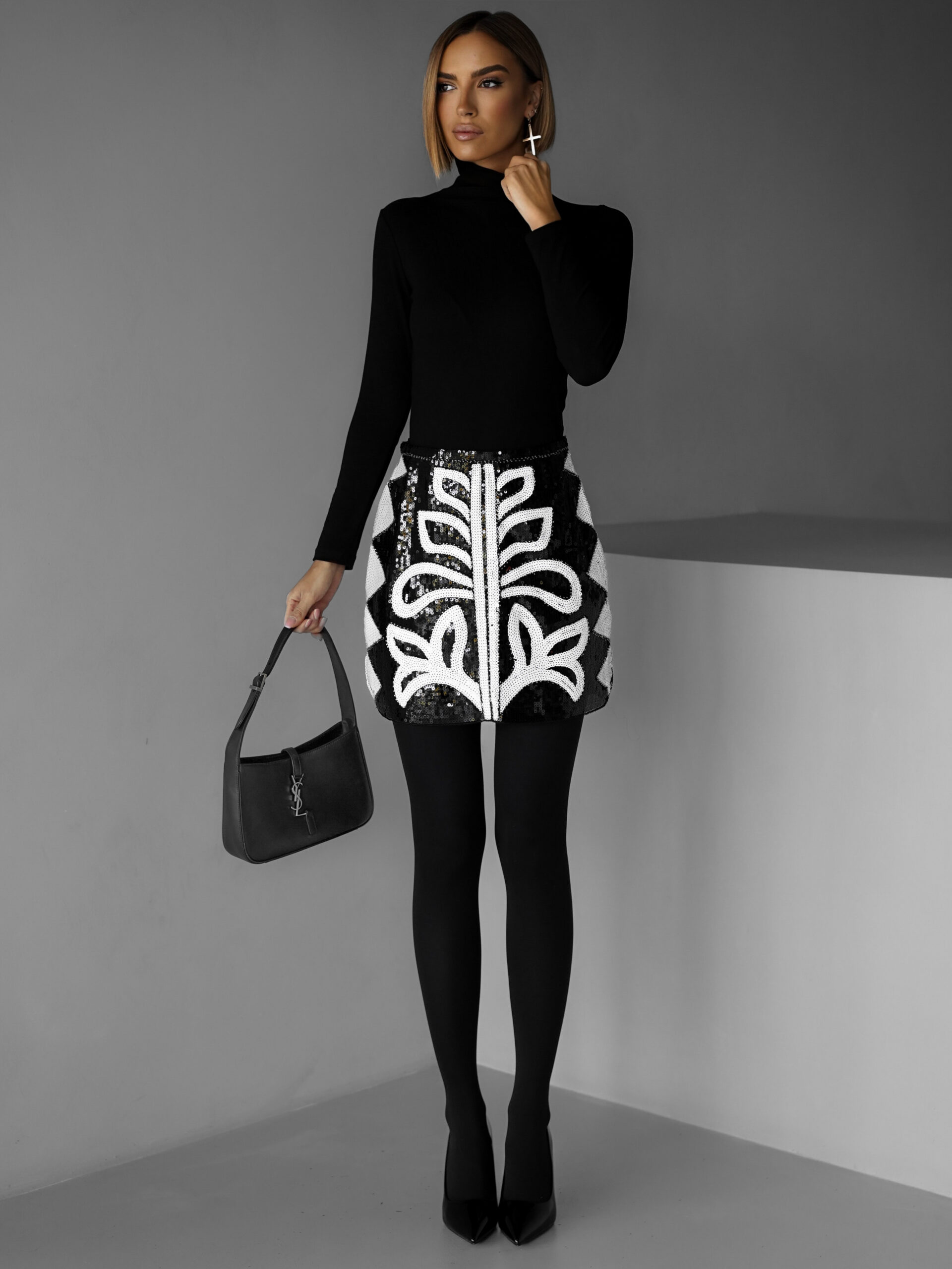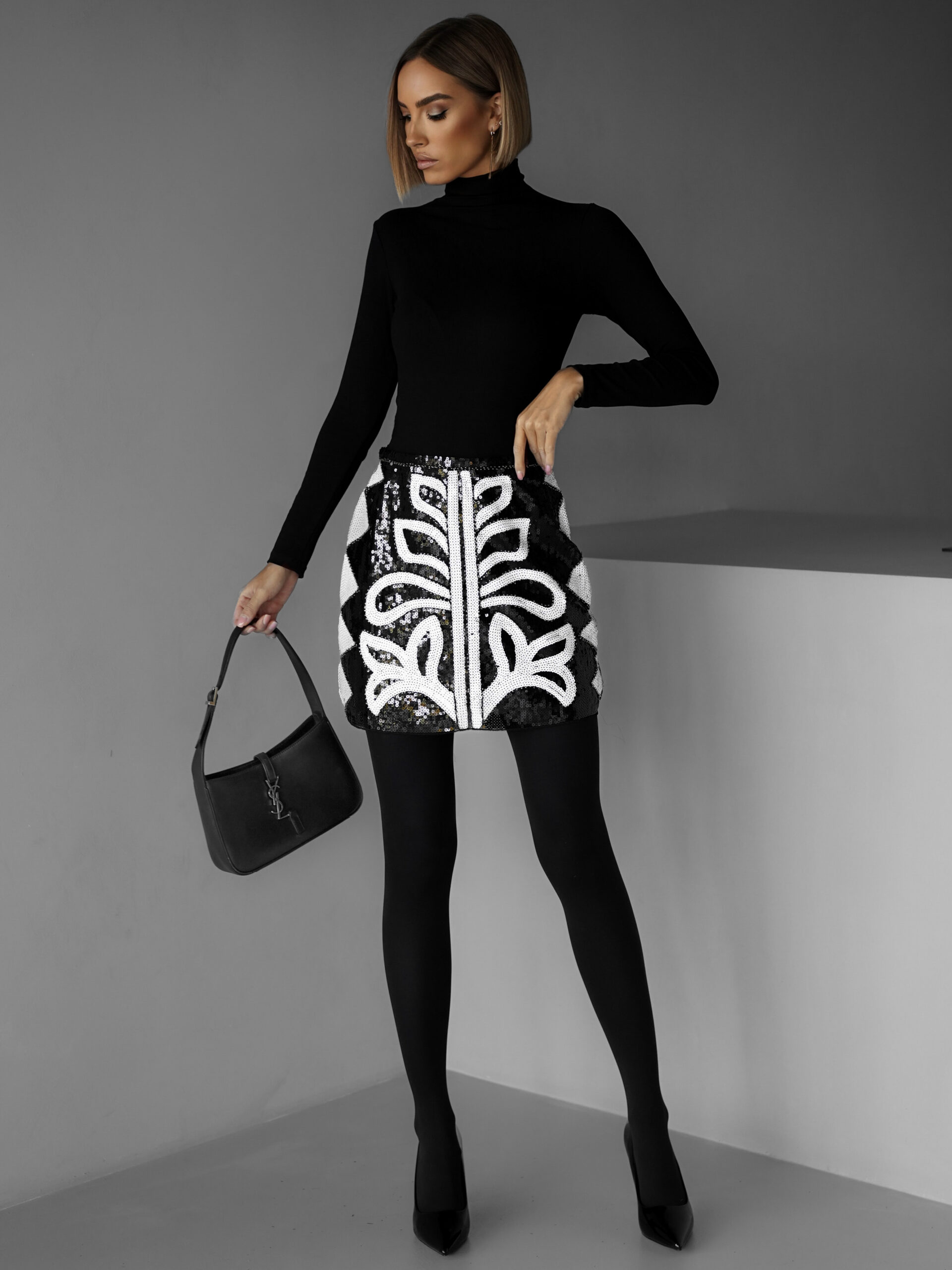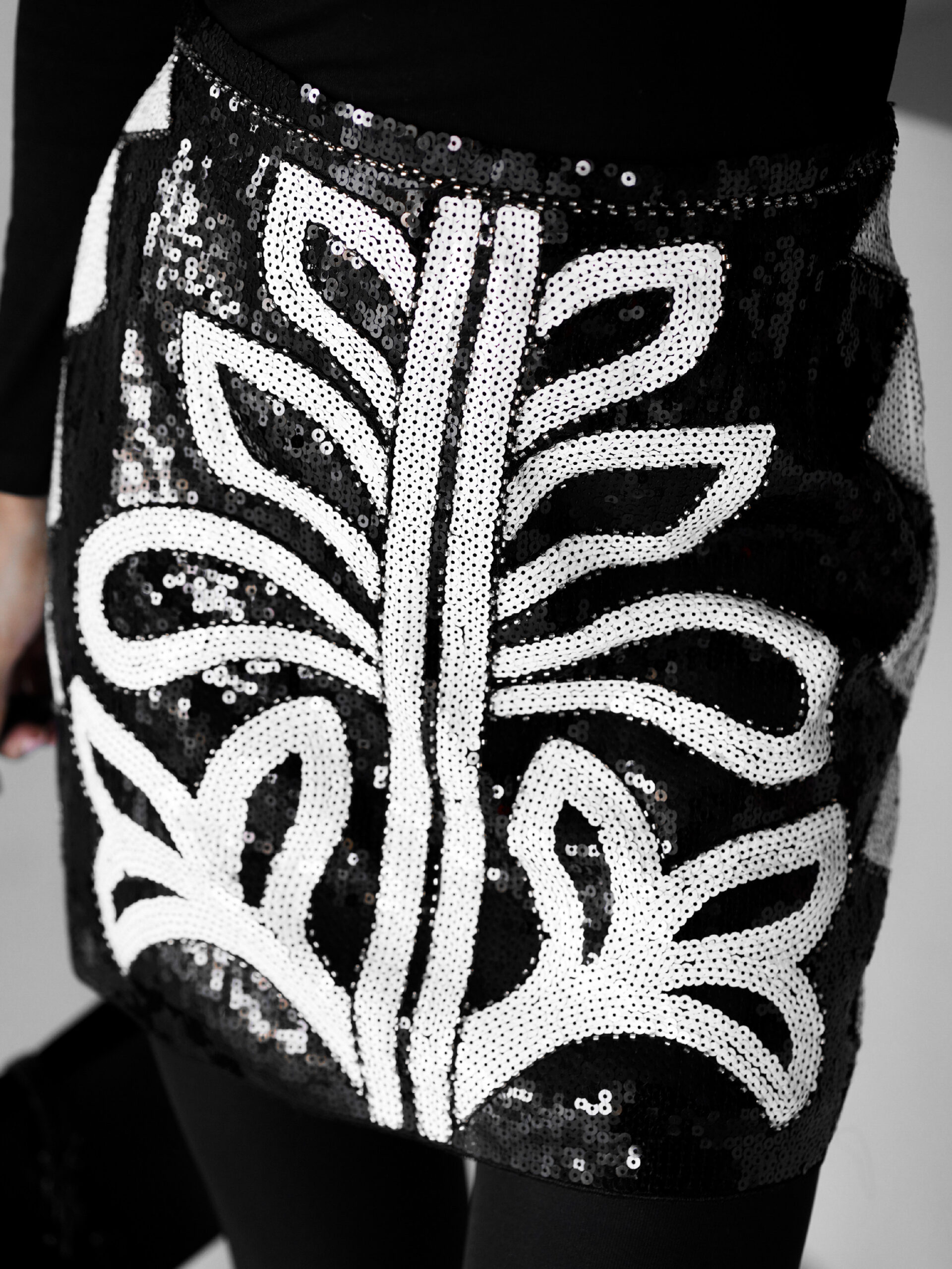 Černobílá flitrovaná mini sukně SIGGO Velikost: ONESIZE