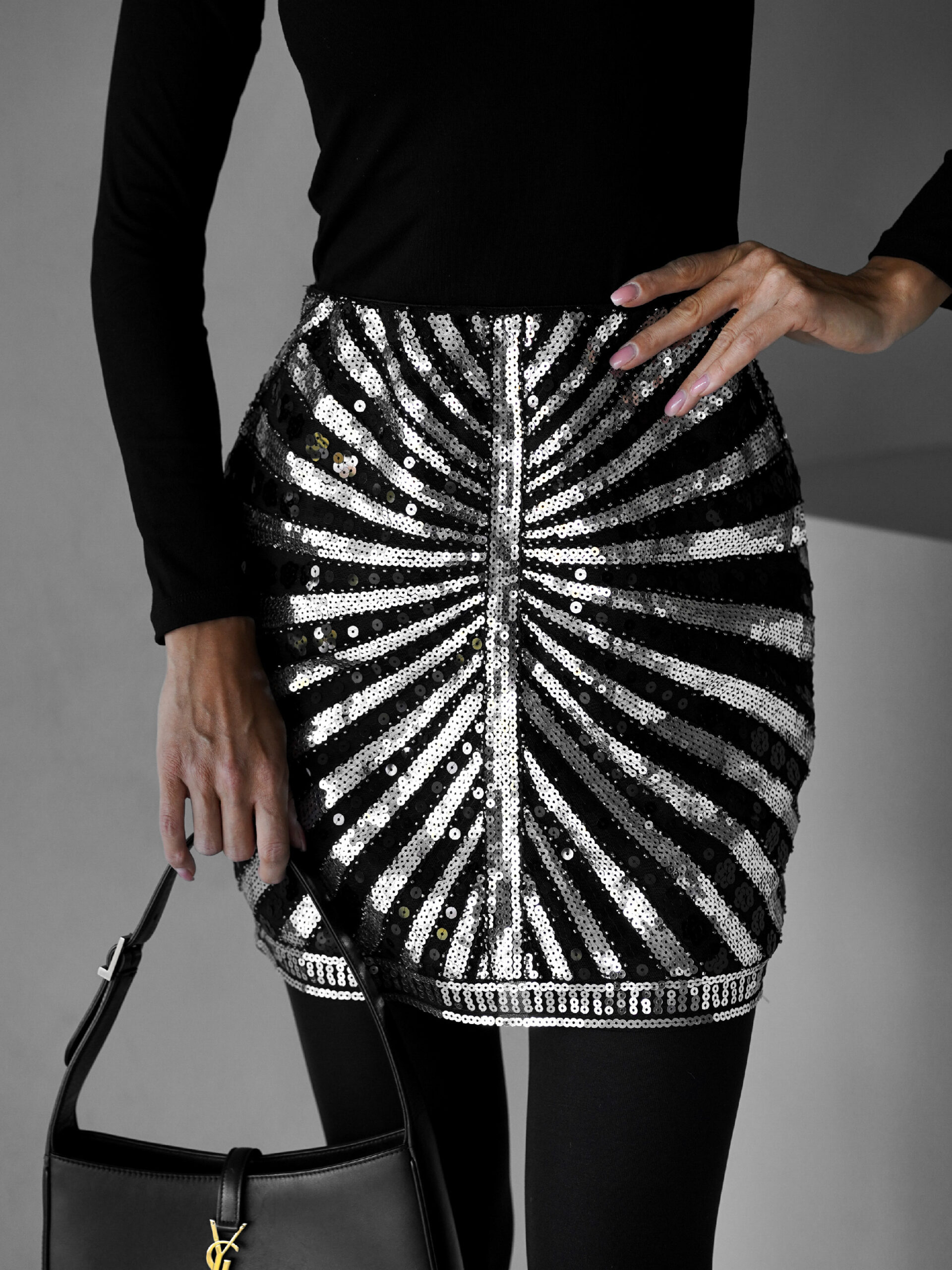 Černostříbrná flitrovaná sukně MALIN Velikost: M/L