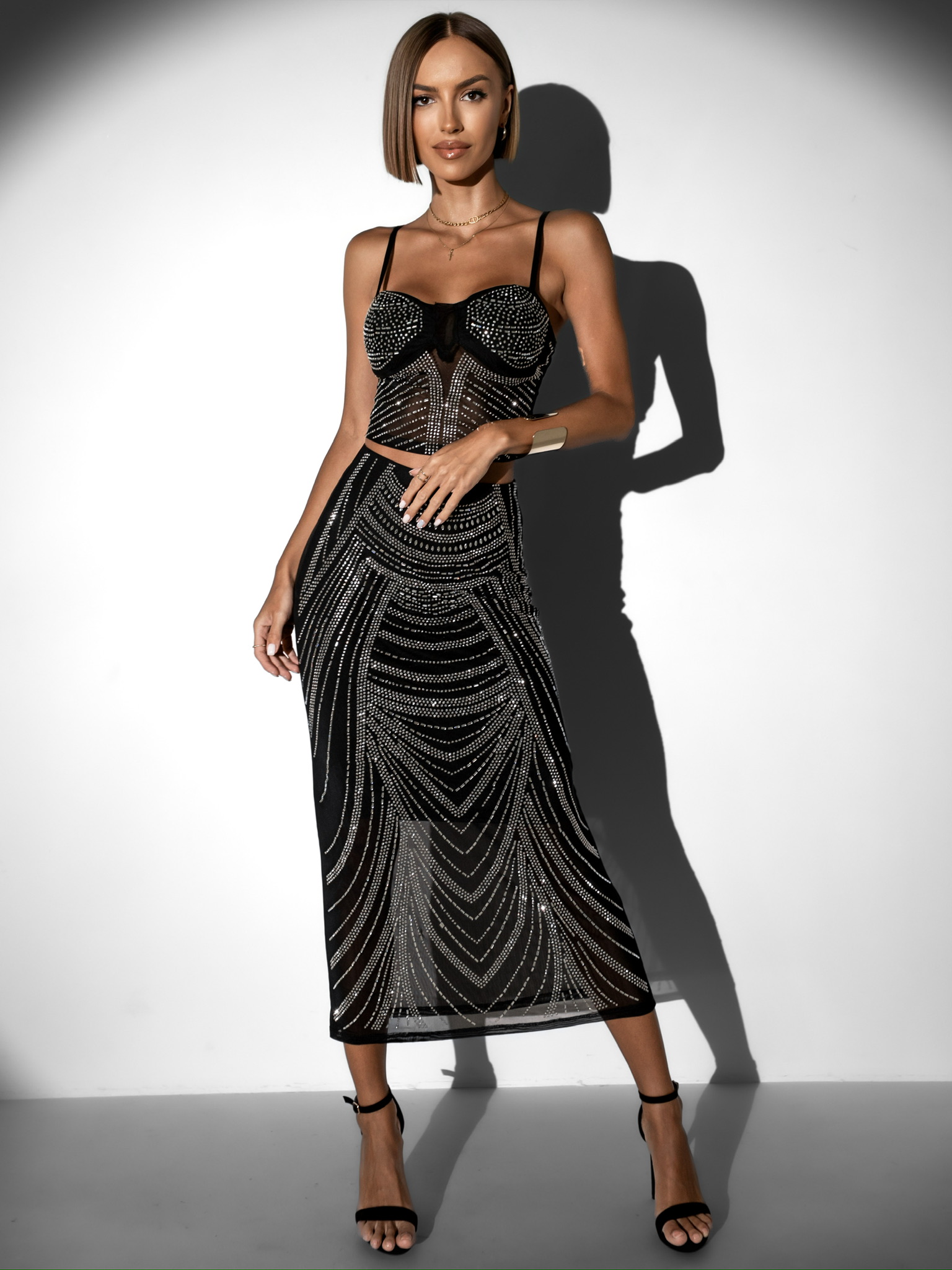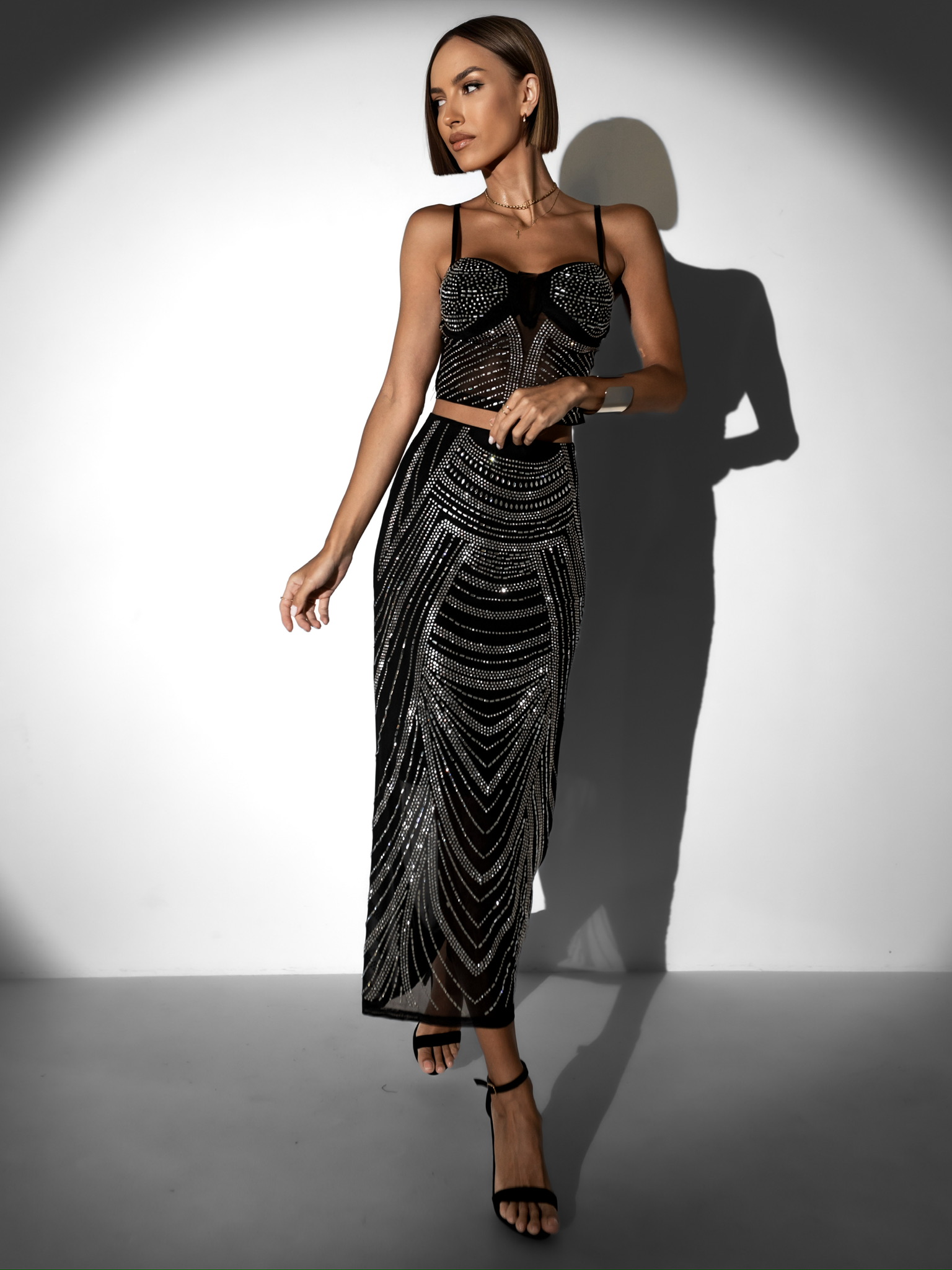 Černostříbrný dvojdílný komplet RIO s flitry Velikost: M/L