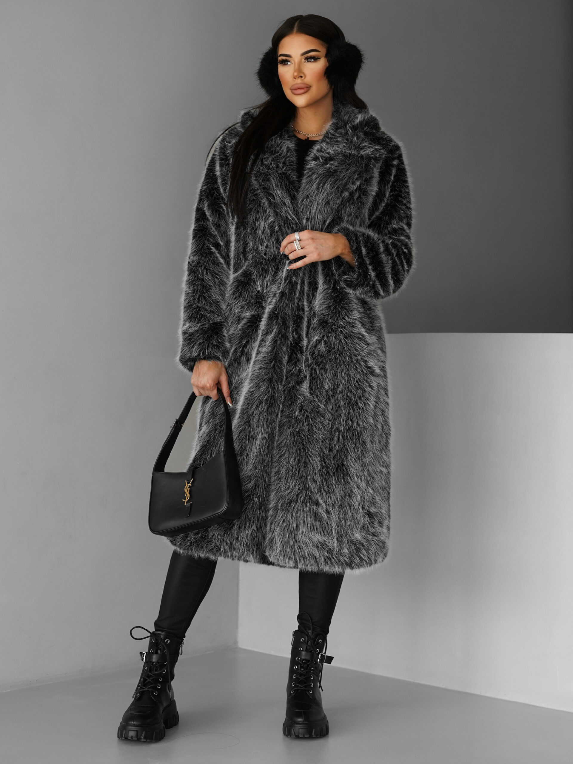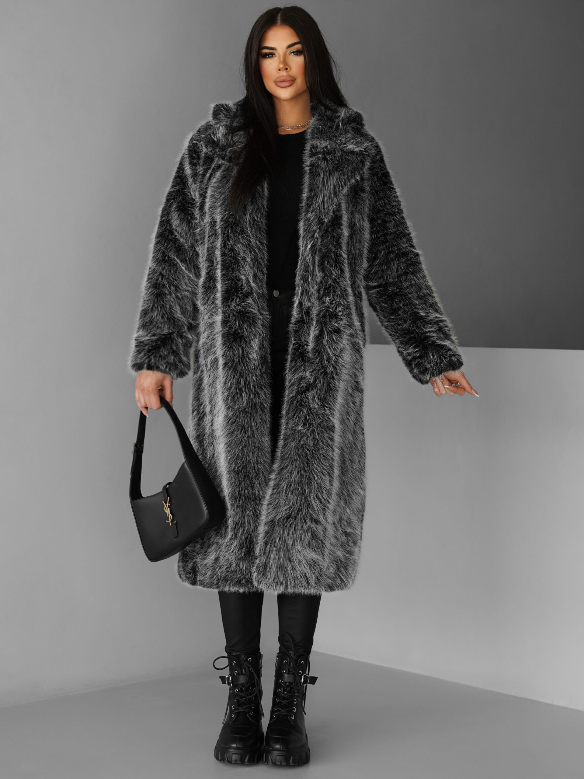 Černý faux fur dlouhý kožešinový kabát KINKA Velikost: S/M